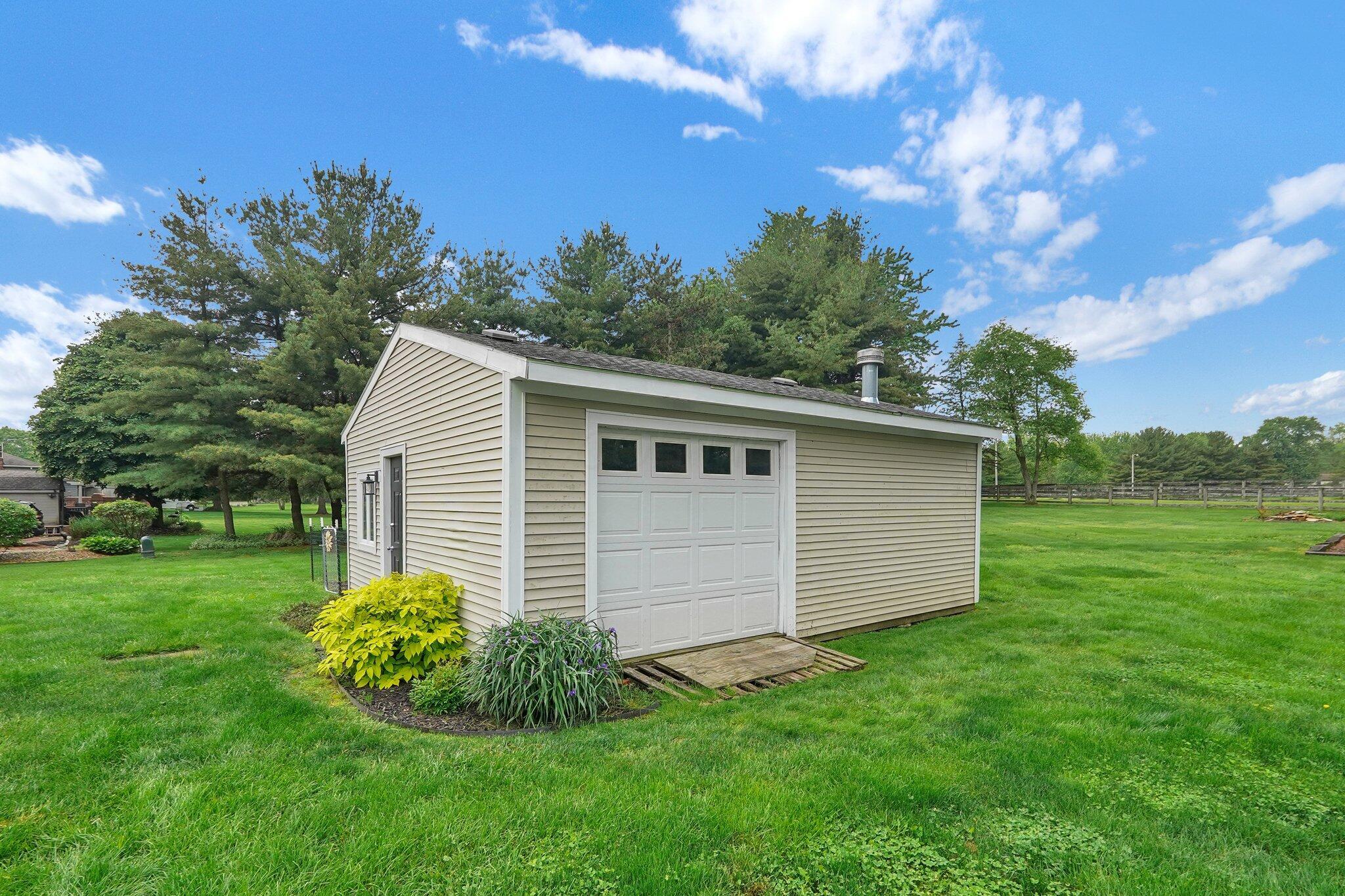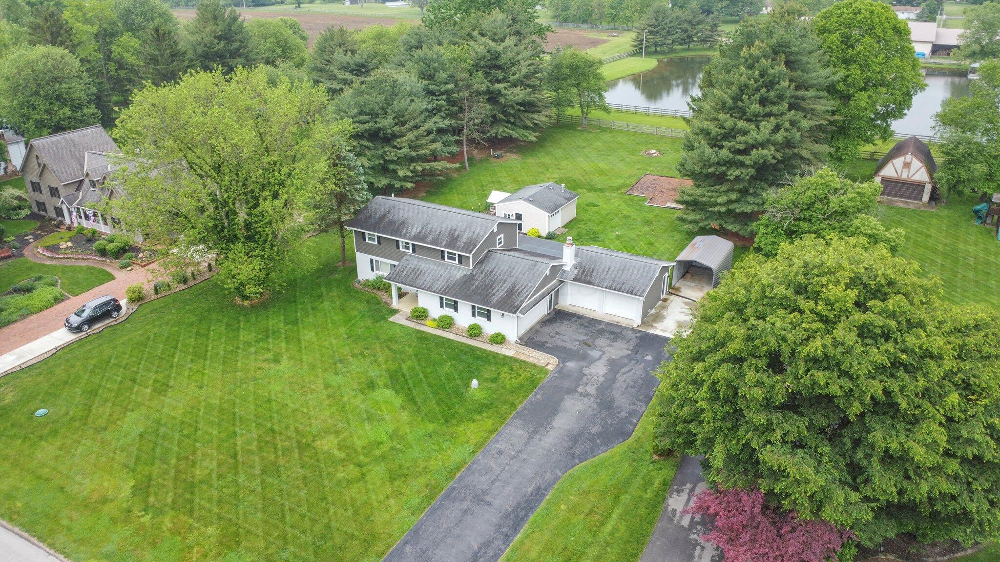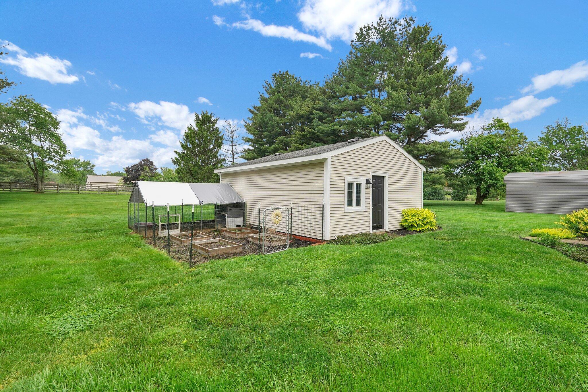 Honey, stop the car! Awesome 4 Bedroom, 2 Full and 1 Half Bath 2 Story home in super desirable Covered Bridge Estates! Pickerington NORTH Schools! This extraordinary home features, hardwood floors, updated kitchen with granite, large sink and Stainless appliances that will remain. Updated Bathrooms, neutral paint colors throughout, first floor laundry, formal living room and dining room, Super large bedrooms with OODLES of storage and closet space! Exterior covered porch, ready to grow fenced in garden, chicken/duck enclosed area, large unfinished basement waiting for your custom touches with fully shelved storage area, 200 amp service. Improvements include, Heat Pump (2021), exterior siding/upgrades (2023), various interior remodels, garage doors (2019&2021), new extra wide driveway. This home is all electric with a well and public sewer. The large lot includes an outbuilding (20 x 24) constructed in 2013, use as a potting shed, she shed or for your lawn equipment. You will love the garage space! Perfect for the car collector, or multiple drivers in the family.