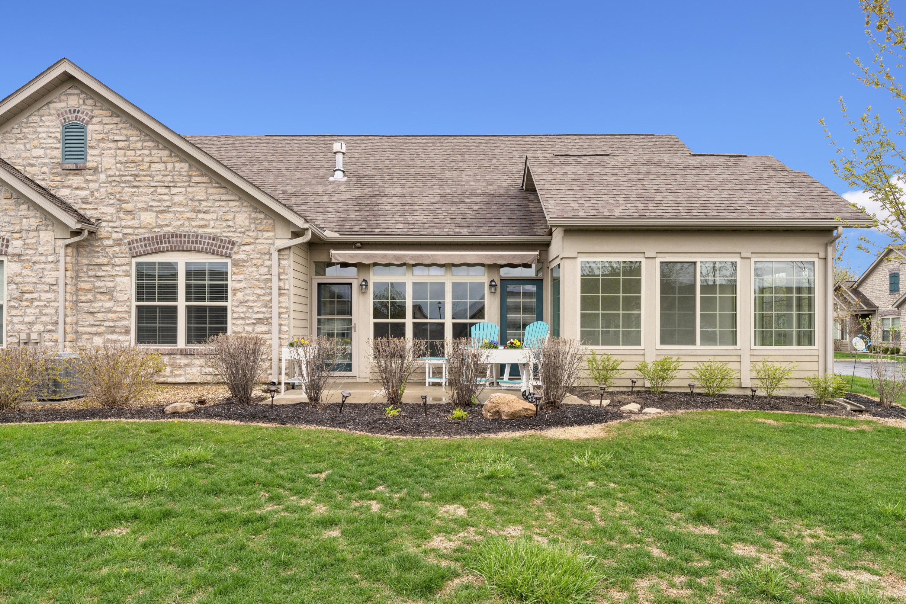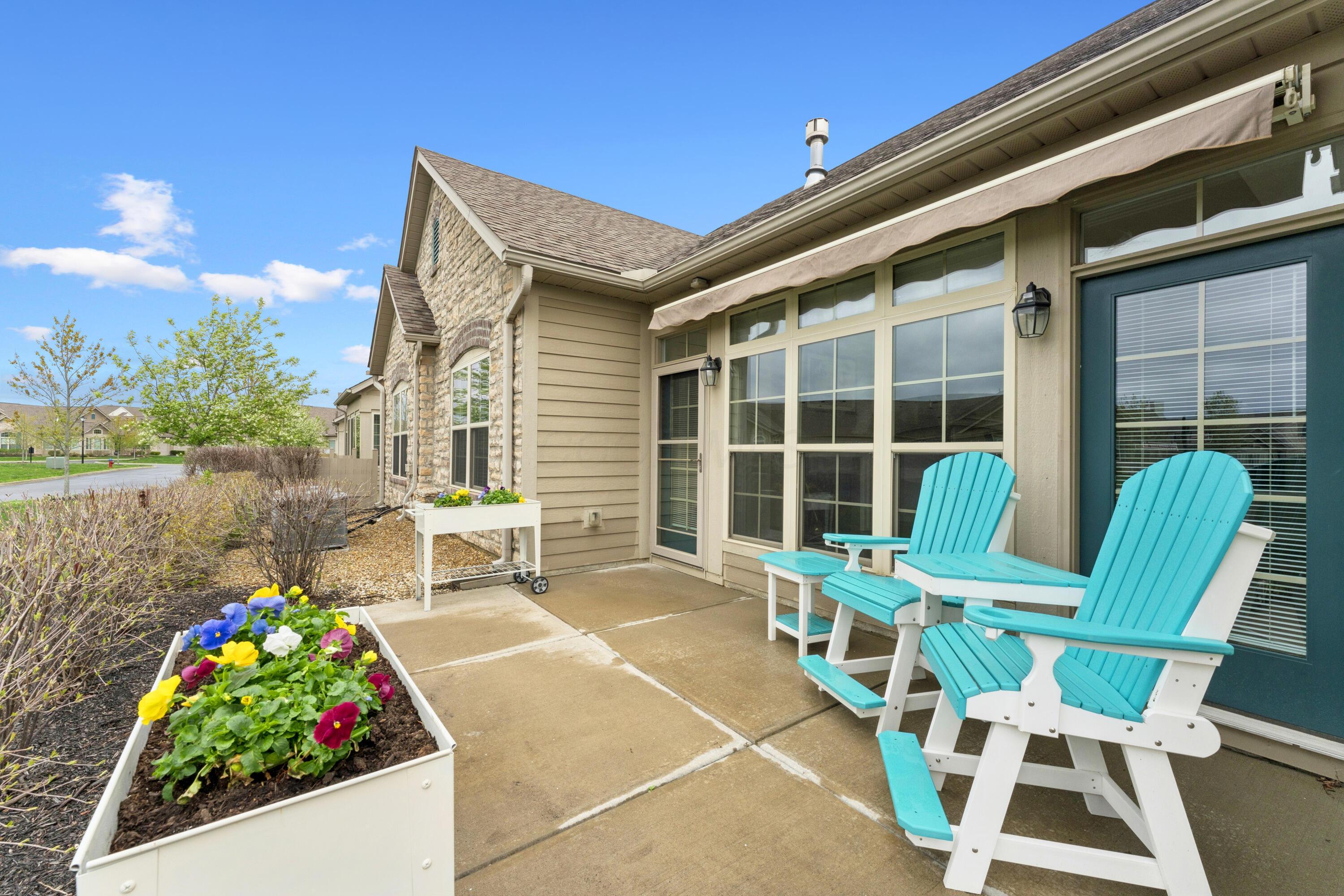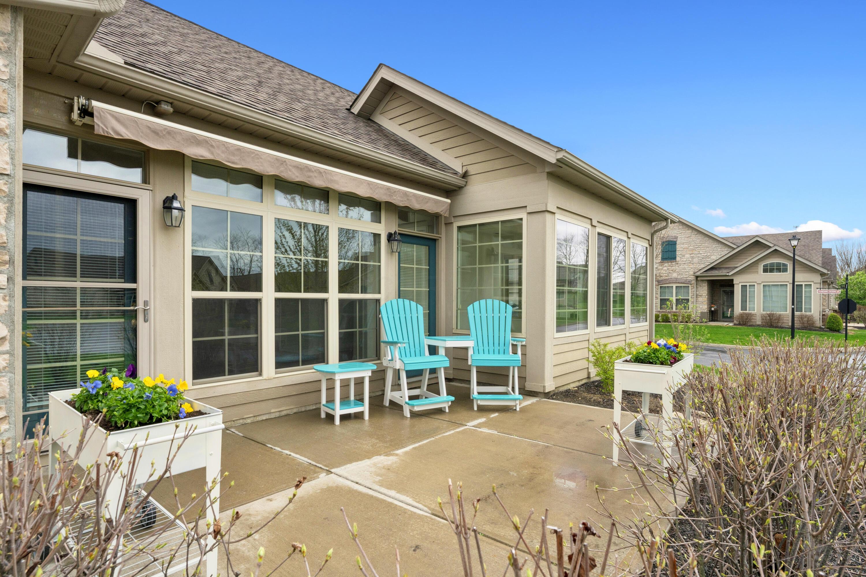 Experience the ease and comfort of single-story living in this beautifully updated condo, located in the desirable Villas at Foor Farms. Designed for convenience and low-maintenance living, this home offers a thoughtfully laid-out floor plan with abundant natural light throughout. Featuring three bedrooms and two and a half baths, this home includes two private en suite bedrooms, ideal for owners and guests alike. The third bedroom easily doubles as a home office or hobby space, providing flexibility to suit your lifestyle. enjoy year-around relaxation in the four-season room, which opens to a patio with a Sunsetter awning--perfect for morning coffee or quiet evenings. The spacious island kitchen flows seamlessly into the dining and living areas, offering ample cabinetry, a large pantry, and a functional layout for daily living and entertainment. Additional features include a full laundry room, oversized two-car garage and generous storage throughout--including closets thoughtfully placed for efficiency and organization. Ideal for those who value detail, comfort and ease of living, this impeccably cared-for home is move-in ready and part of a well-maintained EPCON community with a reputation for quality and lifestyle.