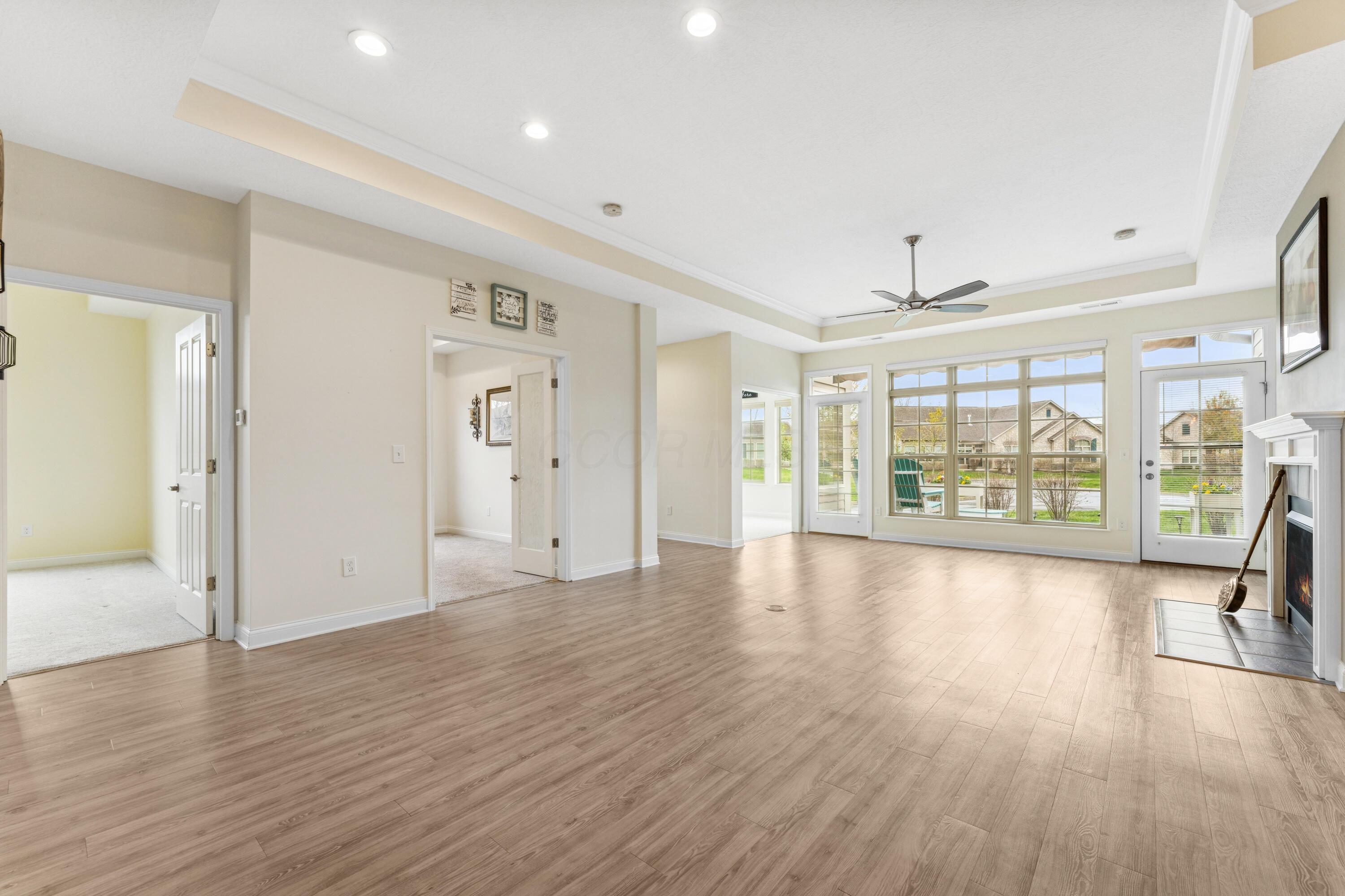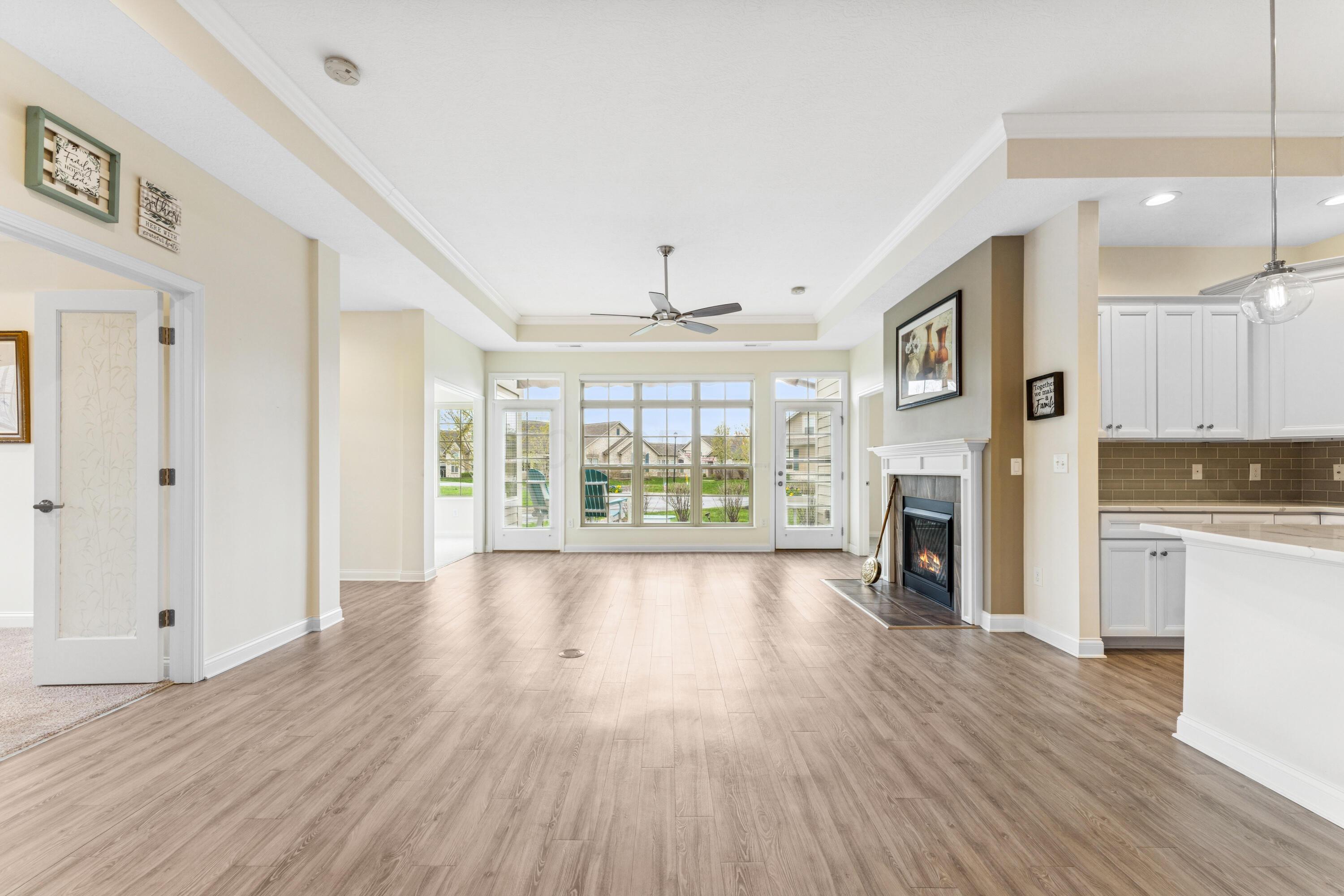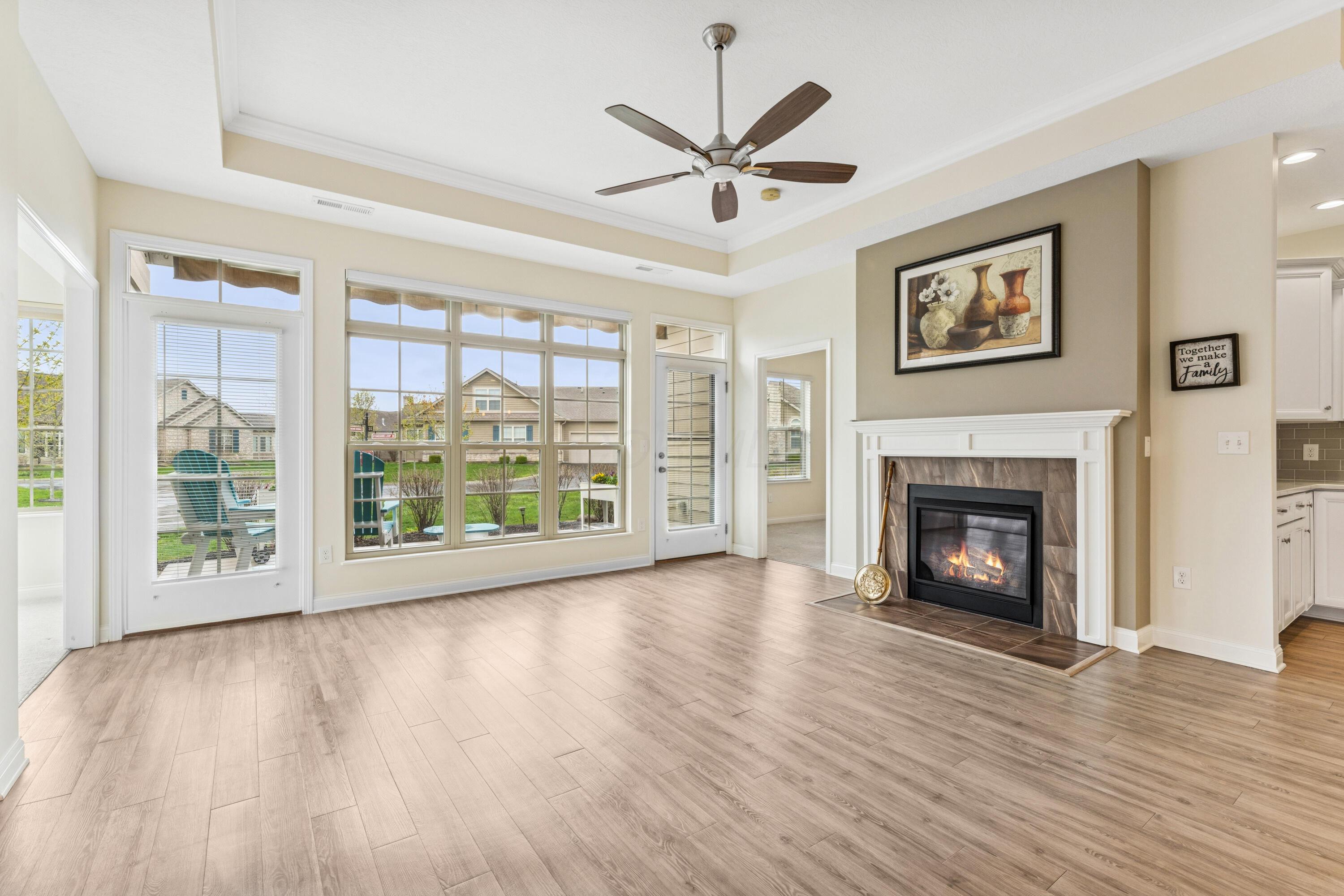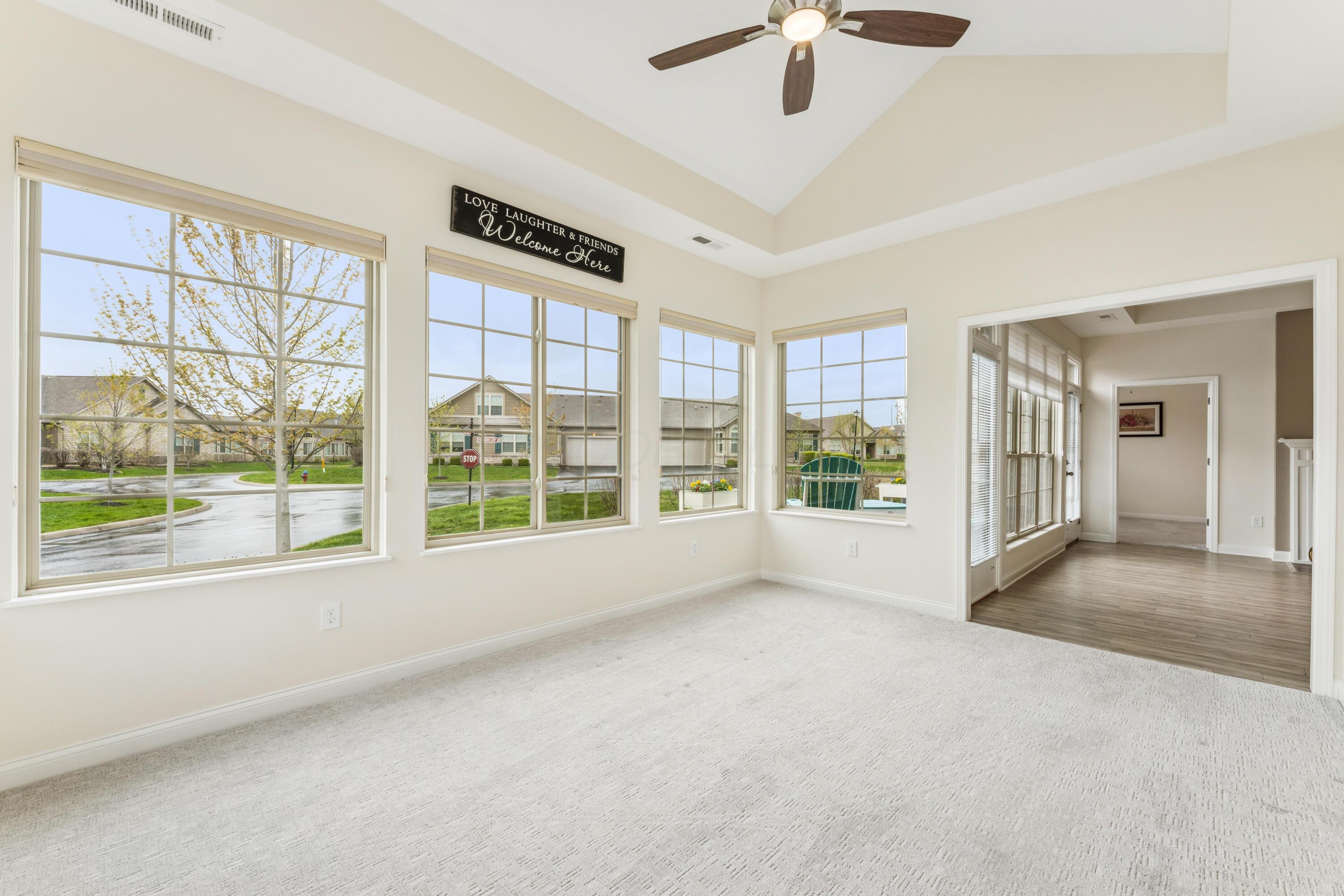 Experience the ease and comfort of single-story living in this beautifully updated condo, located in the desirable Villas at Foor Farms. Designed for convenience and low-maintenance living, this home offers a thoughtfully laid-out floor plan with abundant natural light throughout. Featuring three bedrooms and two and a half baths, this home includes two private en suite bedrooms, ideal for owners and guests alike. The third bedroom easily doubles as a home office or hobby space, providing flexibility to suit your lifestyle. enjoy year-around relaxation in the four-season room, which opens to a patio with a Sunsetter awning--perfect for morning coffee or quiet evenings. The spacious island kitchen flows seamlessly into the dining and living areas, offering ample cabinetry, a large pantry, and a functional layout for daily living and entertainment. Additional features include a full laundry room, oversized two-car garage and generous storage throughout--including closets thoughtfully placed for efficiency and organization. Ideal for those who value detail, comfort and ease of living, this impeccably cared-for home is move-in ready and part of a well-maintained EPCON community with a reputation for quality and lifestyle.