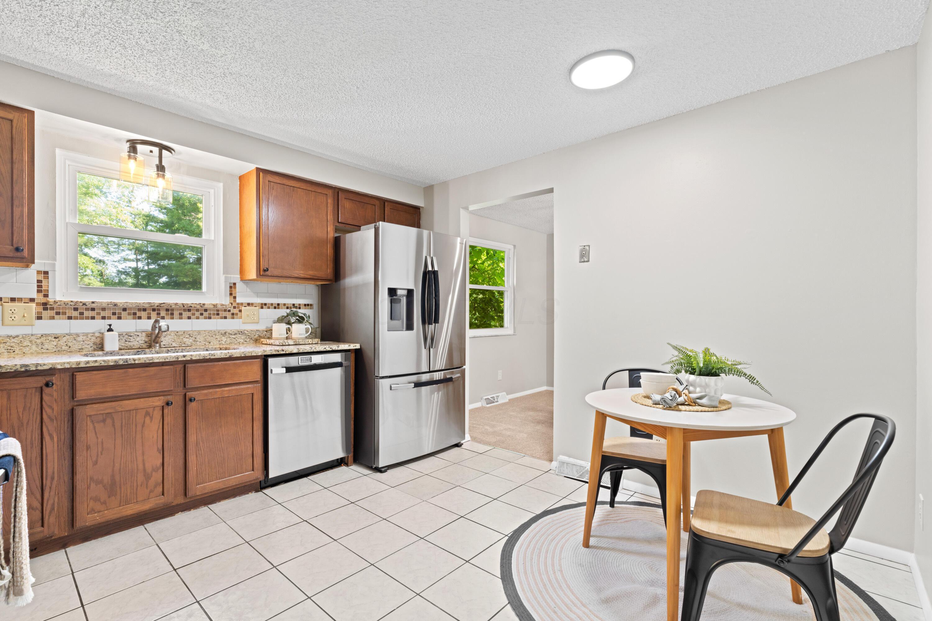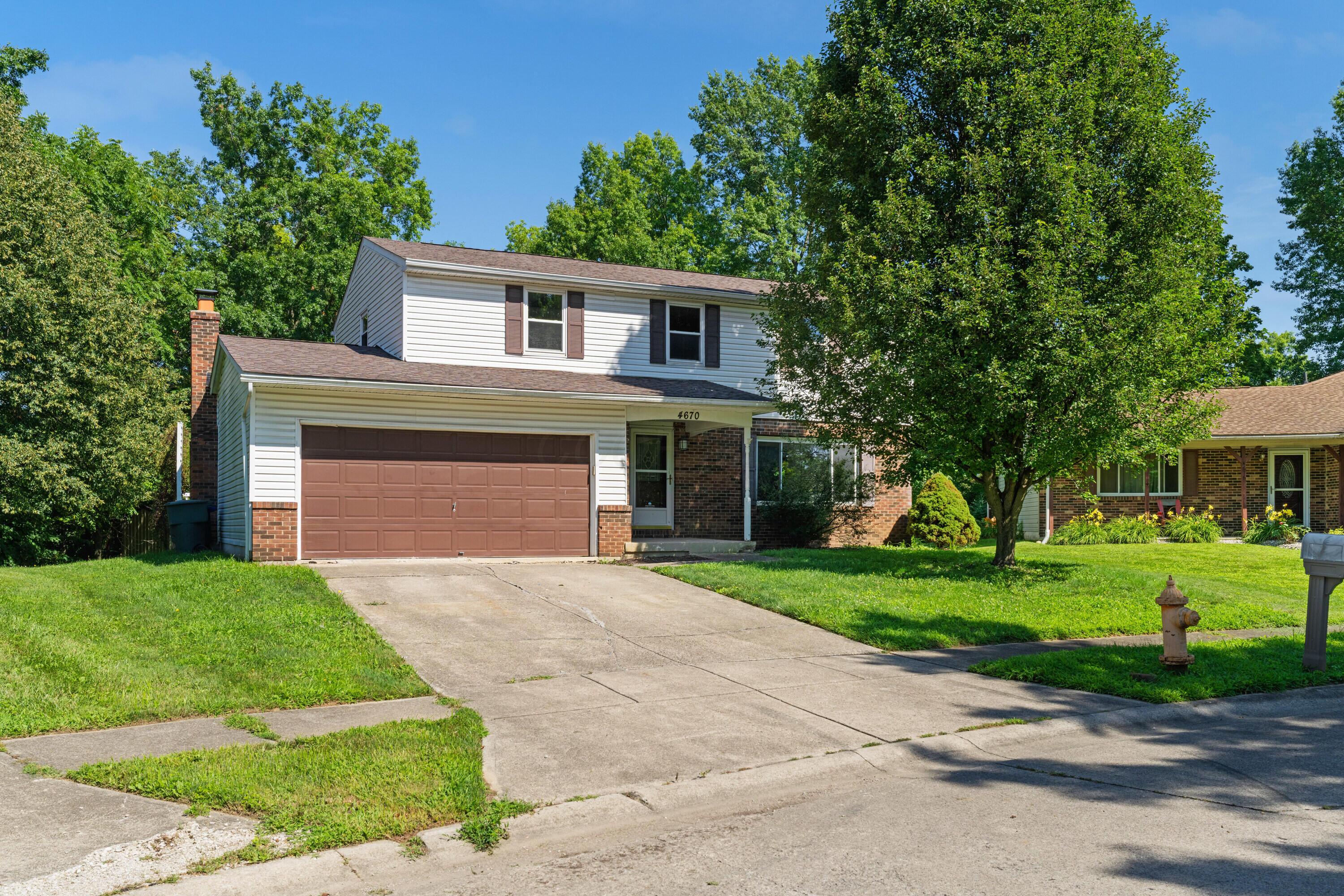 Welcome to 4670 Lasky Court, a classic two-story tucked away on a quiet cul-de-sac in Gahanna. With four bedrooms, two and a half baths, and a layout that just makes sense, this home is as practical as it is comfortable. Step inside to find fresh paint, brand-new carpet, and an inviting flow from room to room. The eat-in kitchen checks all the boxes--granite countertops, stainless steel appliances, and plenty of space for weekday breakfasts or weekend meal prep. Just off the kitchen, the cozy family room features a brick hearth fireplace that practically begs for a good book and a cup of coffee. Upstairs, the spacious primary suite includes a walk-in closet and a private bath. Three additional bedrooms give you room for everyone--or everything--and the full unfinished basement offers serious potential for extra living space, a gym, or that home office you've been thinking about. Outside, the large backyard is lined with mature trees for added privacy with a great deck, plus there's a storage shed ready to handle your lawn gear, bikes or hobby stash. The two-car garage is attached, and major updates are already handled: HVAC in 2024, roof in 2010. The location? It's a win. Just minutes from major highways, retail, restaurants and grocery stores--because convenience shouldn't be a luxury. If you're looking for a solid home in a great spot with room to grow and nothing left to do but move in, this one's worth a look.