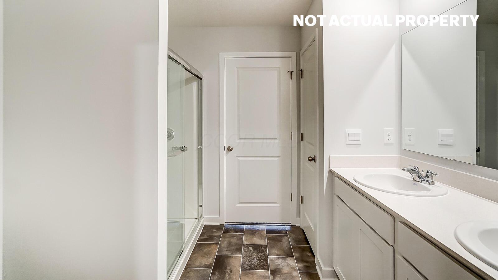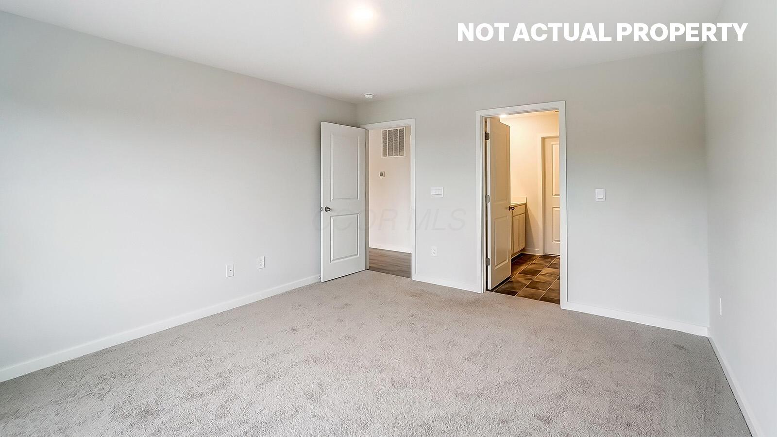 The primary suite offers a spa-like ensuite bath with dual vanities, a walk-in shower, and a spacious walk-in closet. Two additional bedrooms share a full bath, providing flexibility for guests or a home office.