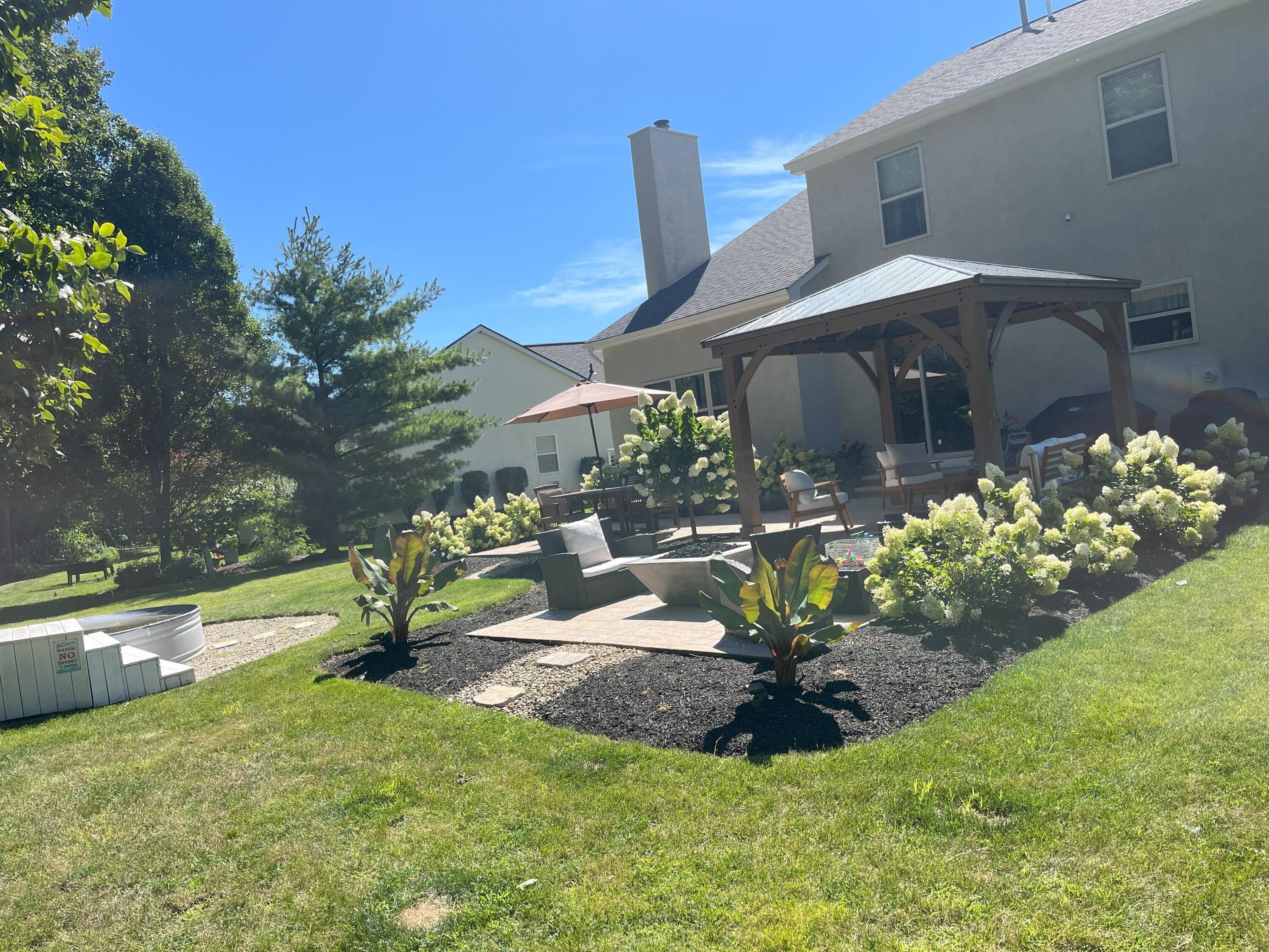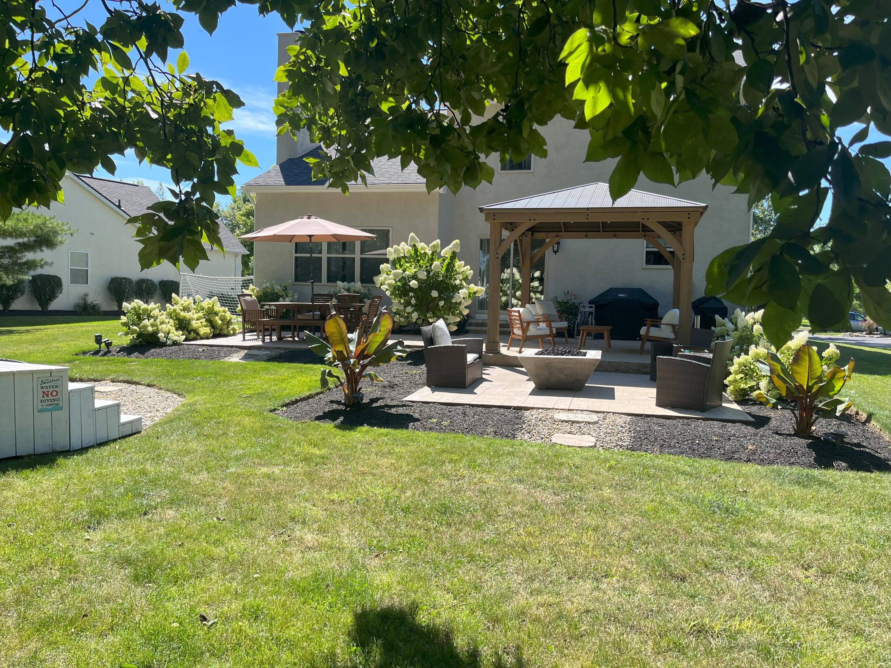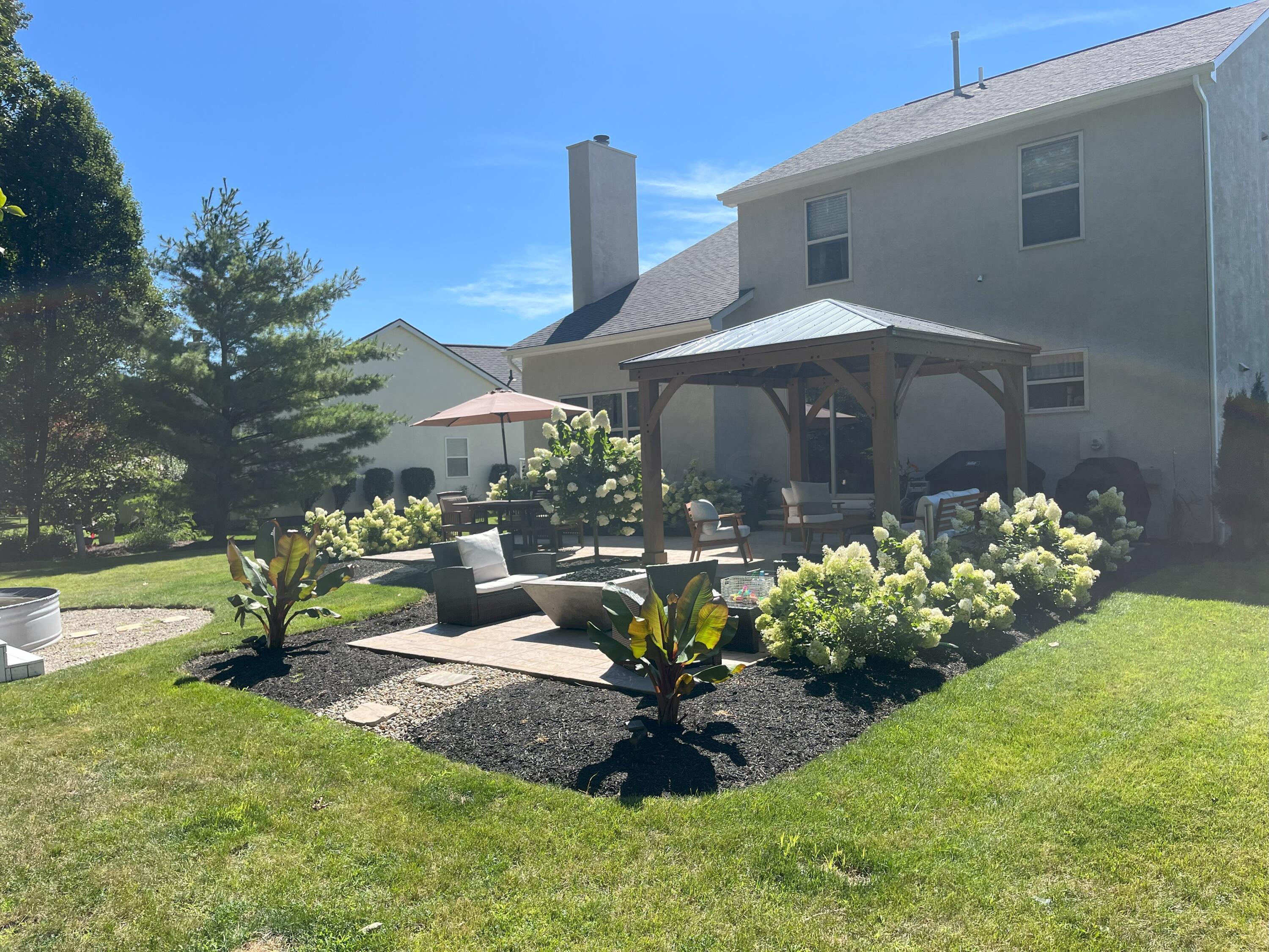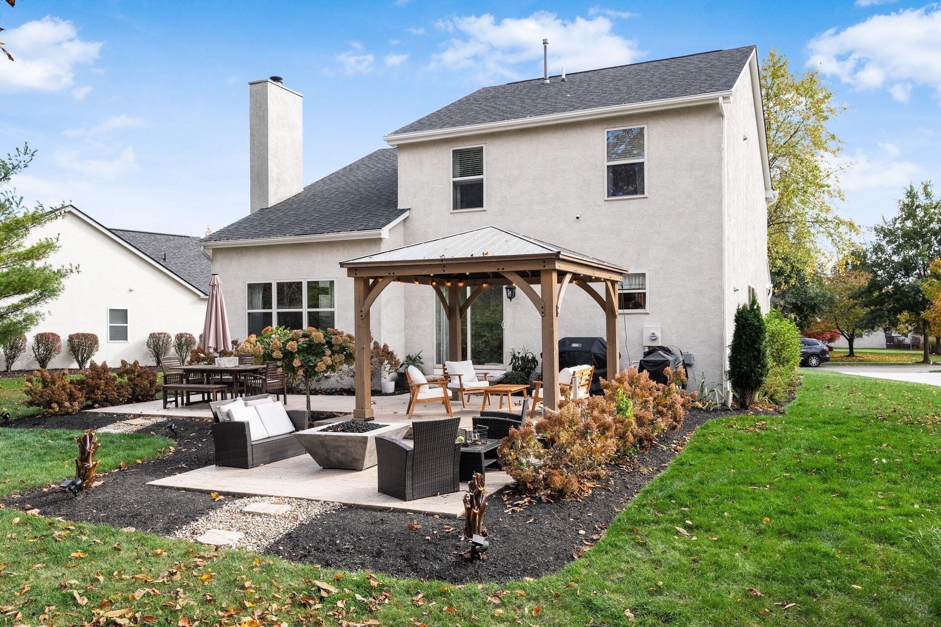This stunning home, located in the desirable Cramers Crossing subdivision, offers an open floor plan with a beautiful kitchen, dining room, large great room, first-floor den, 4 bedrooms, 2 1/2 bathrooms, first floor laundry, and a great 3-car garage. Updated throughout including a remodeled kitchen and stainless appliances, a beautiful stone gas fireplace, brand new flooring on the main level, new upstairs carpeting, bathroom vanities, finished basement, new roof, new furnace and AC, stamped concrete patio, gas fire pit, pergola, stock tank kids pool with filtration, water softener and RO system, new exterior paint and trim, interior paint, finished garage, and more. Enjoy the private backyard that backs to a 2 acre greenspace. Close to Dublin South Pool and Fountain/Splash Park.