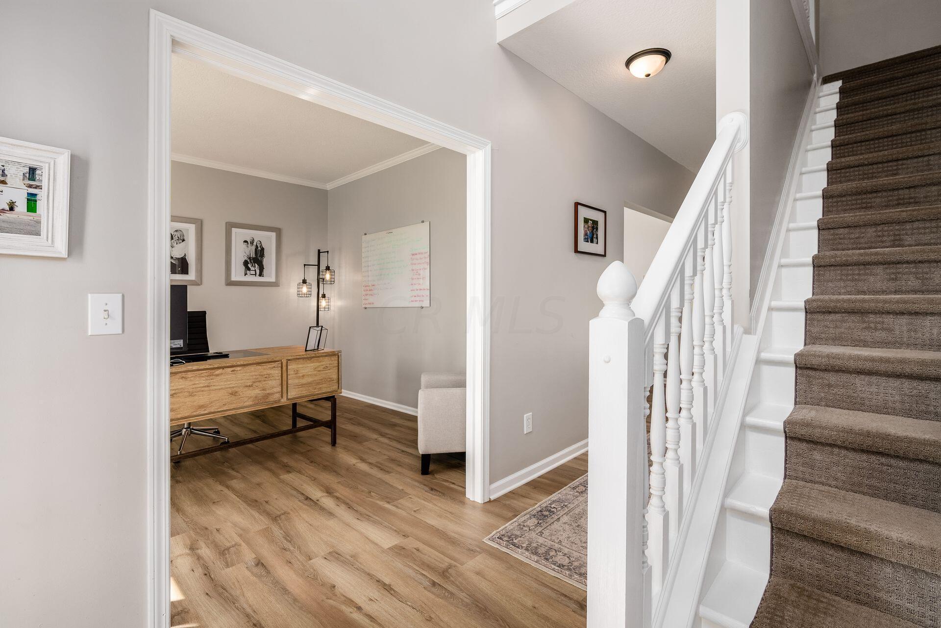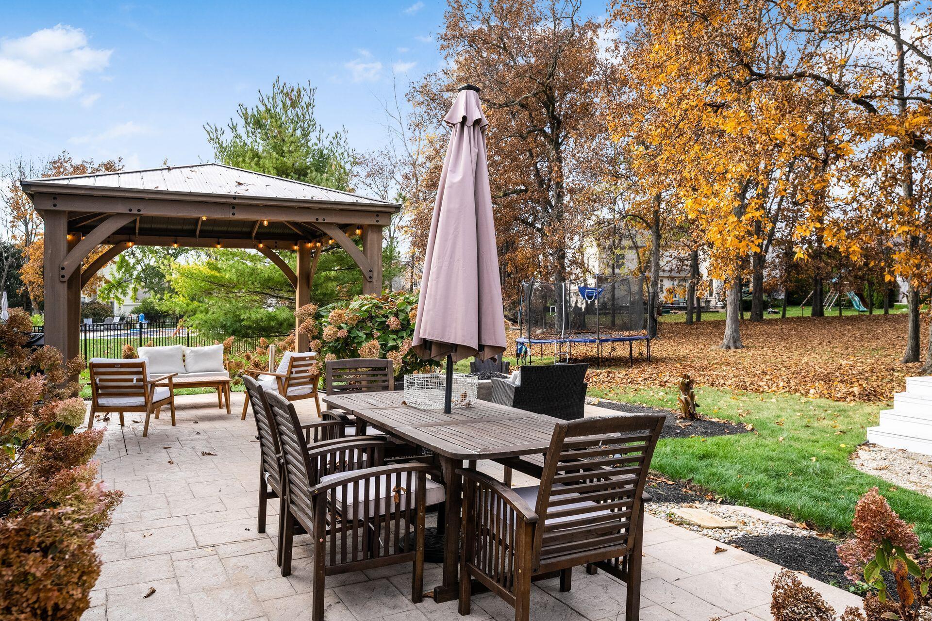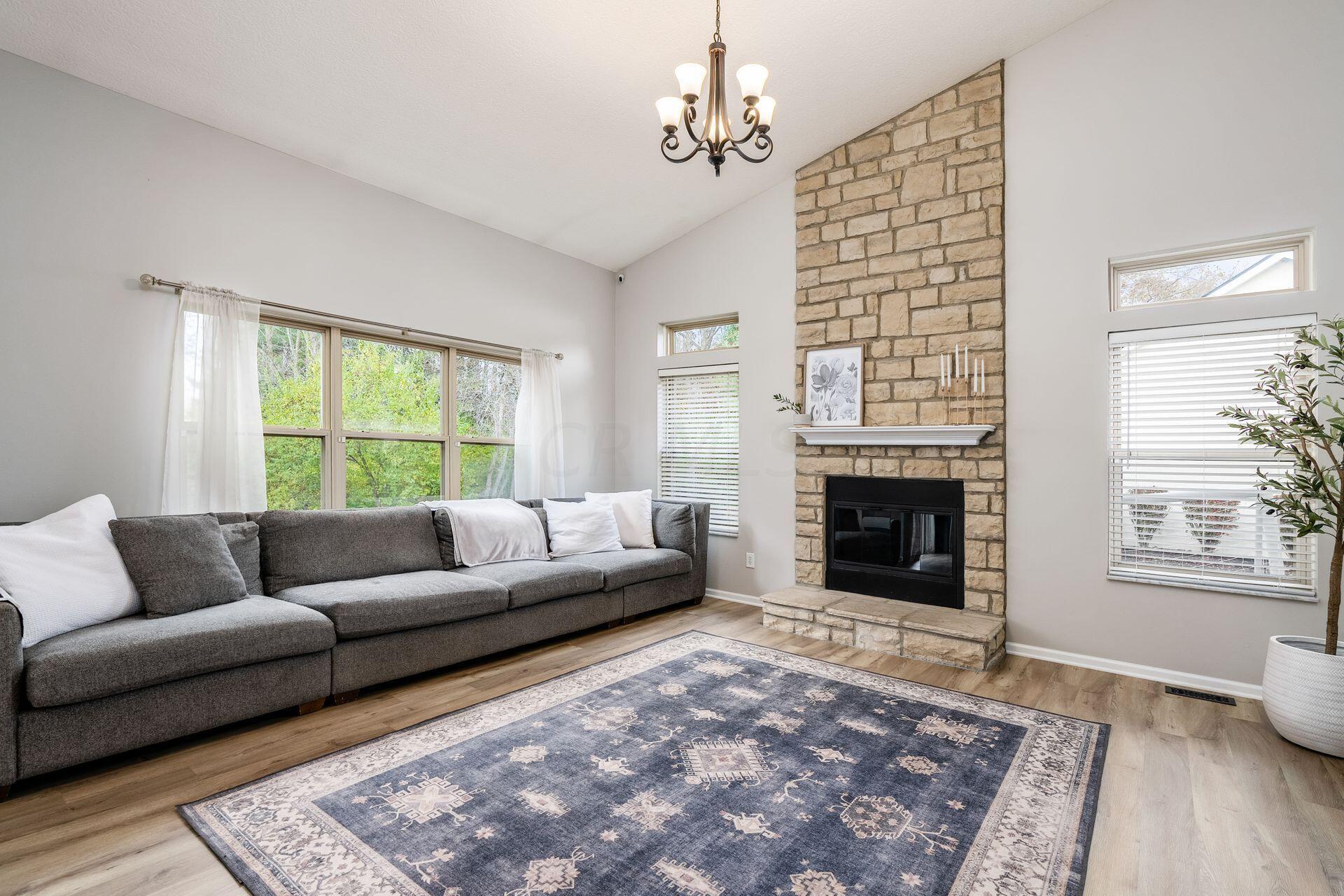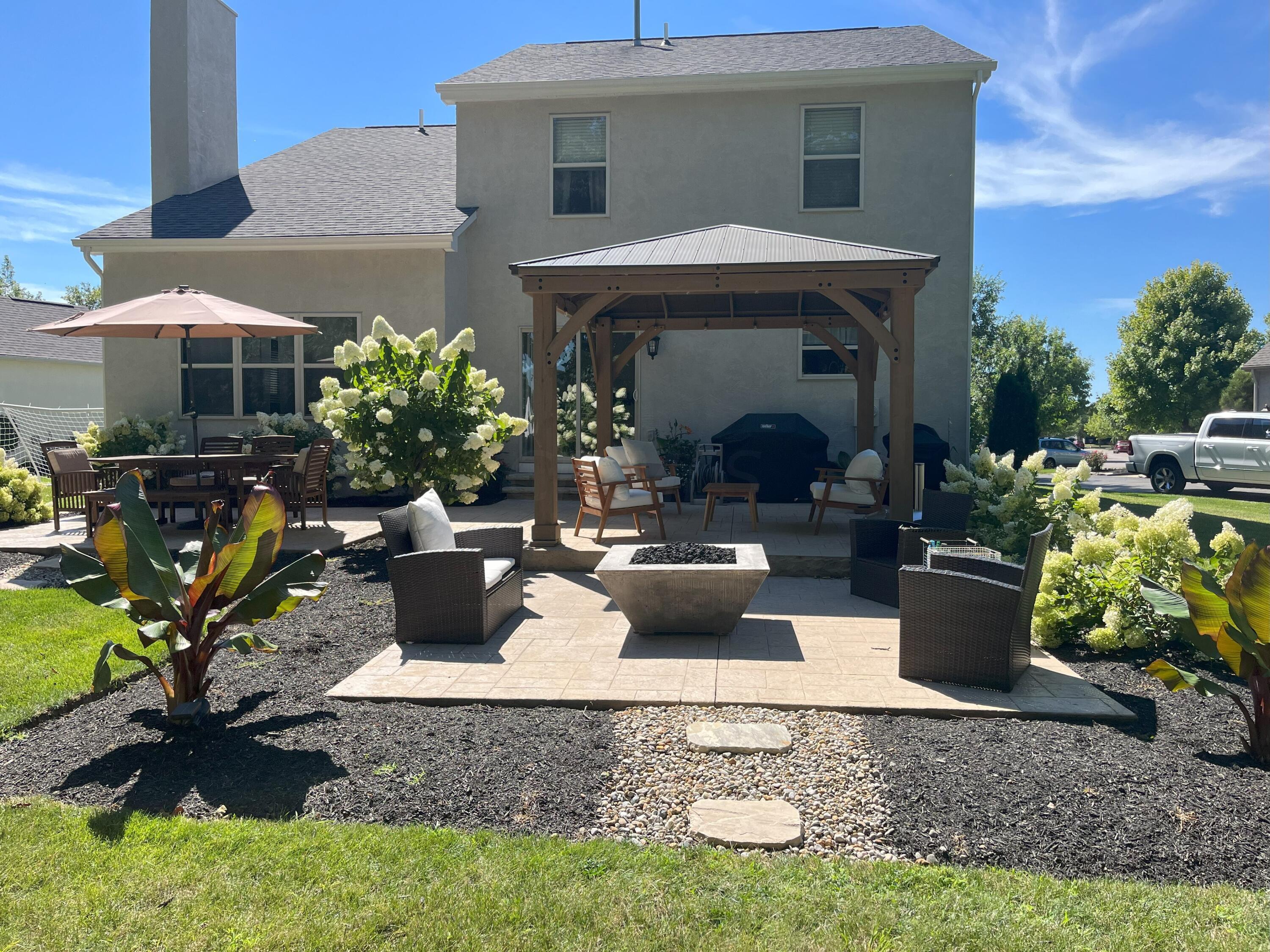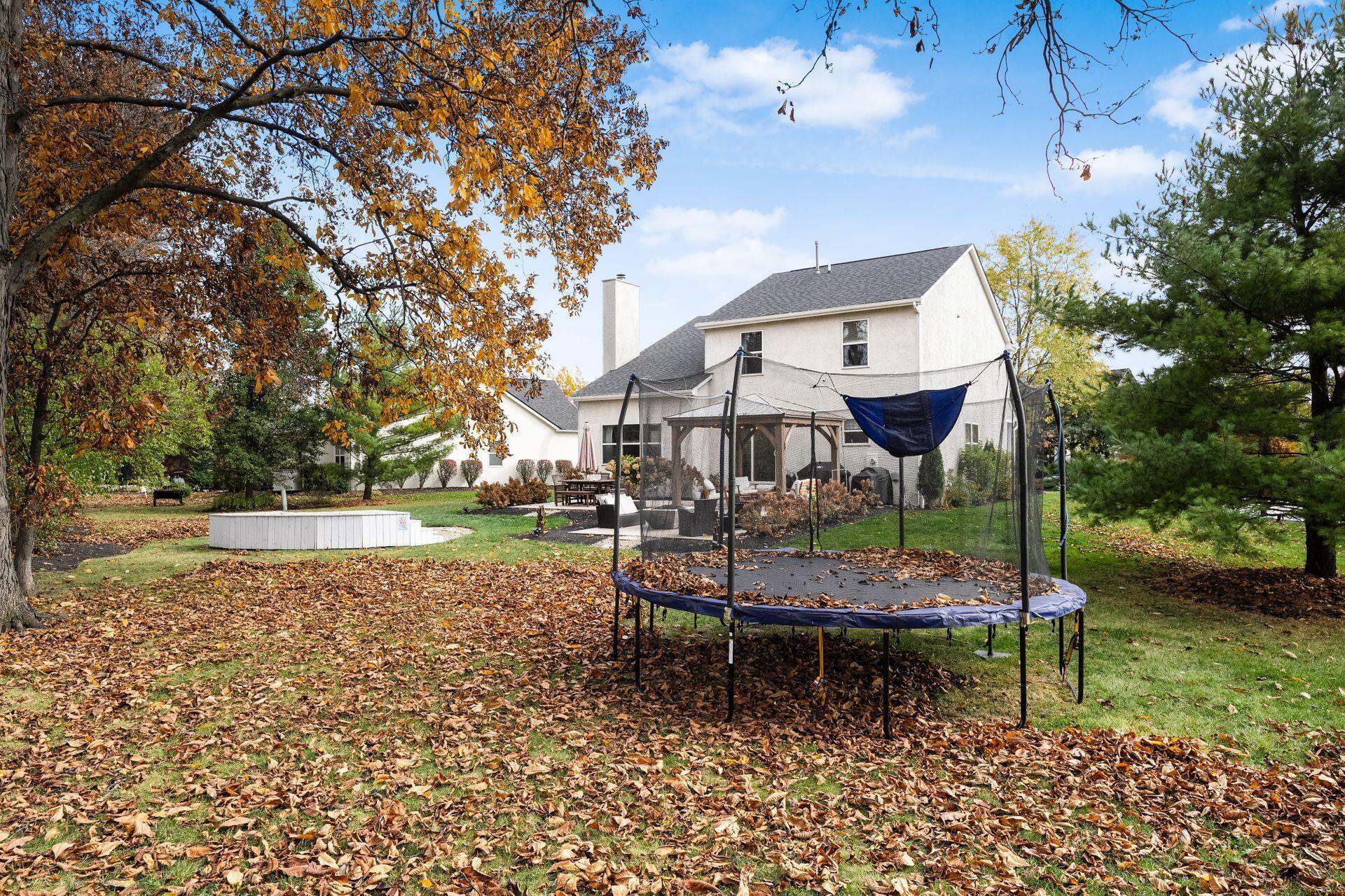 This stunning home, located in the desirable Cramers Crossing subdivision, offers an open floor plan with a beautiful kitchen, dining room, large great room, first-floor den, 4 bedrooms, 2 1/2 bathrooms, first floor laundry, and a great 3-car garage. Updated throughout including a remodeled kitchen and stainless appliances, a beautiful stone gas fireplace, brand new flooring on the main level, new upstairs carpeting, bathroom vanities, finished basement, new roof, new furnace and AC, stamped concrete patio, gas fire pit, pergola, stock tank kids pool with filtration, water softener and RO system, new exterior paint and trim, interior paint, finished garage, and more. Enjoy the private backyard that backs to a 2 acre greenspace. Close to Dublin South Pool and Fountain/Splash Park.