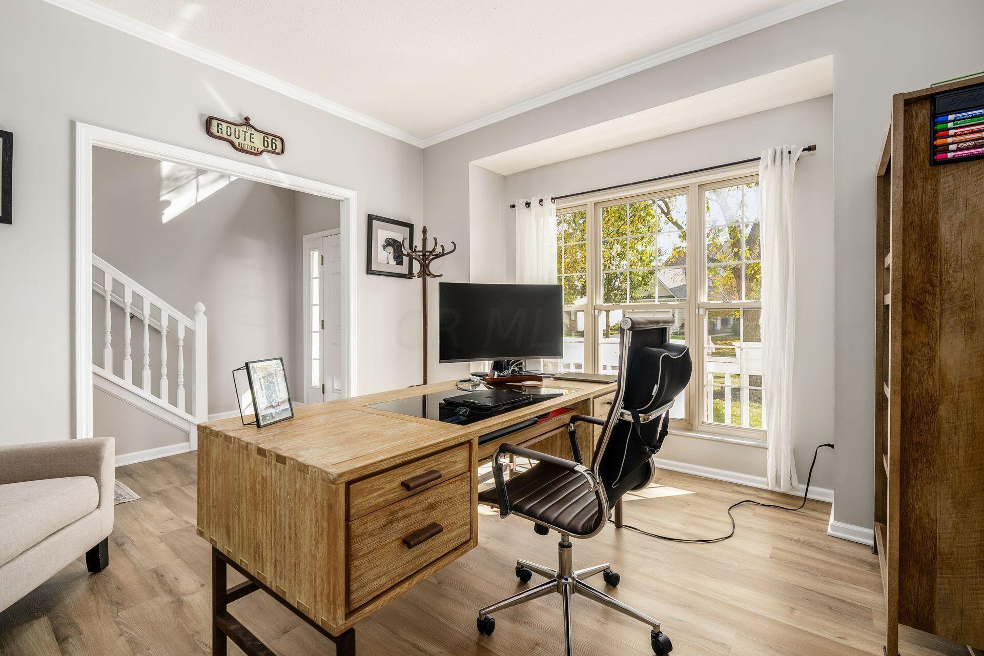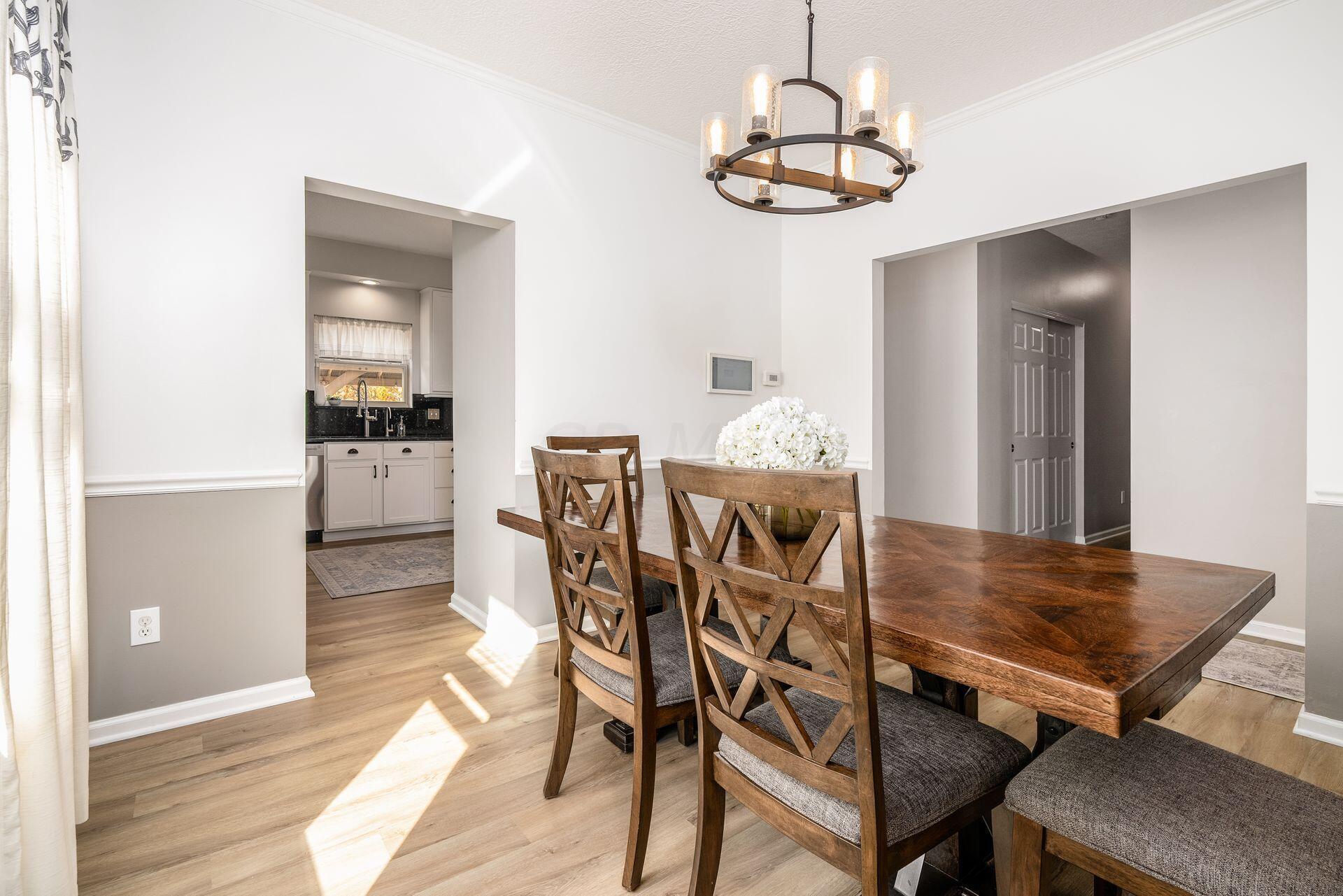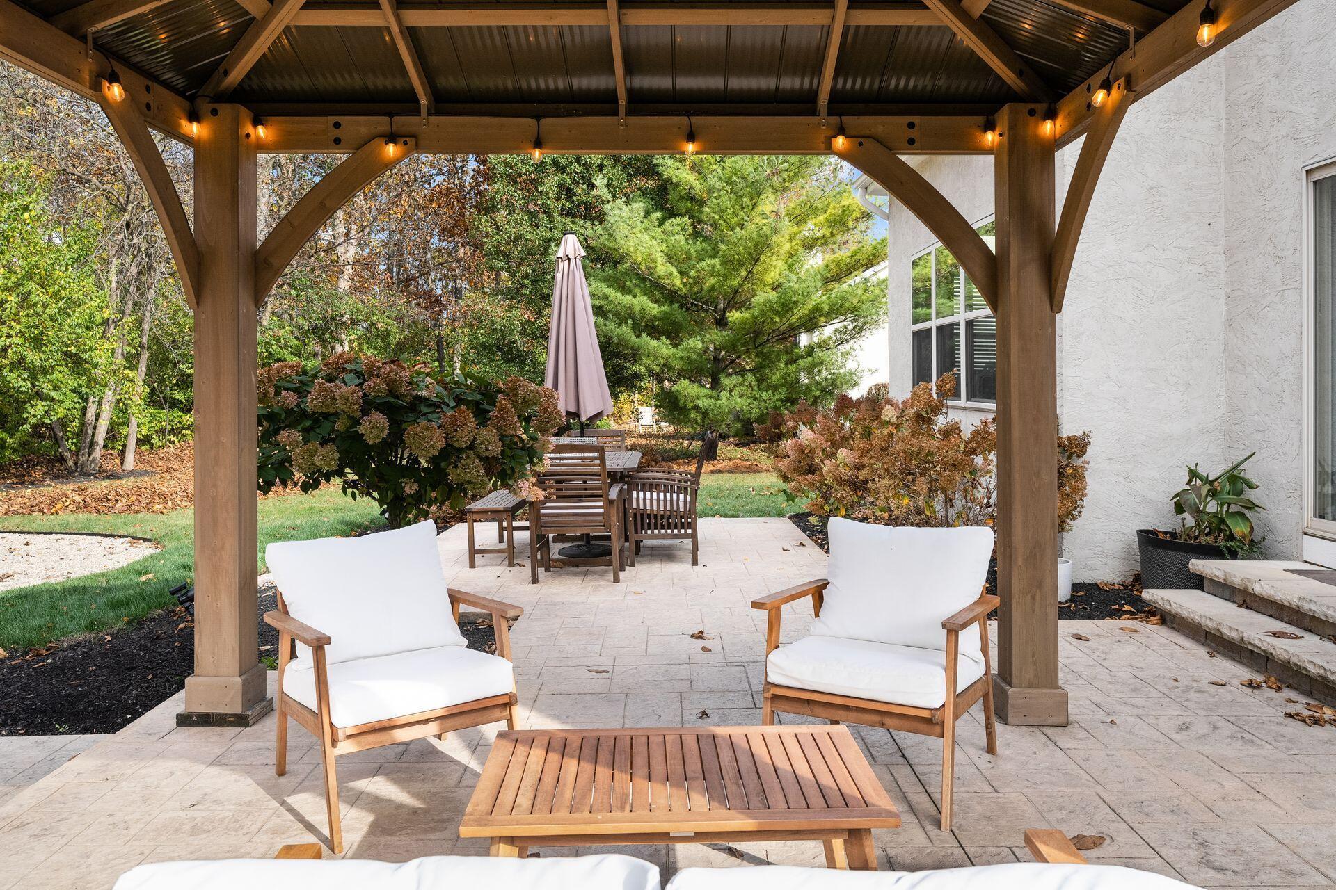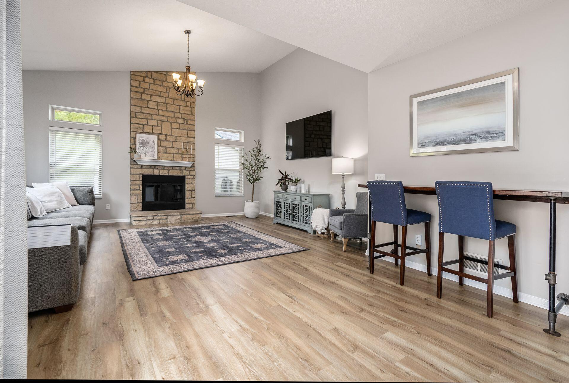 This stunning home, located in the desirable Cramers Crossing subdivision, offers an open floor plan with a beautiful kitchen, dining room, large great room, first-floor den, 4 bedrooms, 2 1/2 bathrooms, first floor laundry, and a great 3-car garage. Updated throughout including a remodeled kitchen and stainless appliances, a beautiful stone gas fireplace, brand new flooring on the main level, new upstairs carpeting, bathroom vanities, finished basement, new roof, new furnace and AC, stamped concrete patio, gas fire pit, pergola, stock tank kids pool with filtration, water softener and RO system, new exterior paint and trim, interior paint, finished garage, and more. Enjoy the private backyard that backs to a 2 acre greenspace. Close to Dublin South Pool and Fountain/Splash Park.
