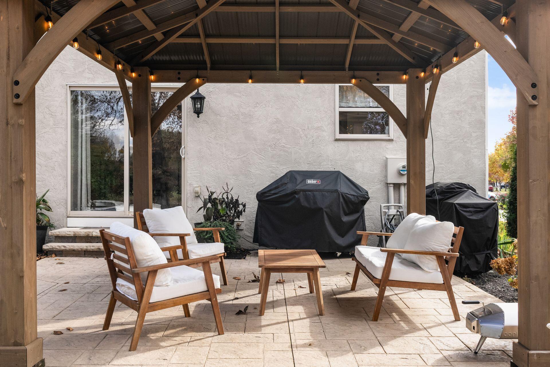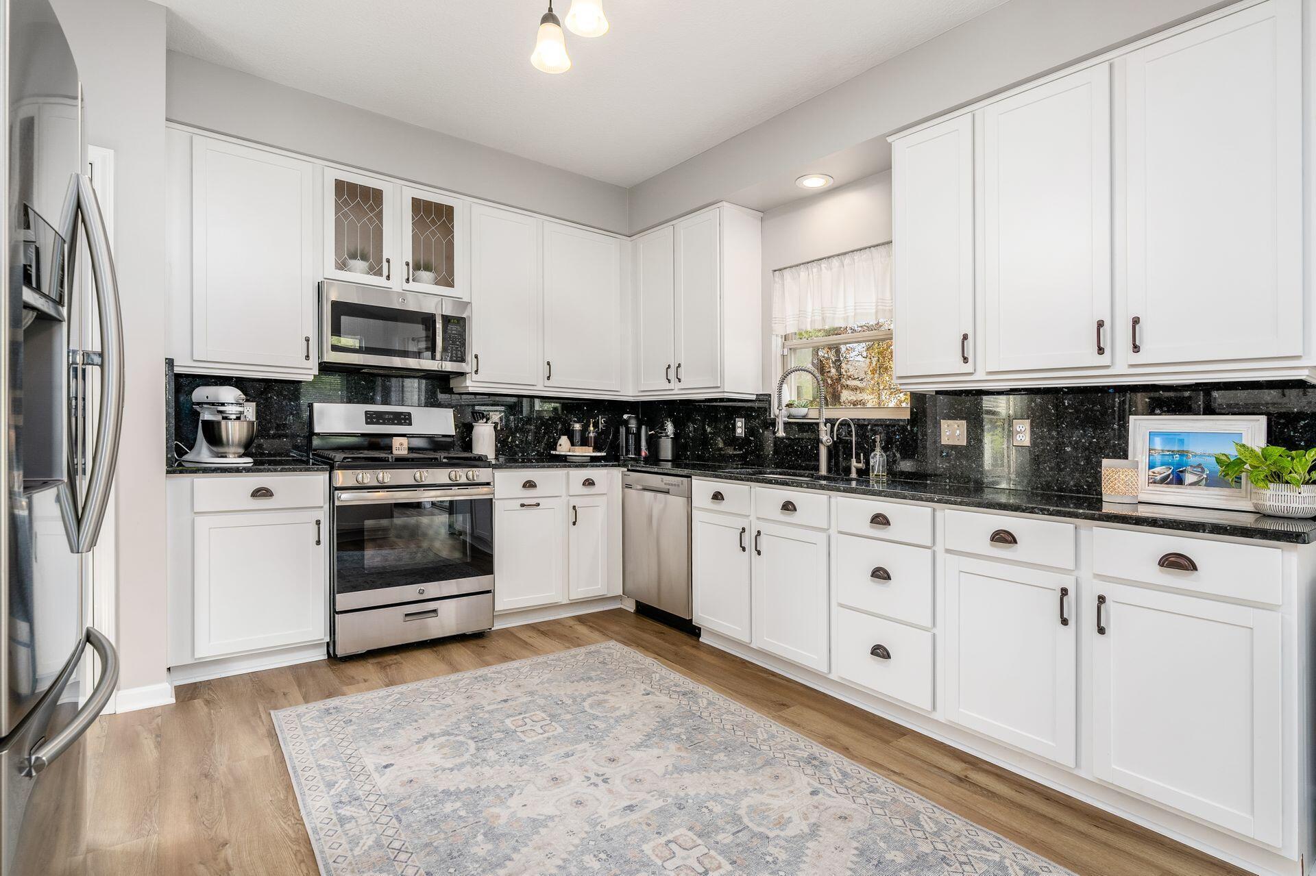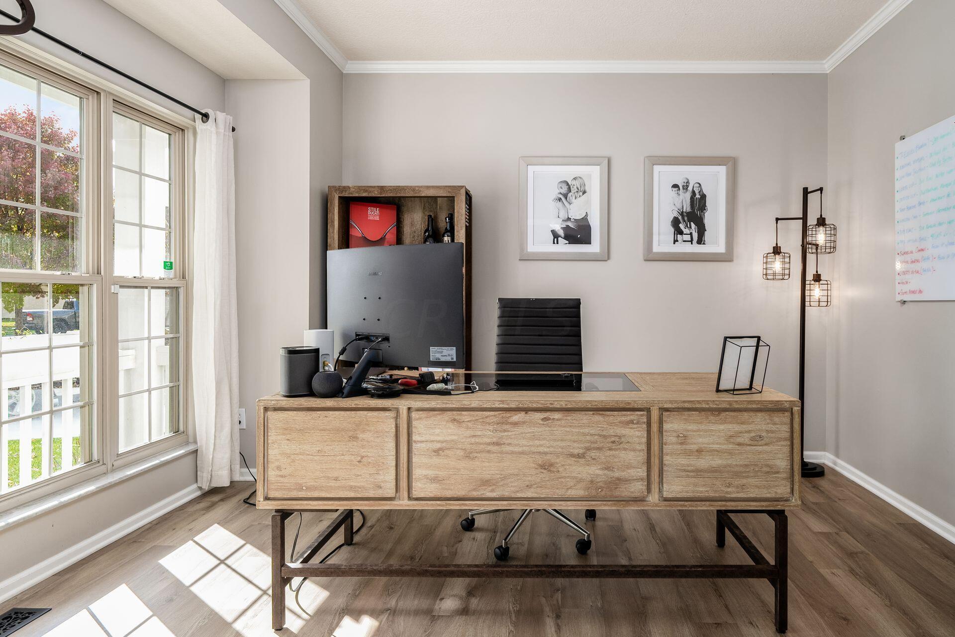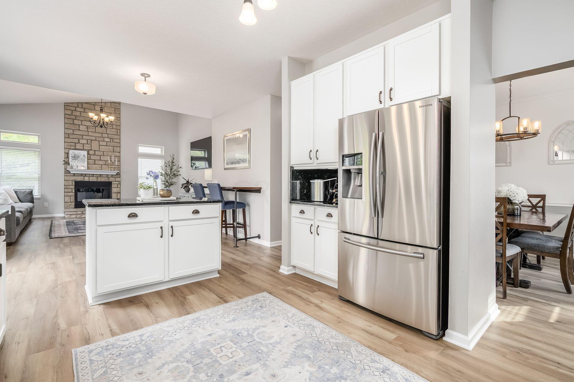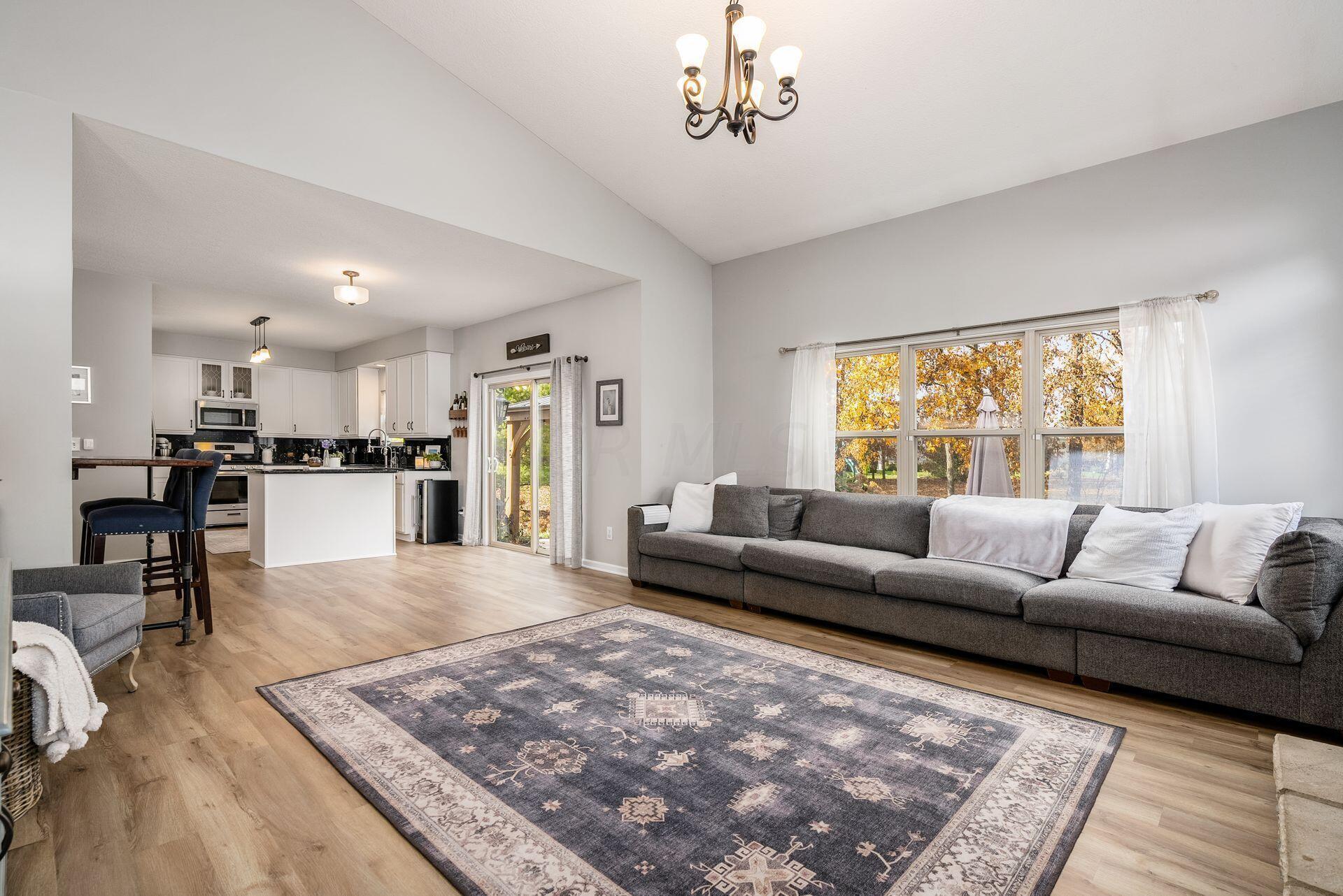 This stunning home, located in the desirable Cramers Crossing subdivision, offers an open floor plan with a beautiful kitchen, dining room, large great room, first-floor den, 4 bedrooms, 2 1/2 bathrooms, first floor laundry, and a great 3-car garage. Updated throughout including a remodeled kitchen and stainless appliances, a beautiful stone gas fireplace, brand new flooring on the main level, new upstairs carpeting, bathroom vanities, finished basement, new roof, new furnace and AC, stamped concrete patio, gas fire pit, pergola, stock tank kids pool with filtration, water softener and RO system, new exterior paint and trim, interior paint, finished garage, and more. Enjoy the private backyard that backs to a 2 acre greenspace. Close to Dublin South Pool and Fountain/Splash Park.