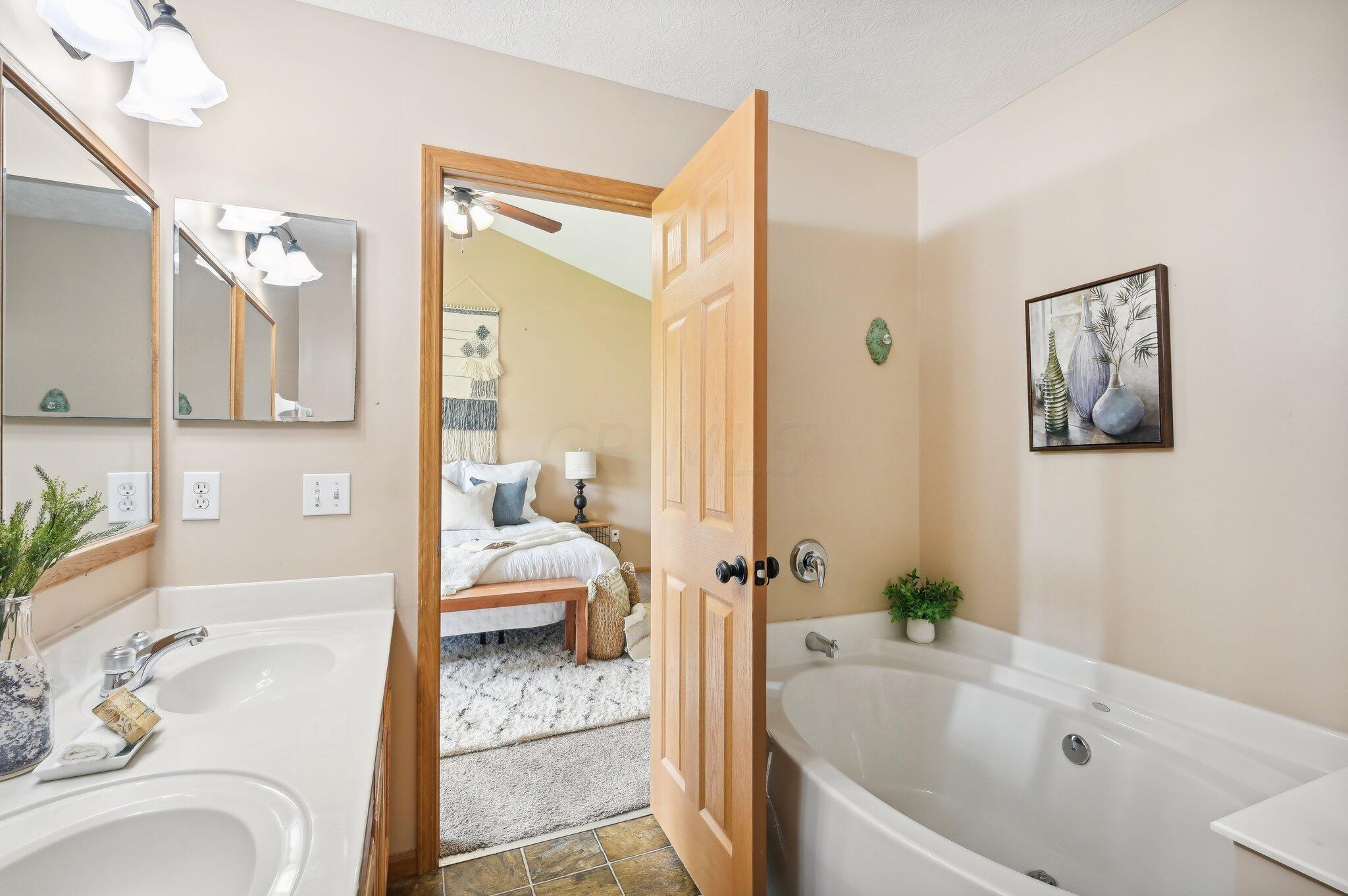 This gorgeous 2 story home with front porch in the Genoa Farms is a MUST SEE!! This home features 5 bedrooms and 3.1 baths with custom made closets in the owners suite,. This house offers plenty of space (Approx 3048 sq.ft incl.bsmnt).The professionally finished lower level rec-room also houses a 5th bedroom with egress window, a full bath, plus a kitchenette with a refrigerator, dishwasher & sink. Enjoy family & friends get together in your private custom patio. Prime location close to schools, shopping, & dining with neighborhood access to the Westerville bike path.Newer HVAC system.
