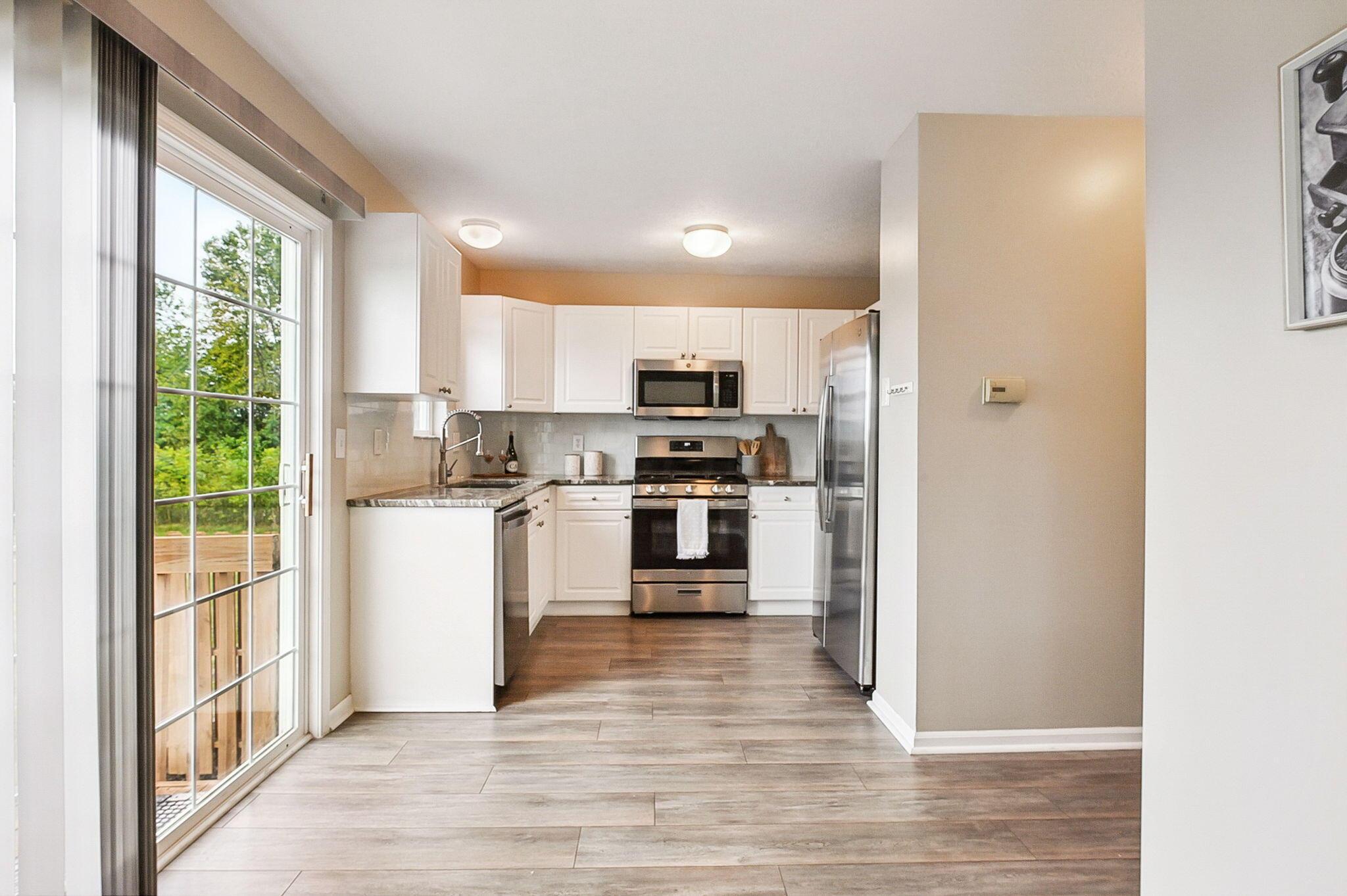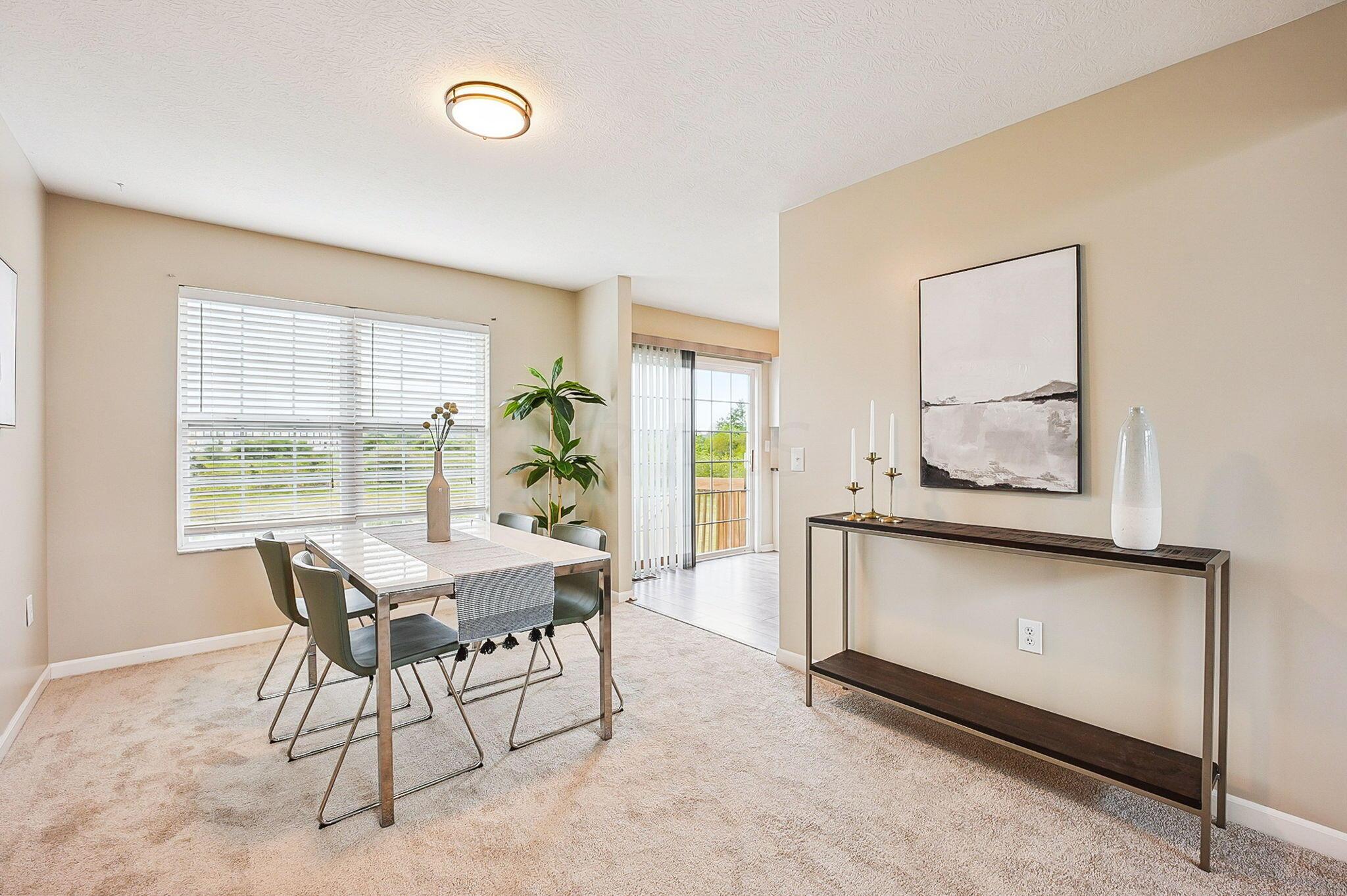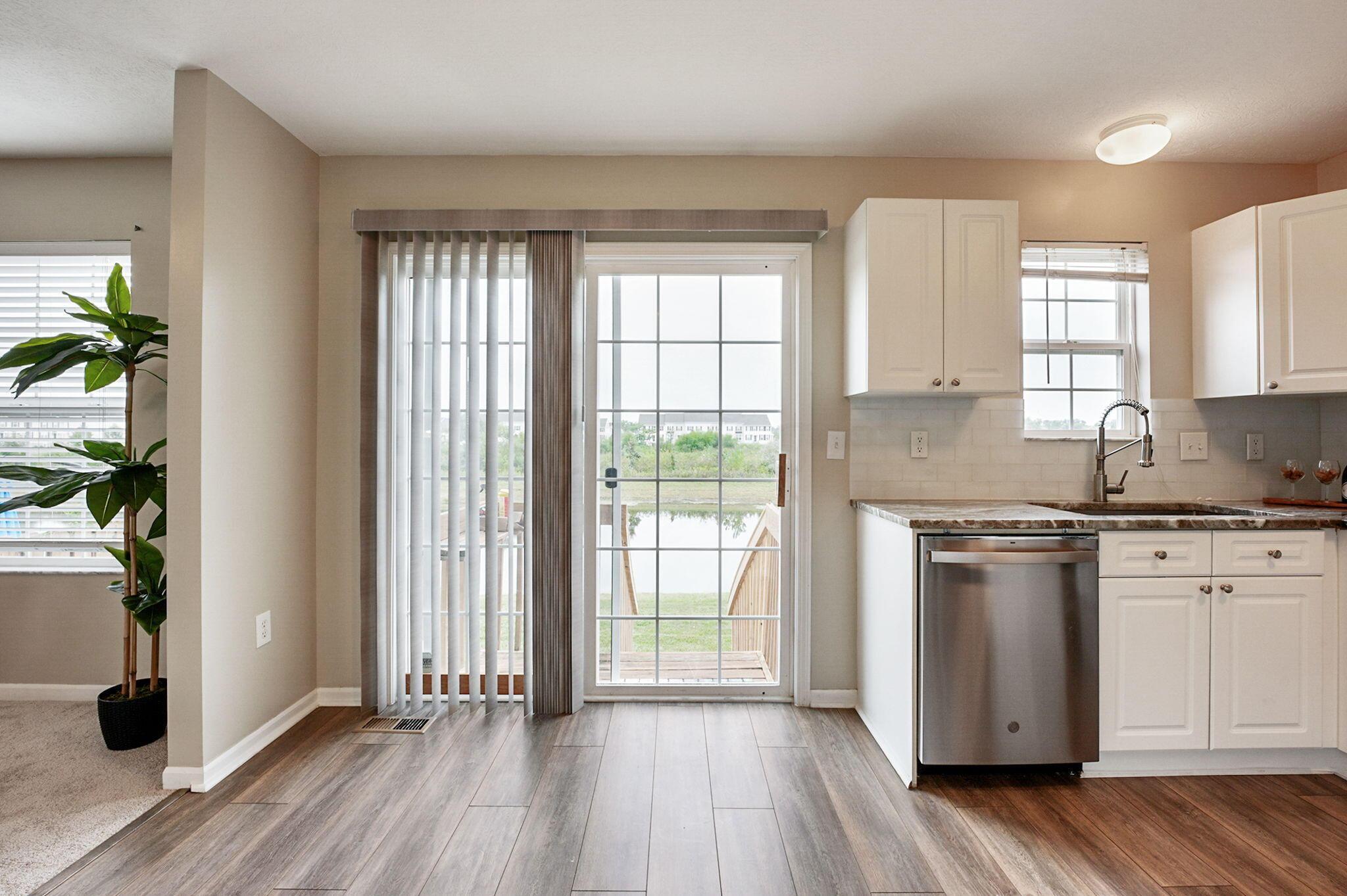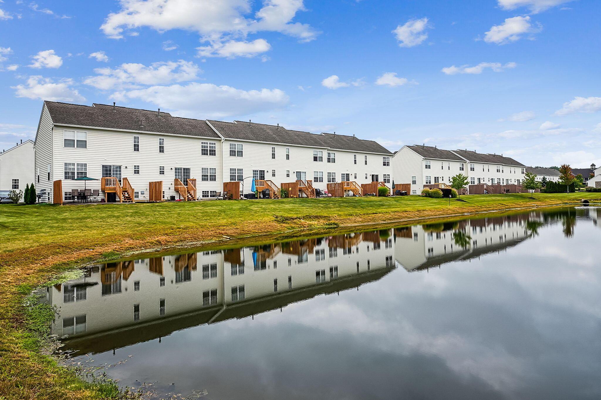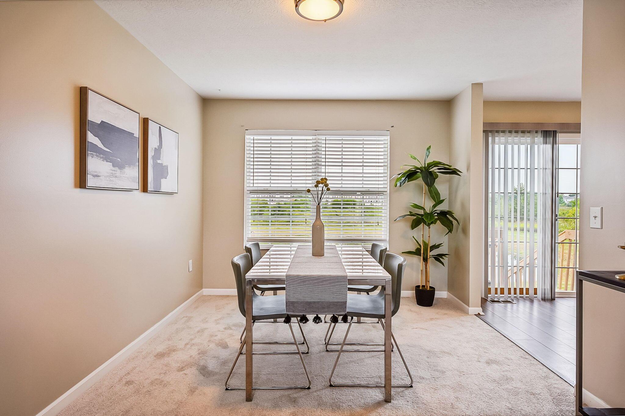 Immaculate and updated condo located in the desirable New Albany Park - Offering 2 bedrooms, 2.5 baths and 1 car attached garage - Beautiful light-filled great room with soaring ceilings welcomes you in the front door - Updated kitchen with granite counters, tile backsplash and SS appliances - Dining room and half bath on main level - Fresh interior paint and brand new carpeting throughout - Generous primary bedroom with walk-in closet and en-suite primary bath - 2nd bedroom and full additional bathroom round out the 2nd floor - Cozy lower level with gas-log fireplace, perfect for a family room or recreational space - LL laundry room - Attached garage has large custom 10'x12' storage space - Private patio overlooking the pond perfect for morning coffee or entertaing family & friends!