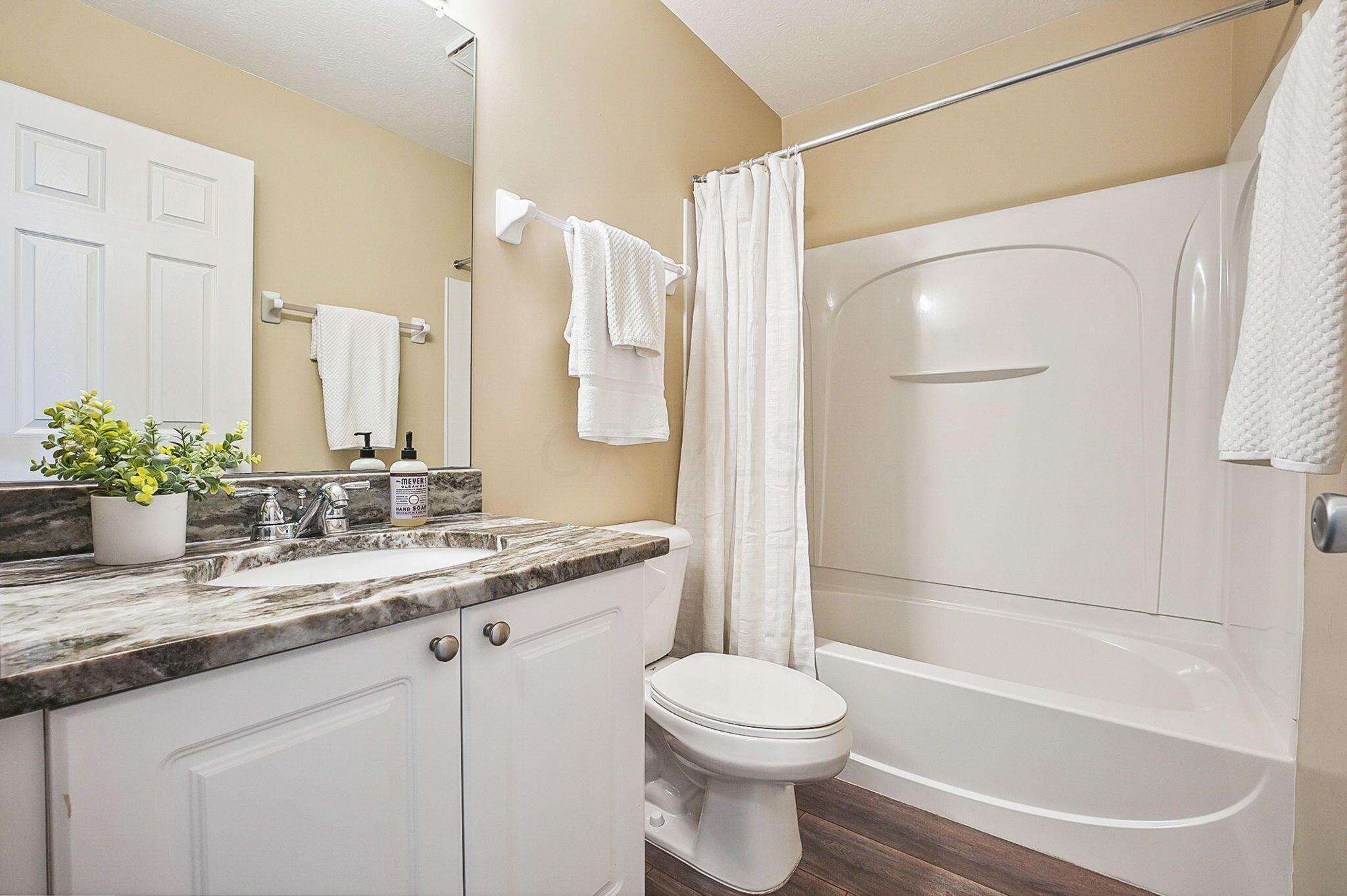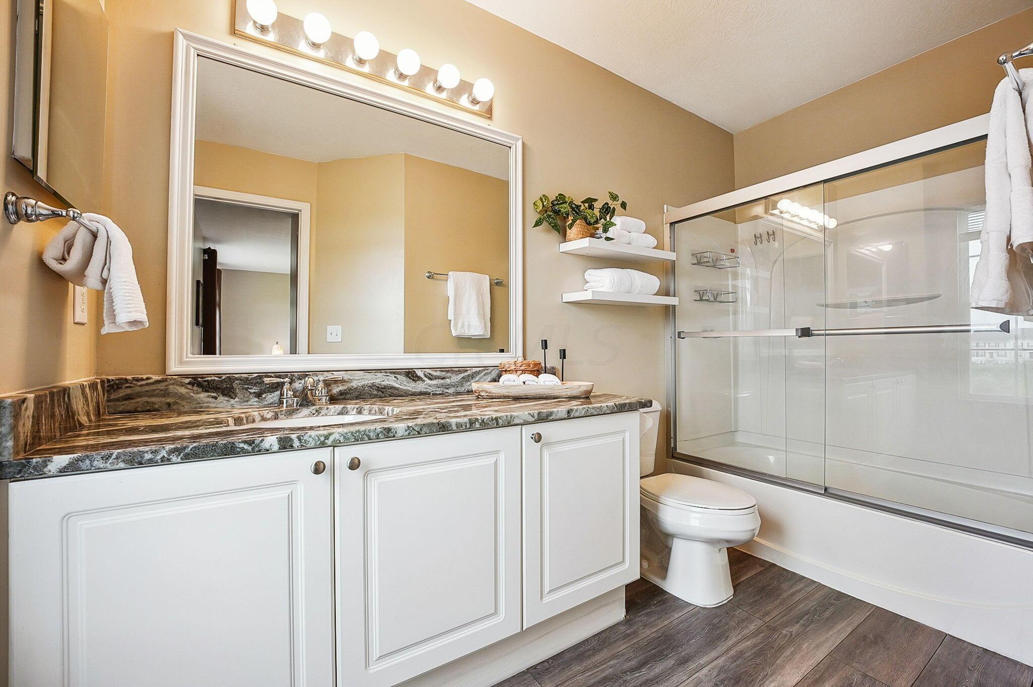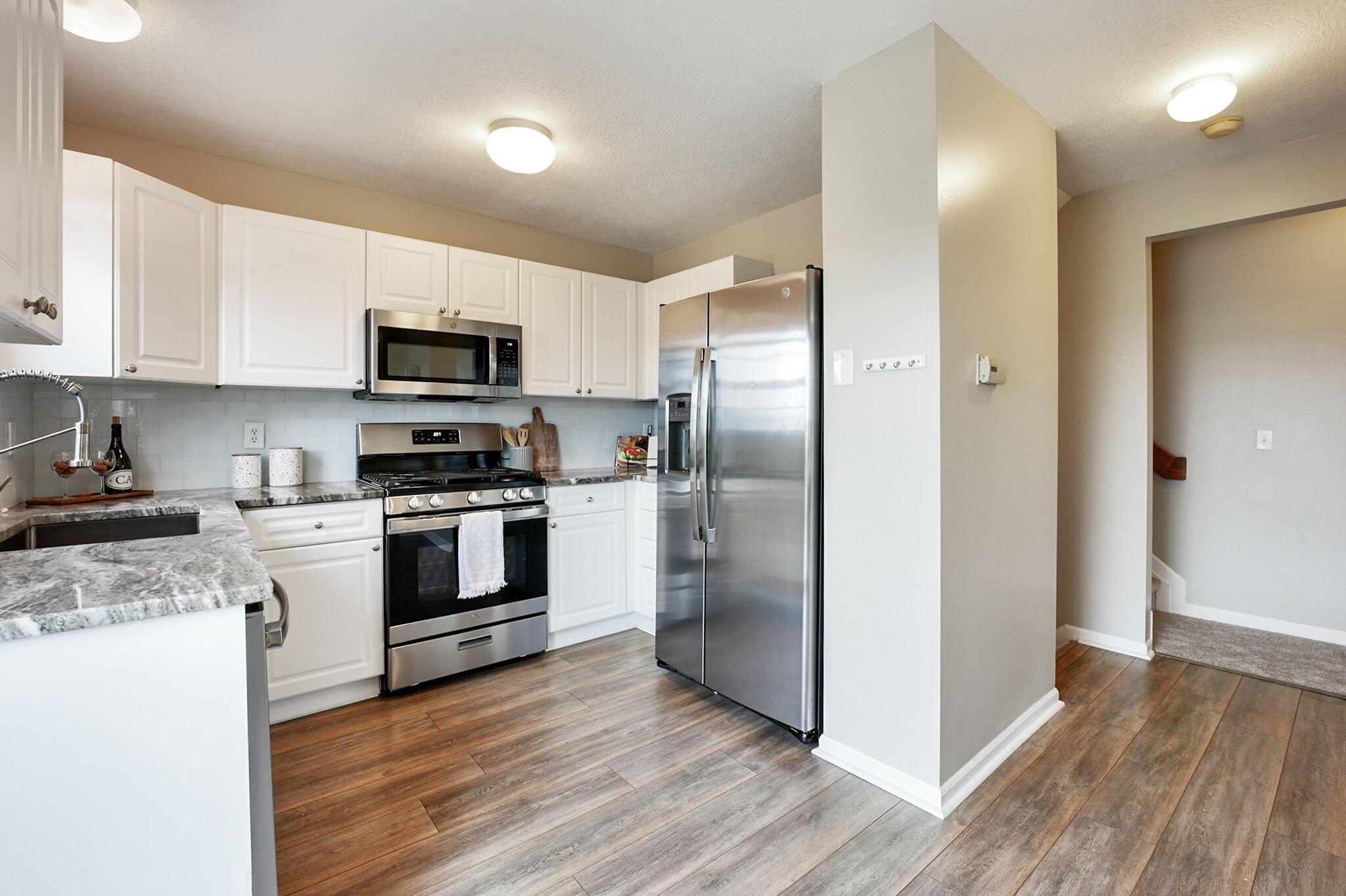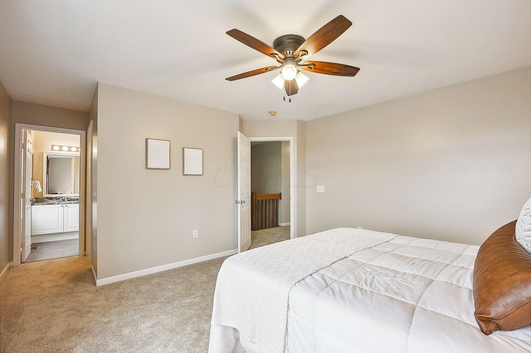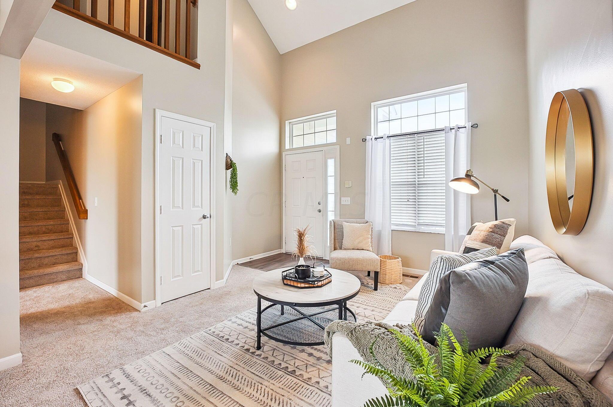 Immaculate and updated condo located in the desirable New Albany Park - Offering 2 bedrooms, 2.5 baths and 1 car attached garage - Beautiful light-filled great room with soaring ceilings welcomes you in the front door - Updated kitchen with granite counters, tile backsplash and SS appliances - Dining room and half bath on main level - Fresh interior paint and brand new carpeting throughout - Generous primary bedroom with walk-in closet and en-suite primary bath - 2nd bedroom and full additional bathroom round out the 2nd floor - Cozy lower level with gas-log fireplace, perfect for a family room or recreational space - LL laundry room - Attached garage has large custom 10'x12' storage space - Private patio overlooking the pond perfect for morning coffee or entertaing family & friends!