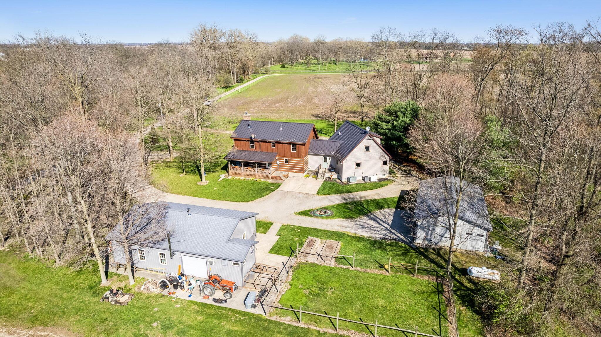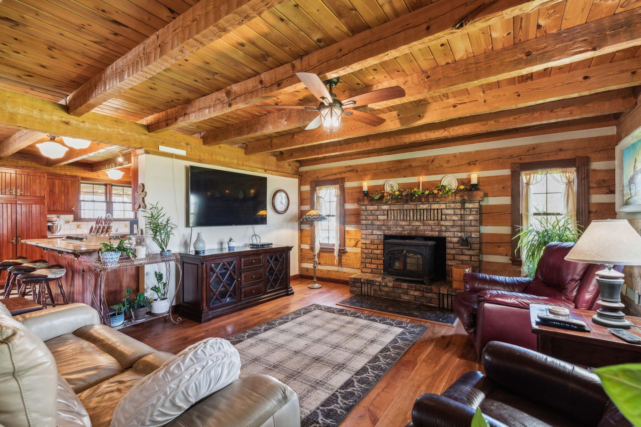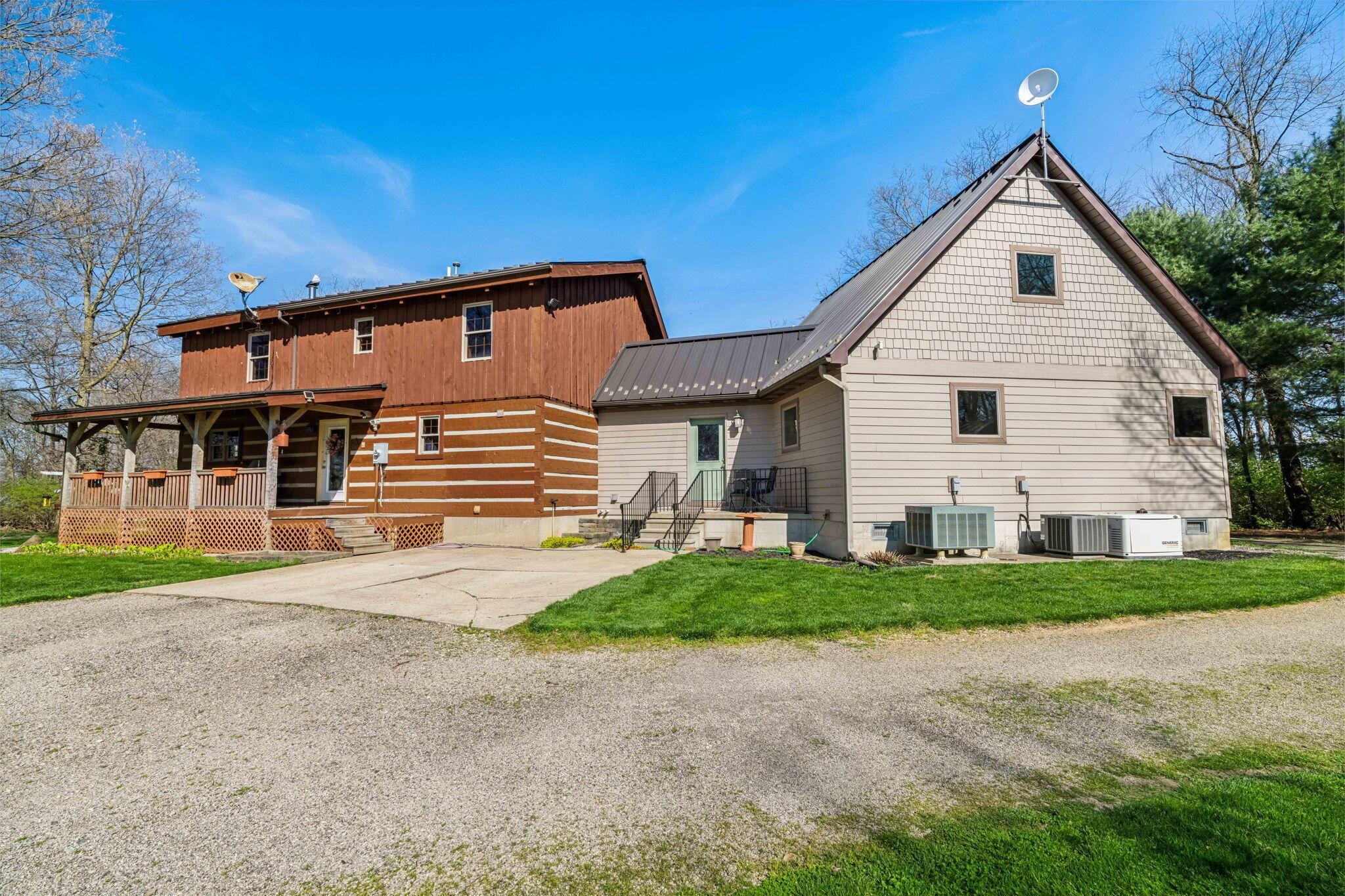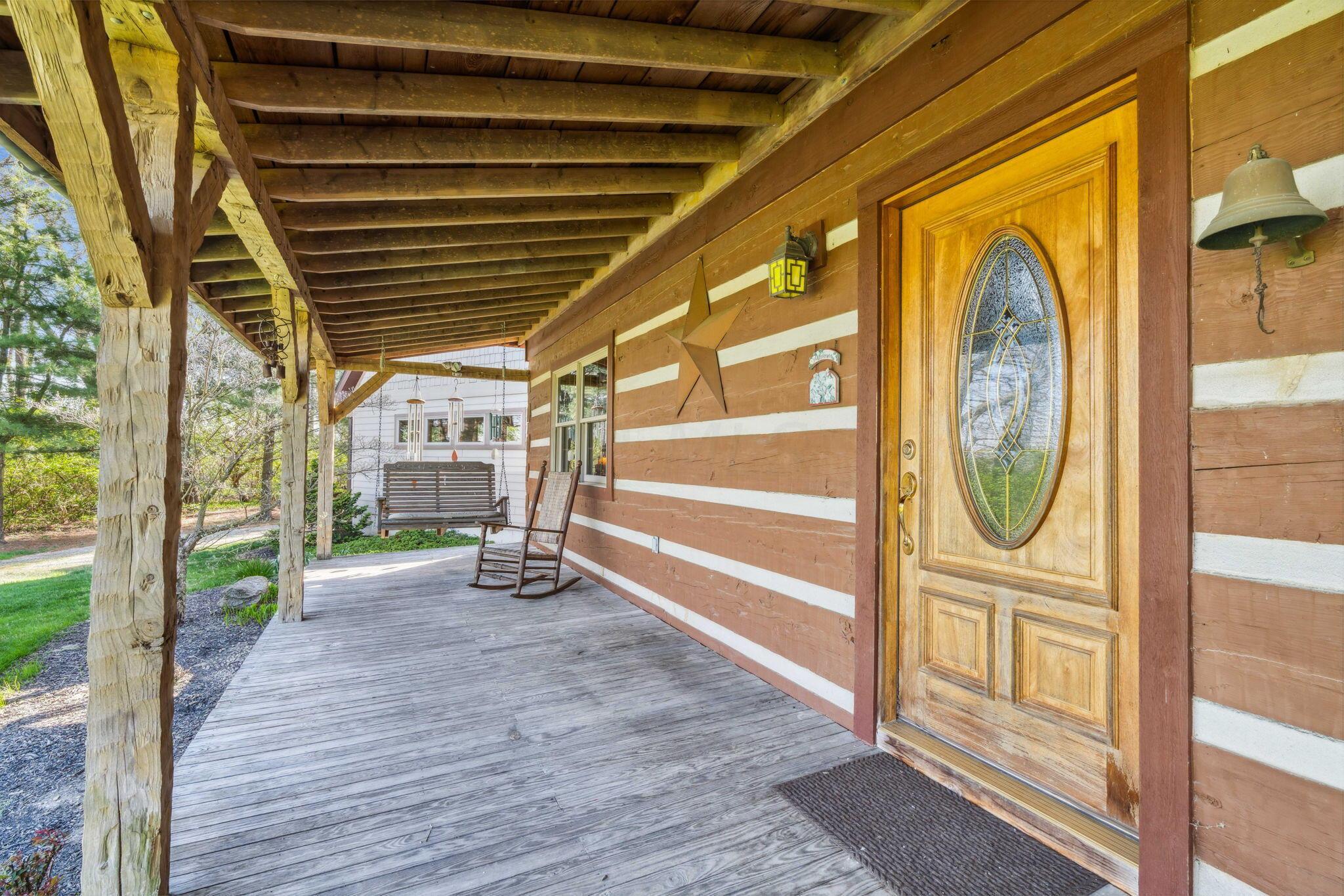 Experience rustic elegance on over 13 acres with this unique log cabin, a true nature lover's dream. The cabin features a 1st floor primary bedroom with en-suite bath and walk-in closet, ensuring comfort. A cozy living area with a wood-burning fireplace sets the tone for relaxing evenings. For guests or family, the property offers a separate guest suite with 2 baths and a full kitchen. Full basement provides ample storage or potential for added living space. Outdoor enthusiasts will love the land and 2 outbuildings; one heated with electric and a kitchen, perfect for entertaining or a workshop, the other for storage or a garage. Water is sourced from a reliable artesian well. Located just a short drive from town, yet offering unparalleled privacy, this property is a one-of-a-kind retreat