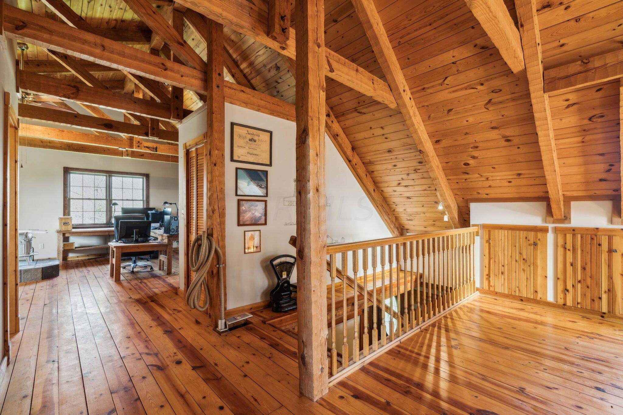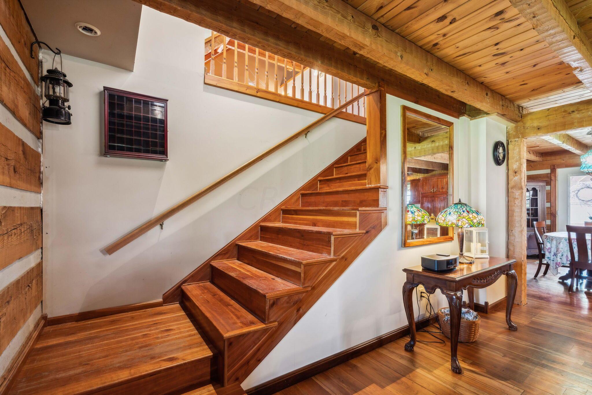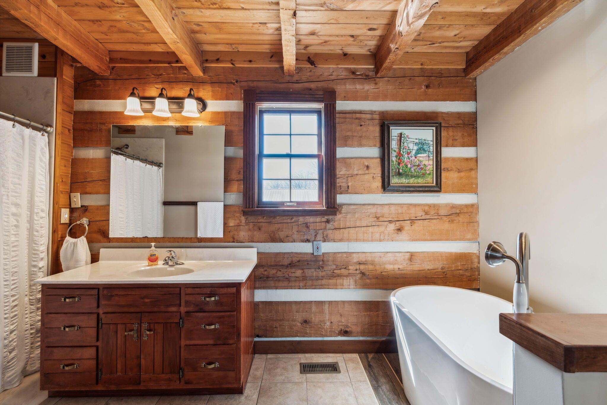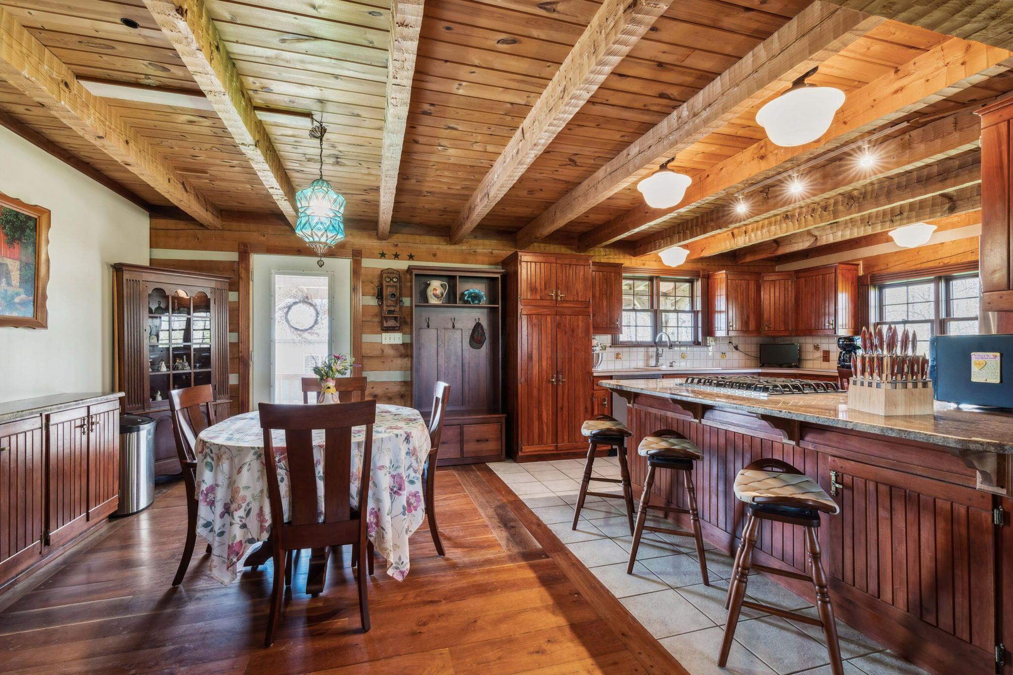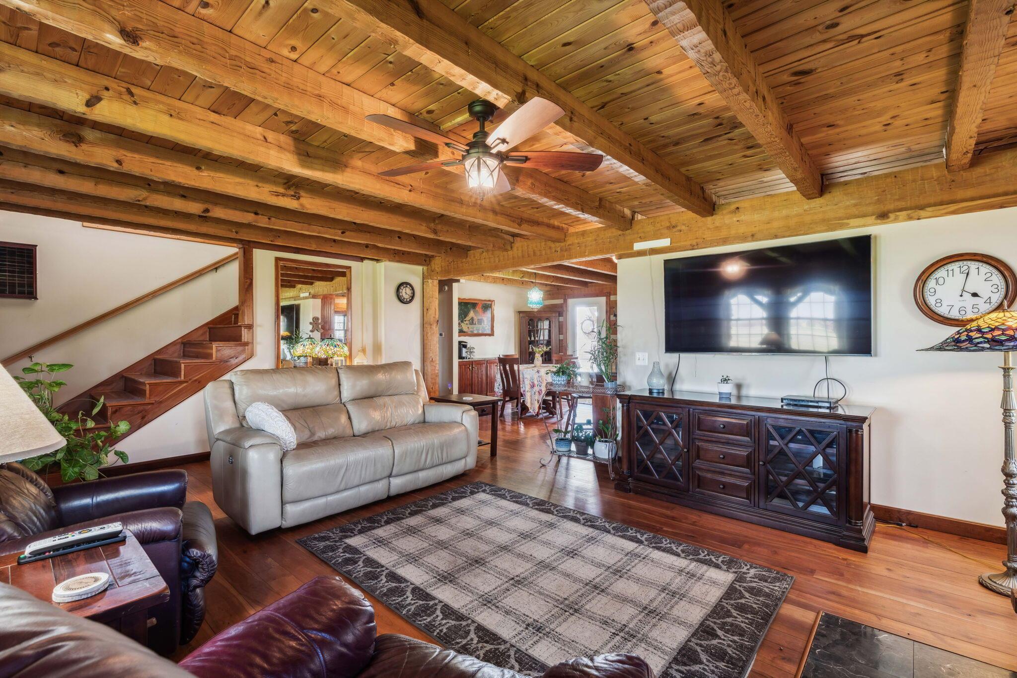 Experience rustic elegance on over 13 acres with this unique log cabin, a true nature lover's dream. The cabin features a 1st floor primary bedroom with en-suite bath and walk-in closet, ensuring comfort. A cozy living area with a wood-burning fireplace sets the tone for relaxing evenings. For guests or family, the property offers a separate guest suite with 2 baths and a full kitchen. Full basement provides ample storage or potential for added living space. Outdoor enthusiasts will love the land and 2 outbuildings; one heated with electric and a kitchen, perfect for entertaining or a workshop, the other for storage or a garage. Water is sourced from a reliable artesian well. Located just a short drive from town, yet offering unparalleled privacy, this property is a one-of-a-kind retreat