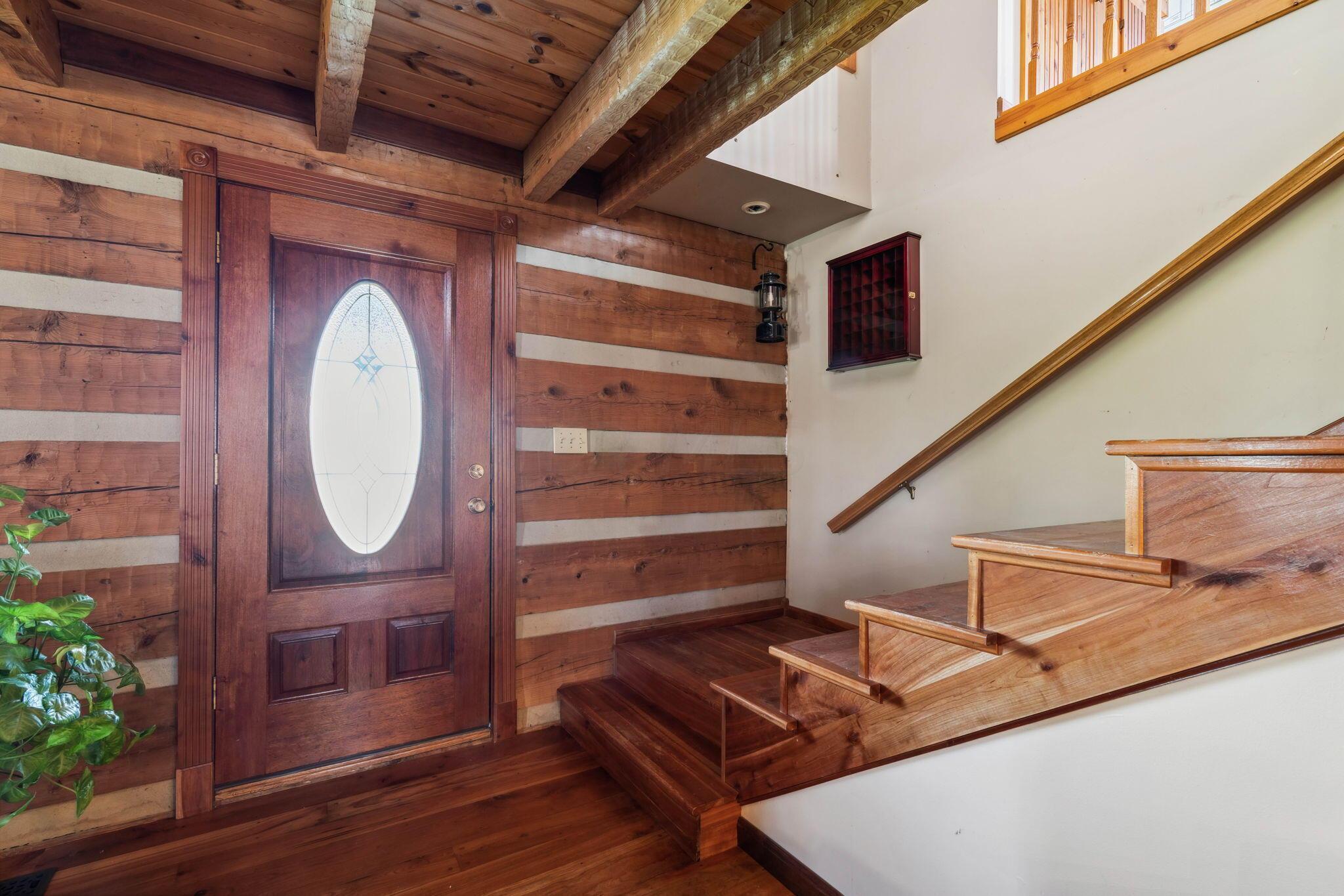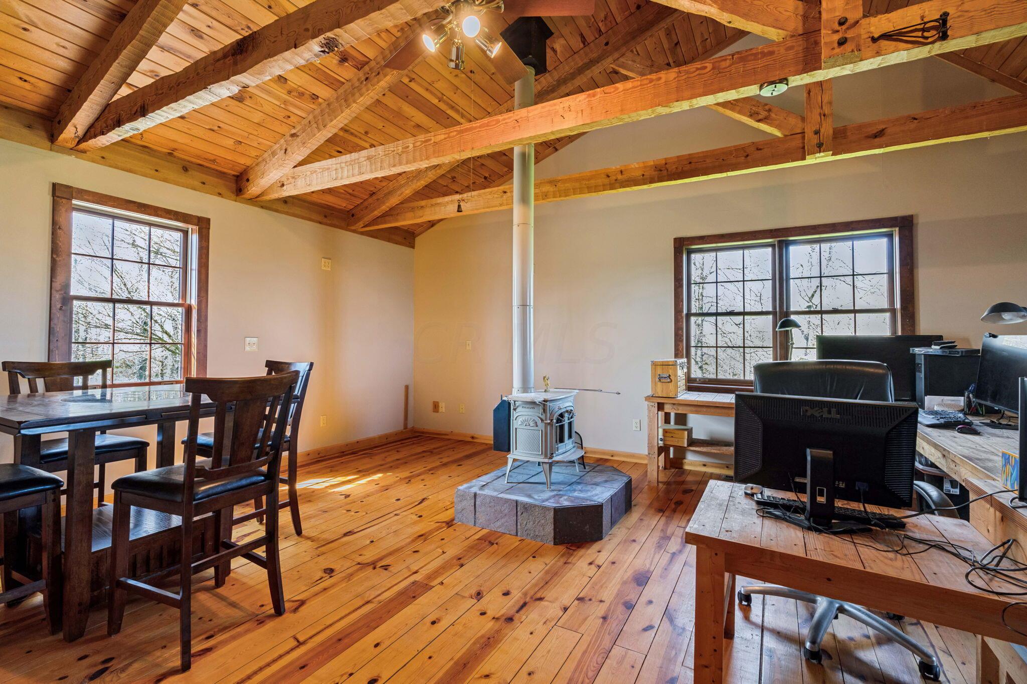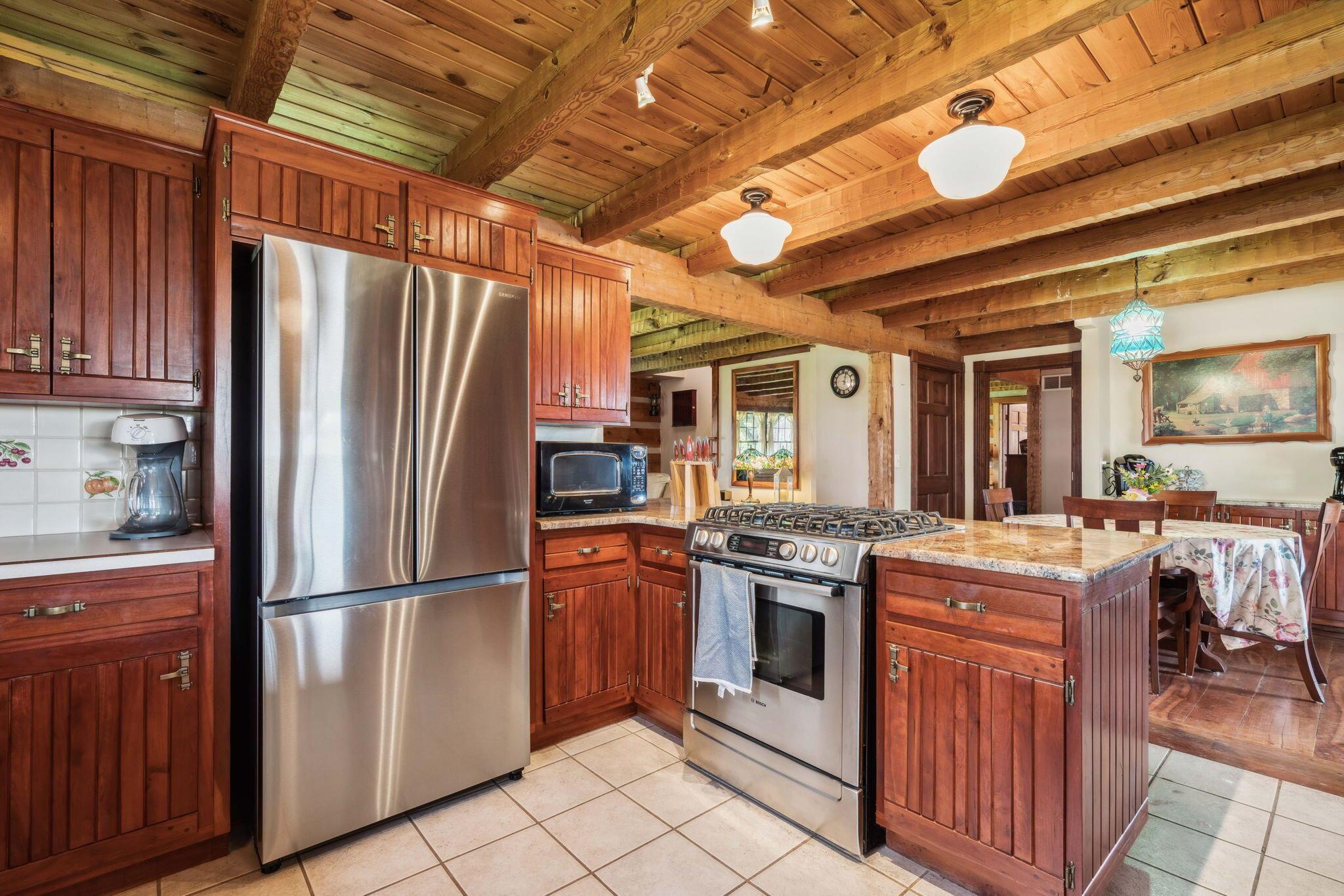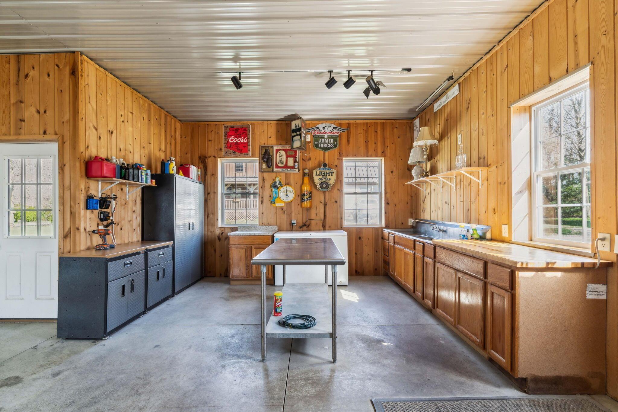 Experience rustic elegance on over 13 acres with this unique log cabin, a true nature lover's dream. The cabin features a 1st floor primary bedroom with en-suite bath and walk-in closet, ensuring comfort. A cozy living area with a wood-burning fireplace sets the tone for relaxing evenings. For guests or family, the property offers a separate guest suite with 2 baths and a full kitchen. Full basement provides ample storage or potential for added living space. Outdoor enthusiasts will love the land and 2 outbuildings; one heated with electric and a kitchen, perfect for entertaining or a workshop, the other for storage or a garage. Water is sourced from a reliable artesian well. Located just a short drive from town, yet offering unparalleled privacy, this property is a one-of-a-kind retreat