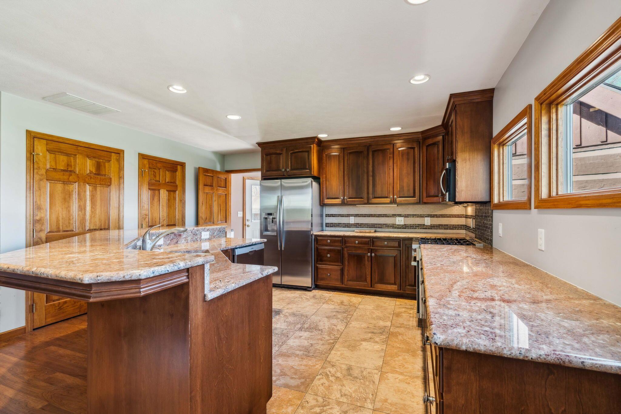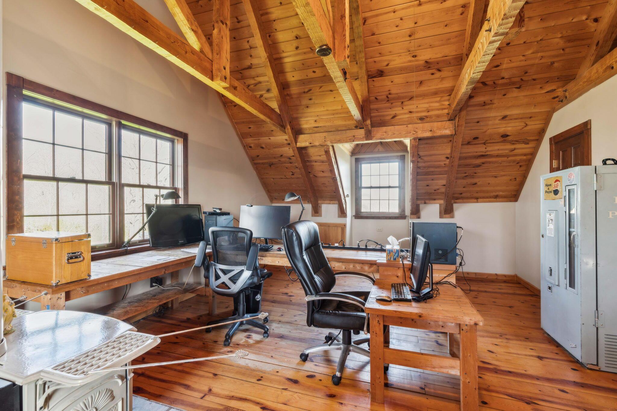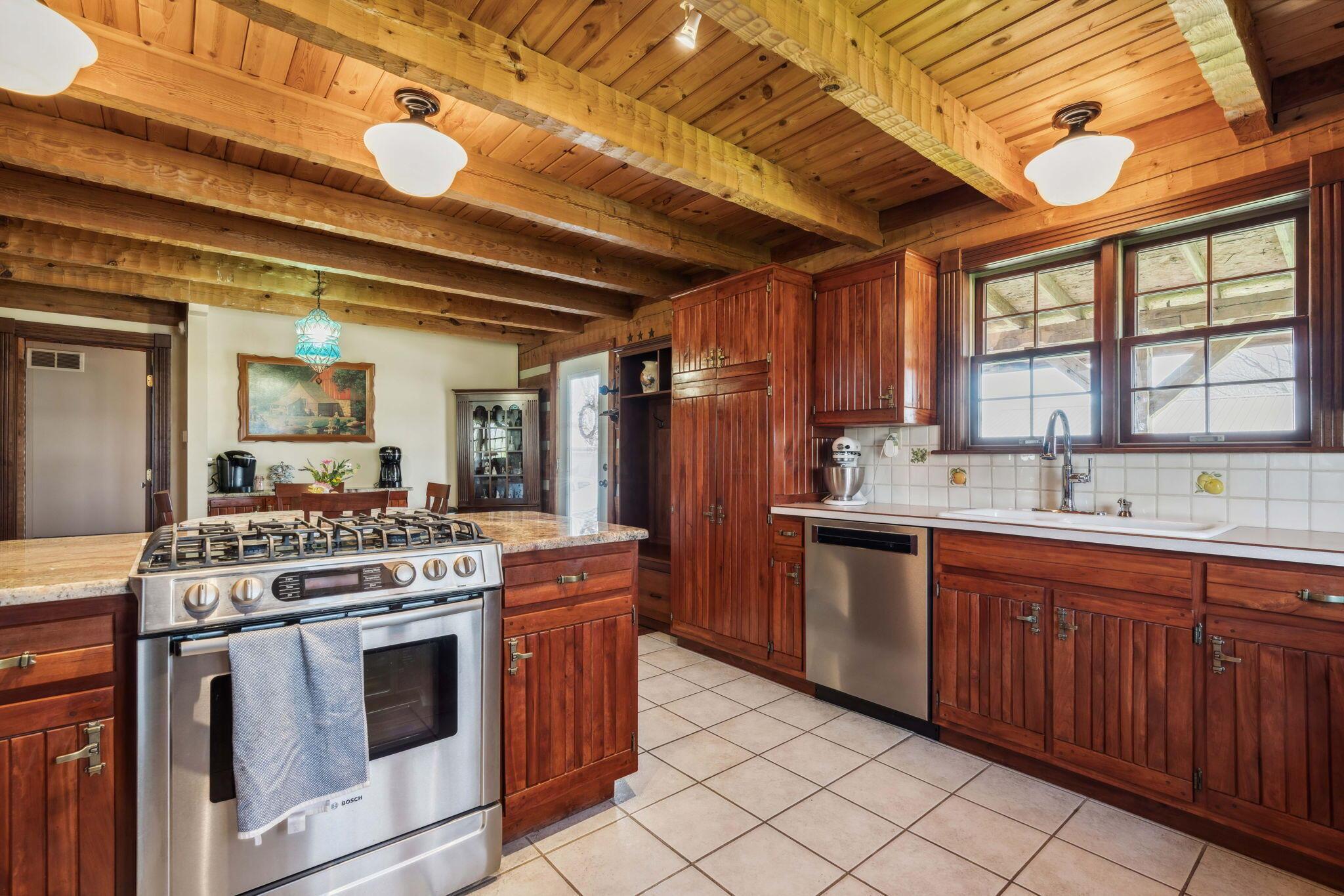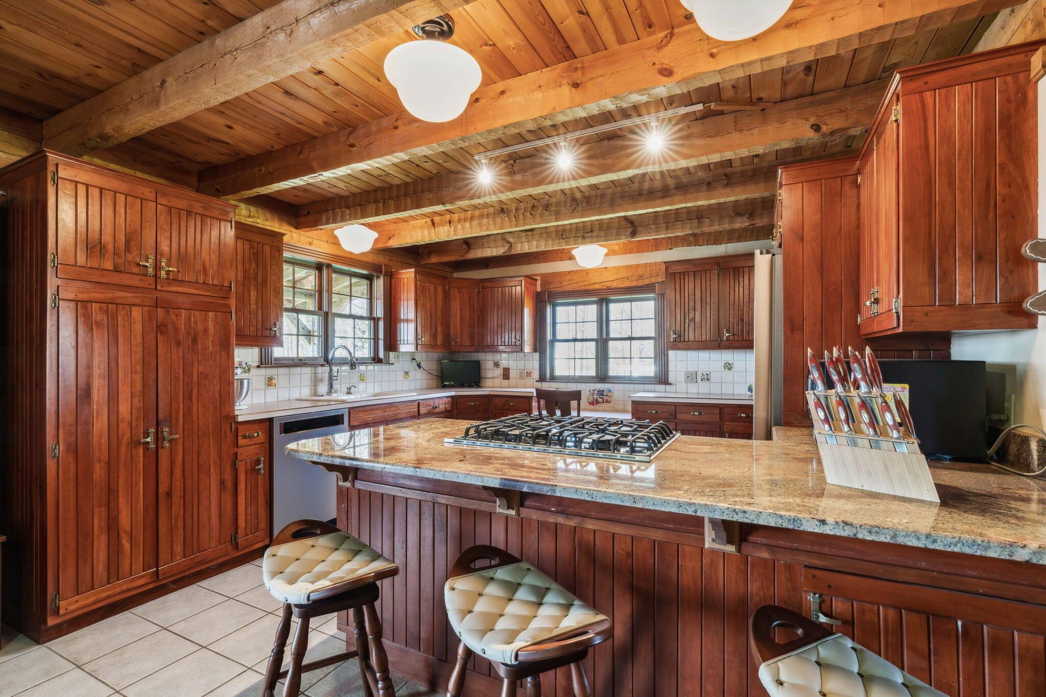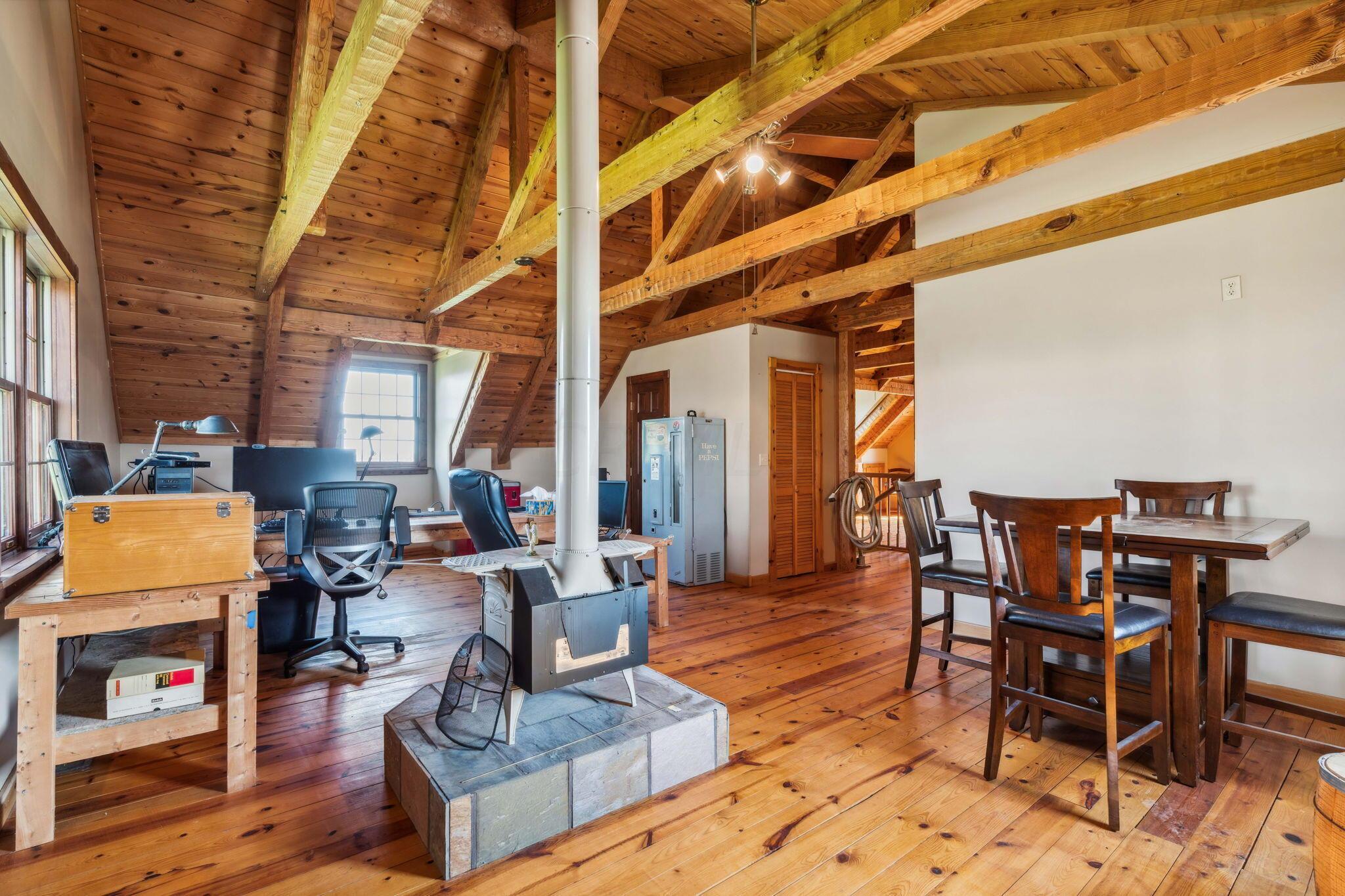 Experience rustic elegance on over 13 acres with this unique log cabin, a true nature lover's dream. The cabin features a 1st floor primary bedroom with en-suite bath and walk-in closet, ensuring comfort. A cozy living area with a wood-burning fireplace sets the tone for relaxing evenings. For guests or family, the property offers a separate guest suite with 2 baths and a full kitchen. Full basement provides ample storage or potential for added living space. Outdoor enthusiasts will love the land and 2 outbuildings; one heated with electric and a kitchen, perfect for entertaining or a workshop, the other for storage or a garage. Water is sourced from a reliable artesian well. Located just a short drive from town, yet offering unparalleled privacy, this property is a one-of-a-kind retreat