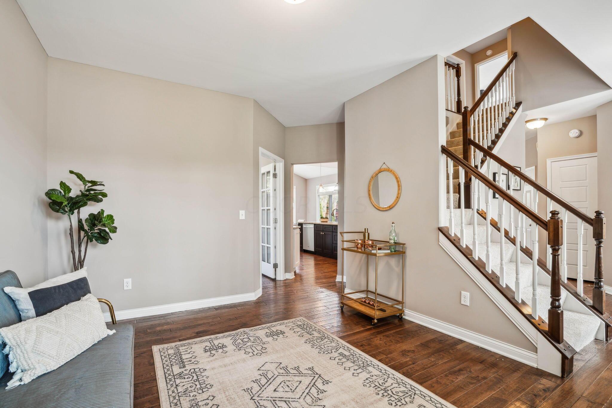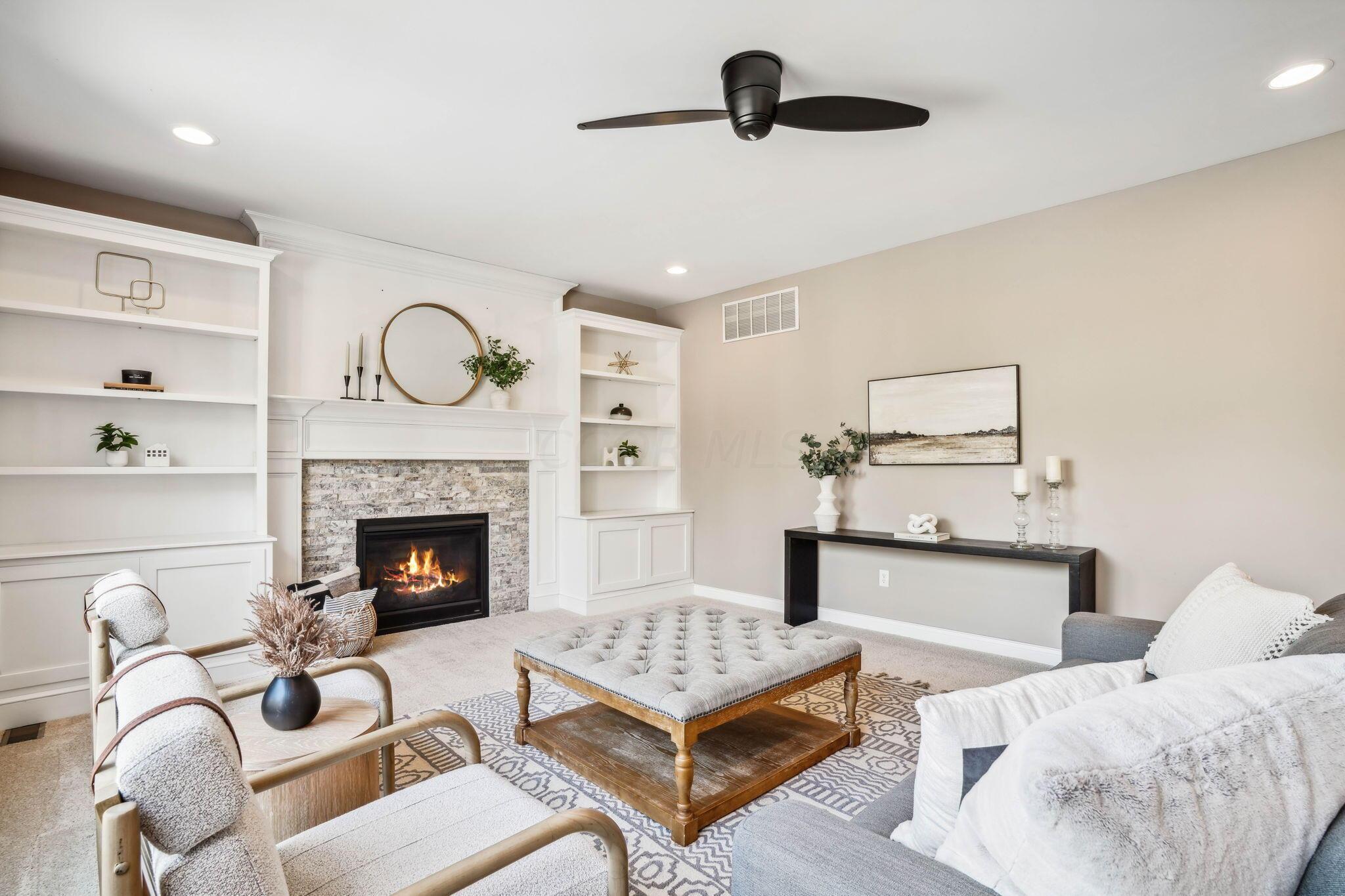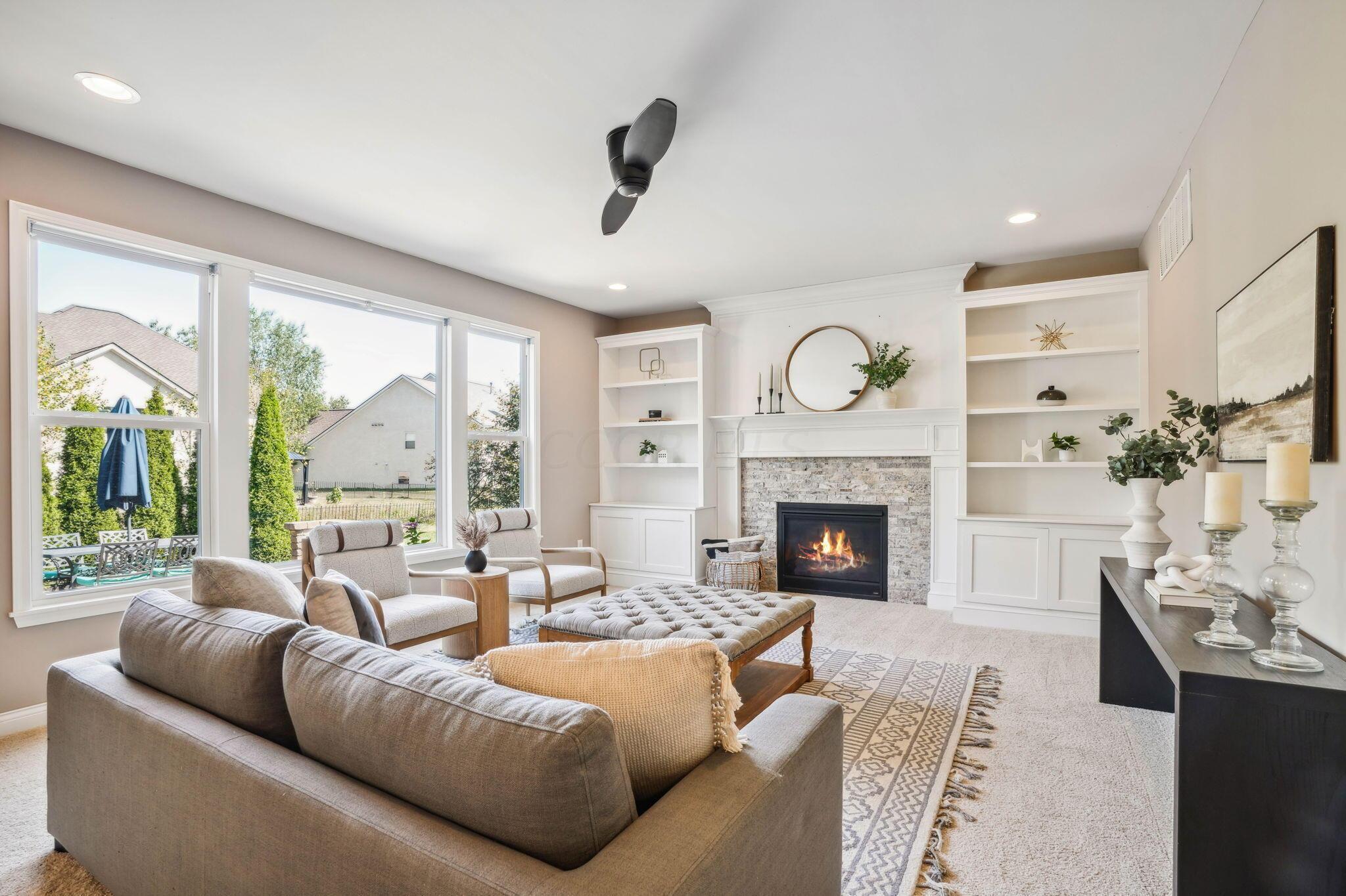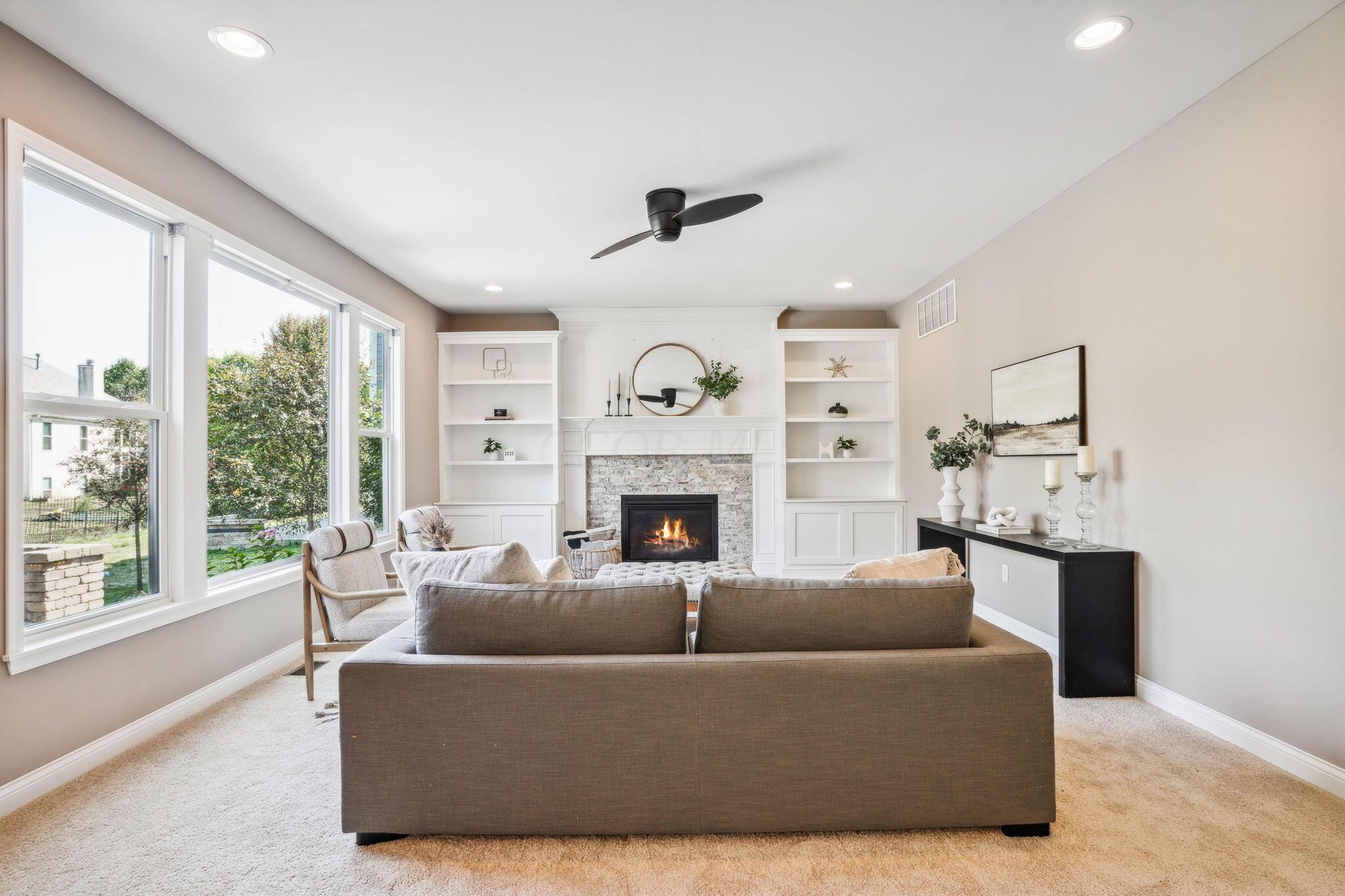 Stunning custom-built home located in the desirable North Orange community. Olentangy Schools. Beautiful functionality throughout this home located on a quiet cul-de-sac. Offering 4 bedrooms & 2.5 baths, this like-new home includes new paint & carpet throughout the interior. Cozy lemonade front porch, paver patio with gas fireplace & private back yard surrounded by beautiful plantings. Island kitchen blends seamlessly with a light-filled dining space and great room with built-ins & a gas-log fireplace. 1st floor office/den, additional living room & half bath. Four bedrooms upstairs with ample closet space, 2 full bathrooms & convenient laundry room. Neighborhood park offers two pools, basketball courts, shelter & playground