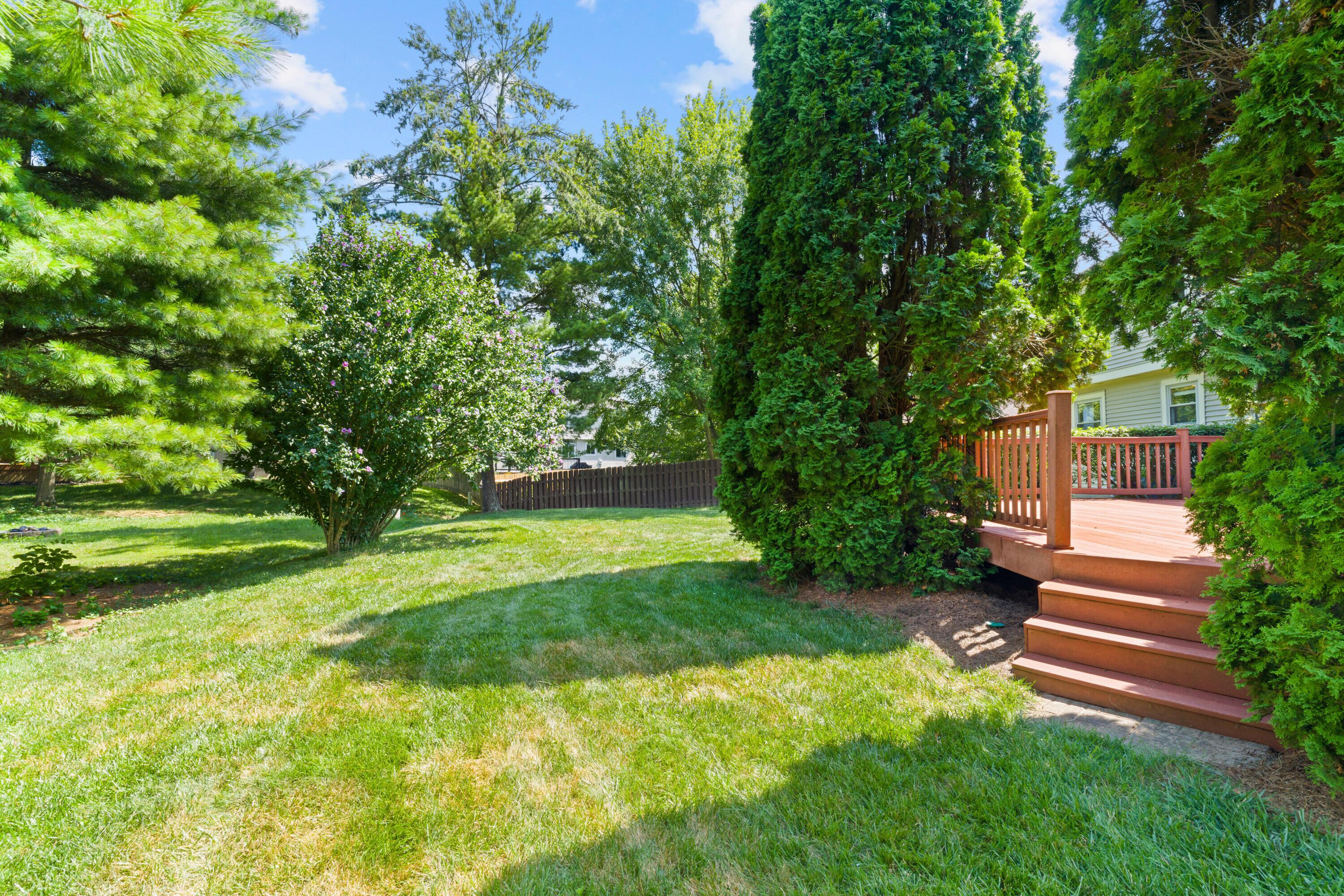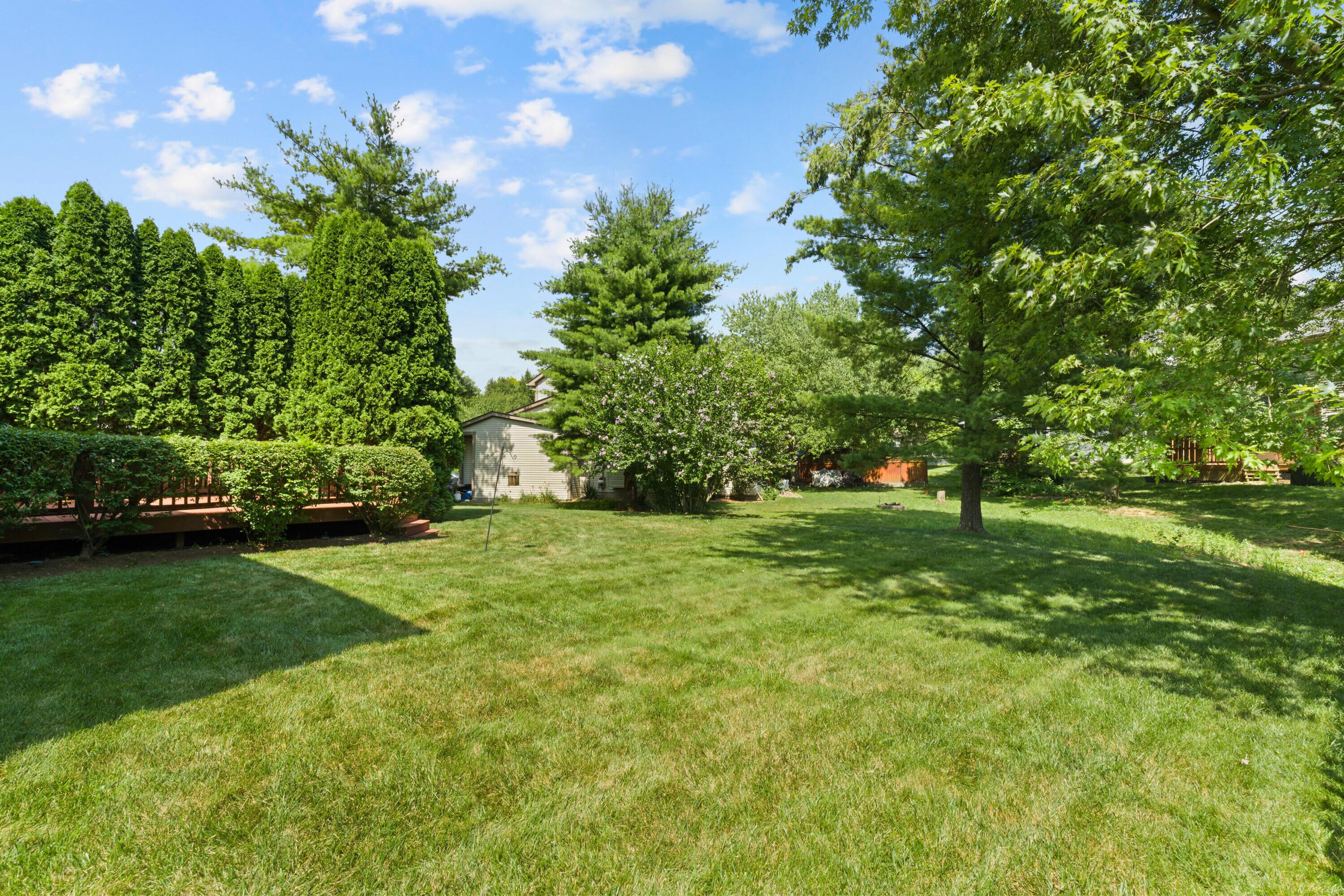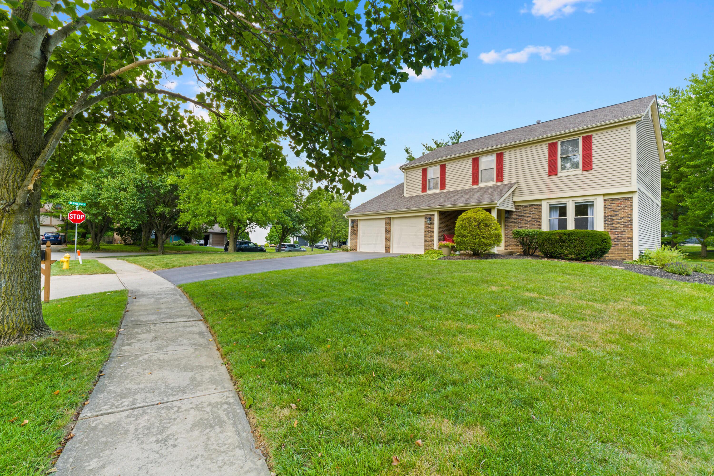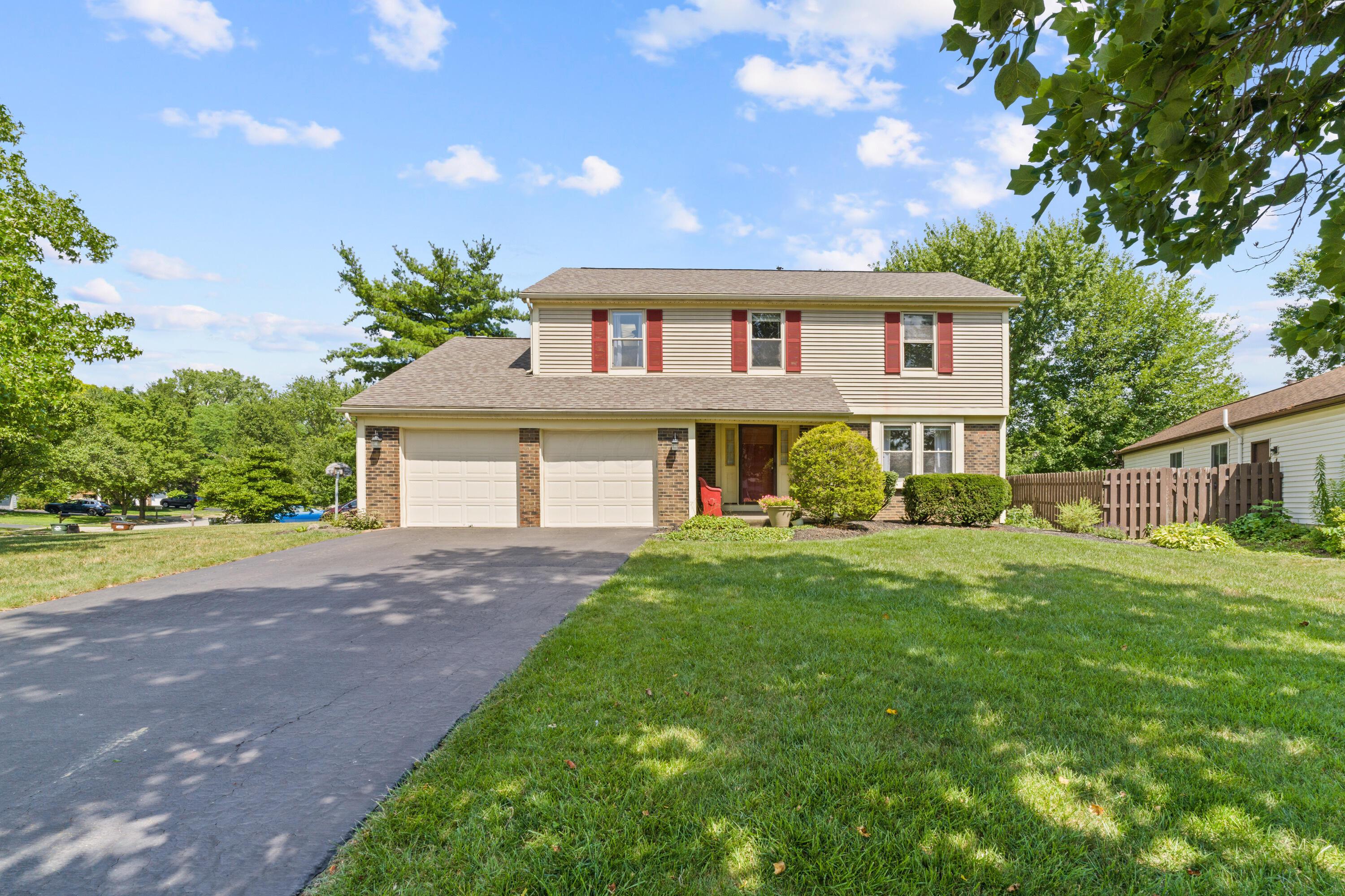 Welcome to this classic, one-owner two-story in the heart of Highmeadows Village, one of Powell's established and well-loved neighborhoods. Set on a spacious corner lot with mature trees and timeless curb appeal, this four-bedroom, two-and-a-half-bath home has been meticulously maintained over the years--and it shows. Inside, you'll find a warm, traditional layout that balances functionality and charm. There's a formal living room, a dining room for hosting, and a cozy family room with a brick hearth and wood-burning fireplace. The family room also opens directly to a private back deck--surrounded by mature landscaping and perfect for relaxing or entertaining outdoors. The kitchen is practical, featuring granite countertops and a dedicated eat-in area that's ideal for quick family meals, casual mornings, or late-night snacks after the kids are in bed. Upstairs, the vaulted-ceiling primary suite includes a walk-in closet and ensuite bath. Three additional bedrooms and a full hall bath round out the second level. Downstairs, a full unfinished basement offers great storage or the potential for future finished space. With a newer roof, siding and windows already checked off the list, and a location just minutes from downtown Powell, shopping, and dining, this hime in Highmeadows Vilage offers long-term value, everyday comfort, and a location that simply makes life easier.