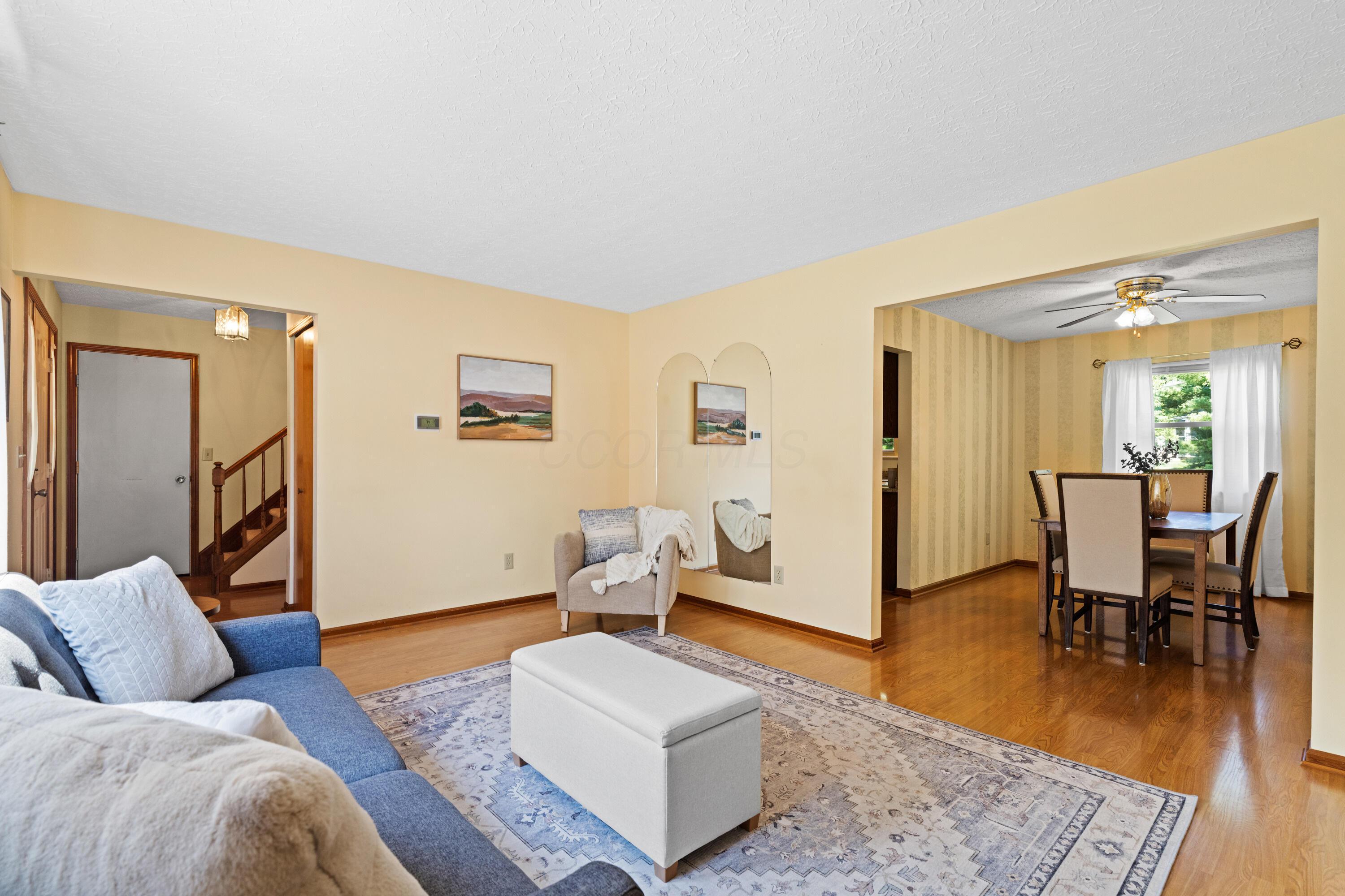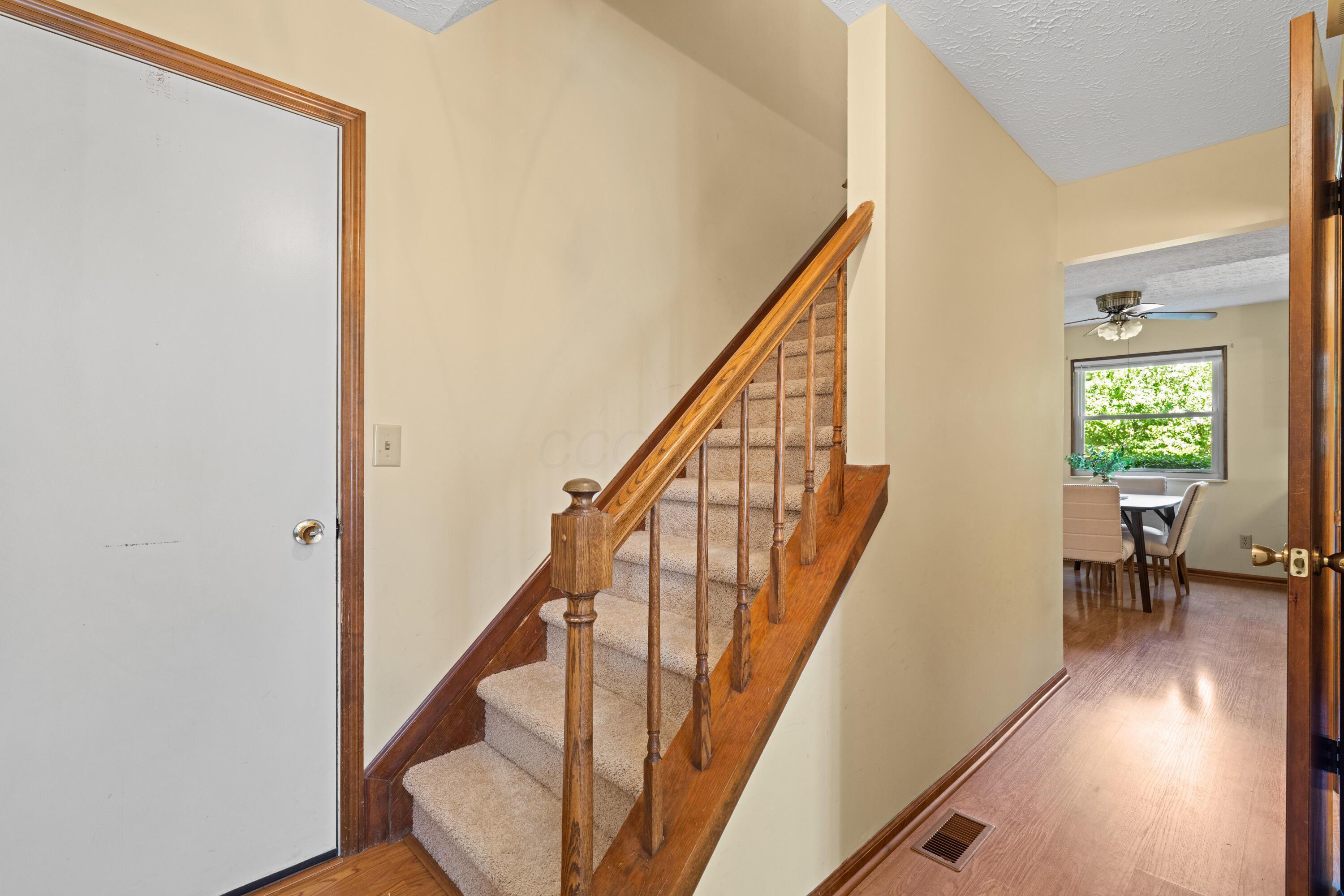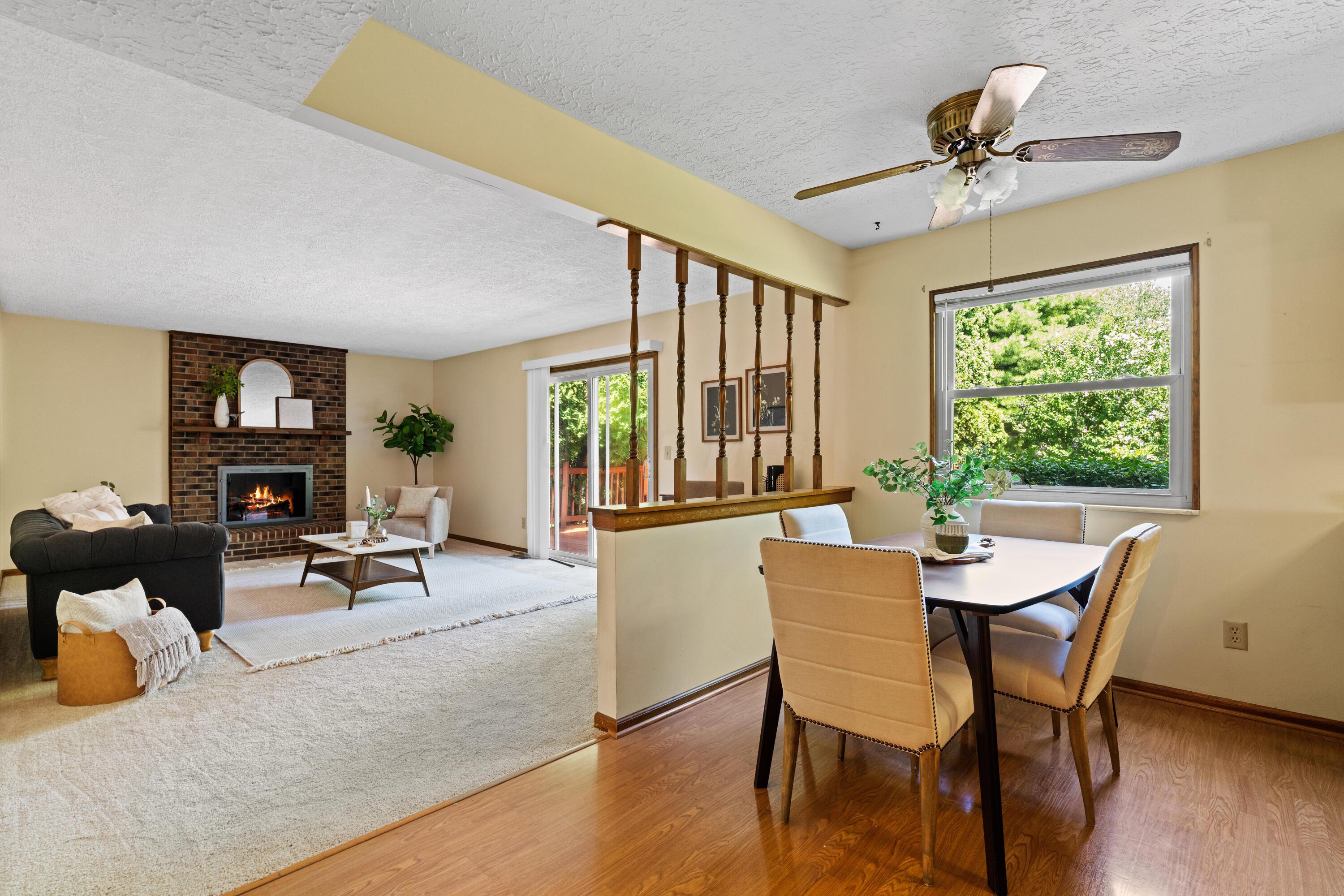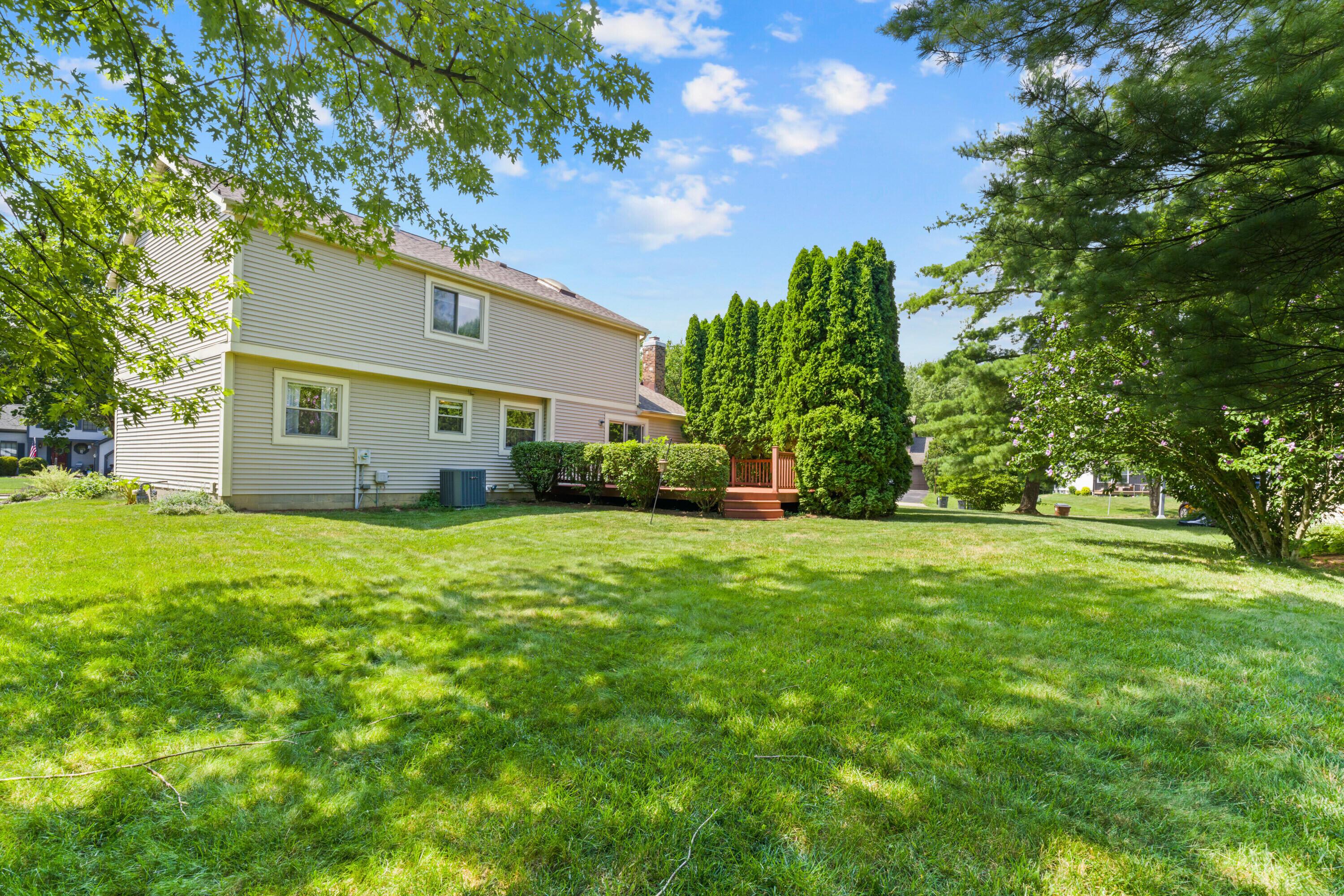 Welcome to this classic, one-owner two-story in the heart of Highmeadows Village, one of Powell's established and well-loved neighborhoods. Set on a spacious corner lot with mature trees and timeless curb appeal, this four-bedroom, two-and-a-half-bath home has been meticulously maintained over the years--and it shows. Inside, you'll find a warm, traditional layout that balances functionality and charm. There's a formal living room, a dining room for hosting, and a cozy family room with a brick hearth and wood-burning fireplace. The family room also opens directly to a private back deck--surrounded by mature landscaping and perfect for relaxing or entertaining outdoors. The kitchen is practical, featuring granite countertops and a dedicated eat-in area that's ideal for quick family meals, casual mornings, or late-night snacks after the kids are in bed. Upstairs, the vaulted-ceiling primary suite includes a walk-in closet and ensuite bath. Three additional bedrooms and a full hall bath round out the second level. Downstairs, a full unfinished basement offers great storage or the potential for future finished space. With a newer roof, siding and windows already checked off the list, and a location just minutes from downtown Powell, shopping, and dining, this hime in Highmeadows Vilage offers long-term value, everyday comfort, and a location that simply makes life easier.