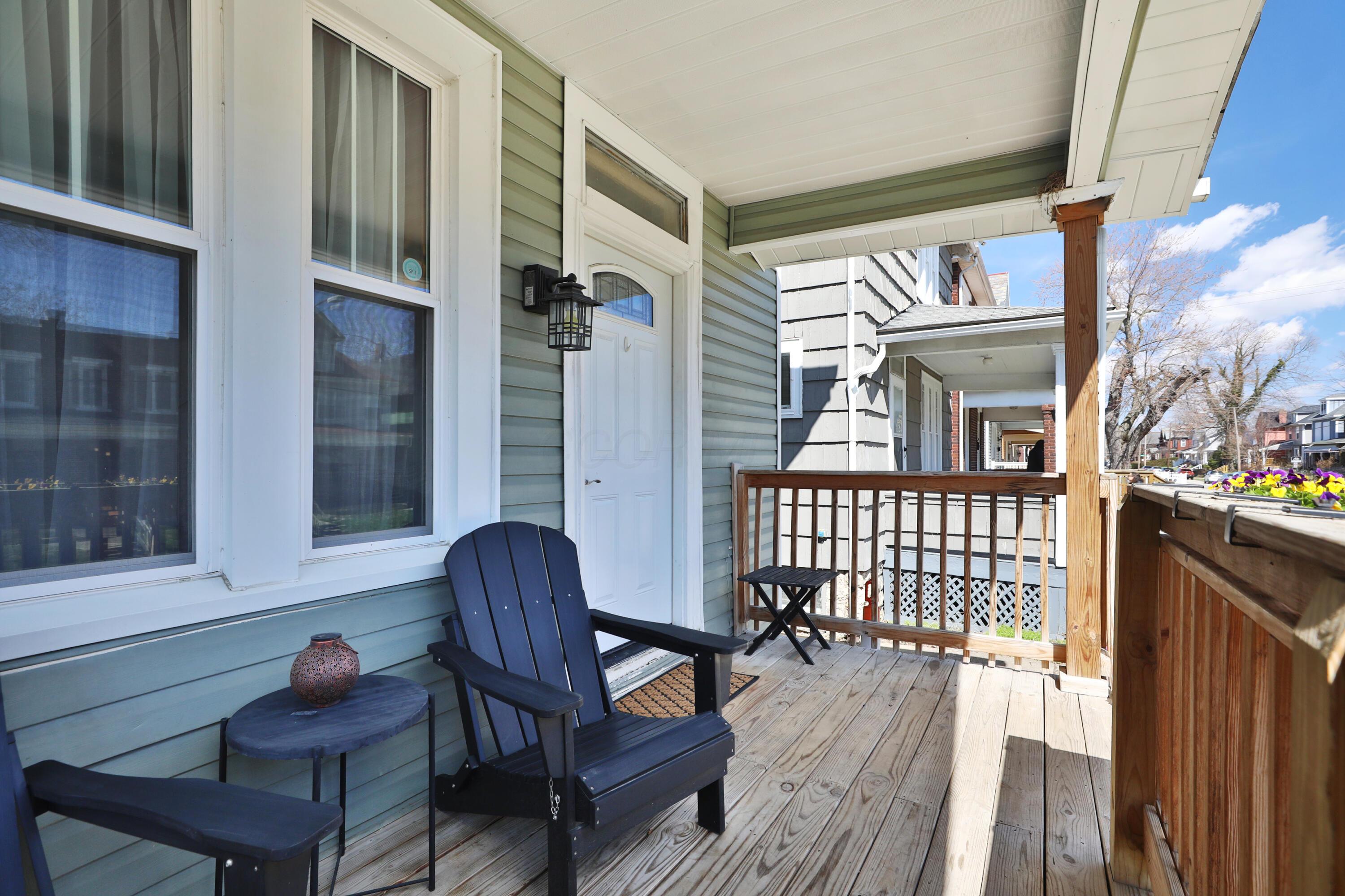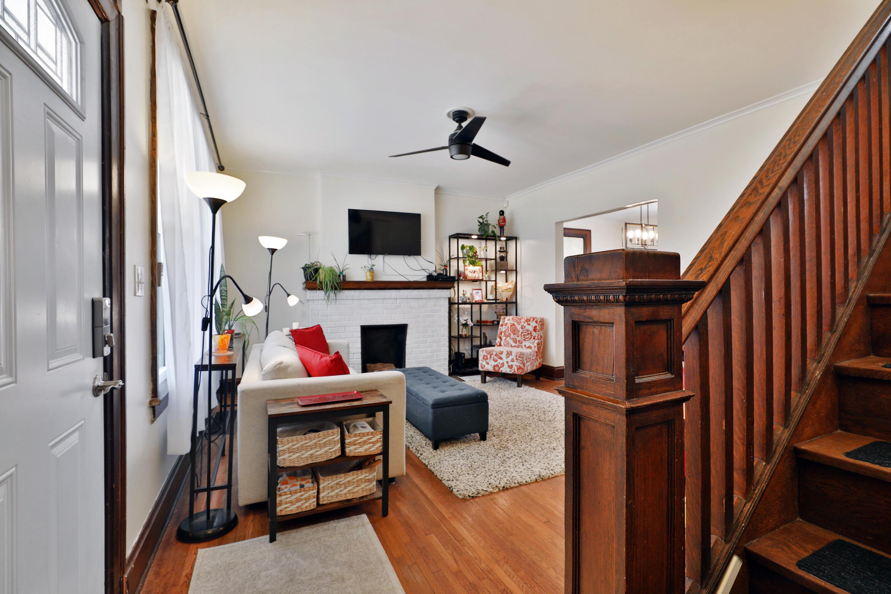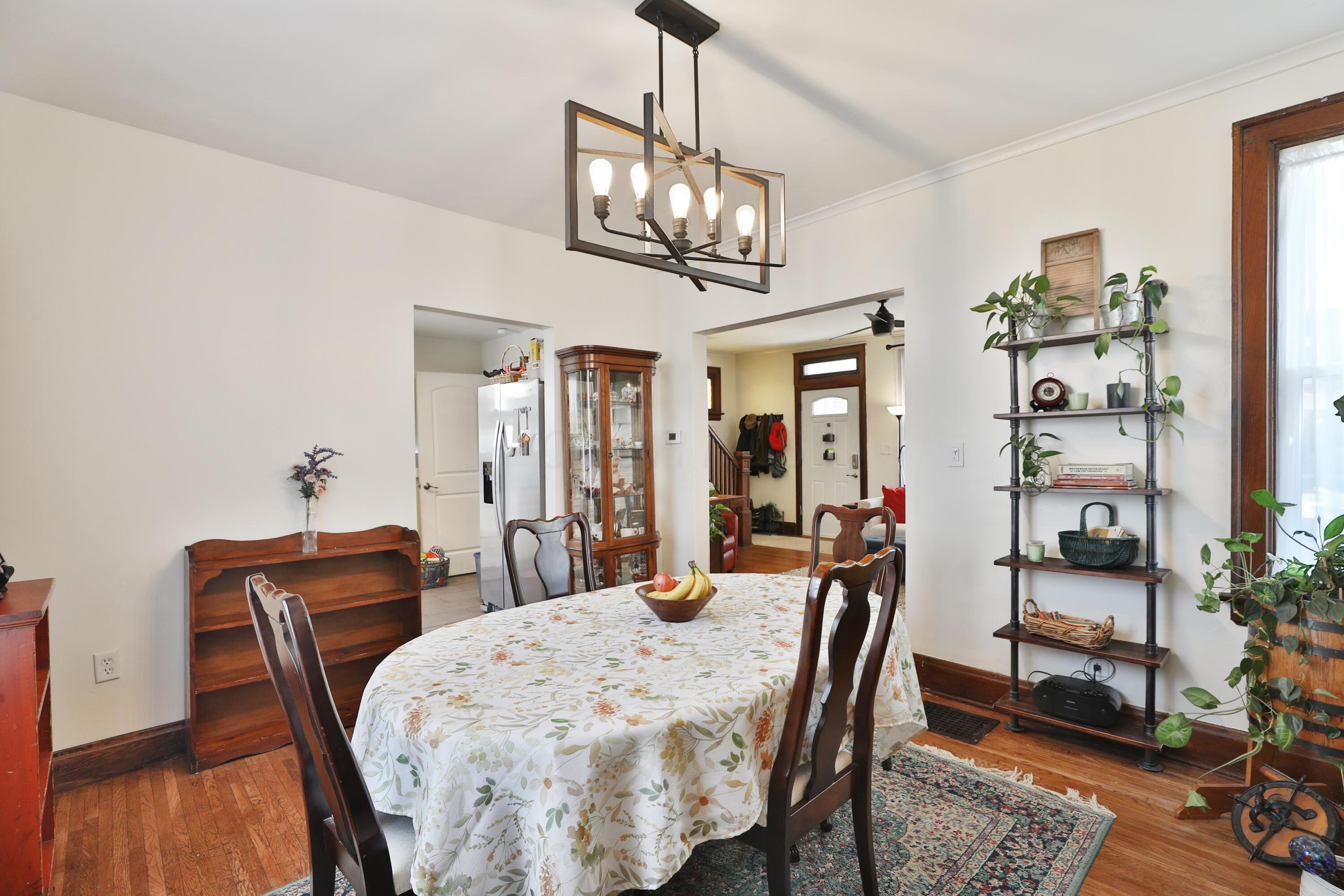 Relax and enjoy the neighborhood from the large front porch of this fantastic 3BR! Light & bright living room with beautiful HW floors, crown molding, and a decorative fireplace. The HW and natural light continue through the dining room! Updated kitchen with granite counters and plenty of cabinet space. Huge pantry can also be converted to a laundry area complete with a washer/dryer hookup. Convenient entry level full bath! Upstairs offers generous sized bedrooms with roomy closets and refreshed full bath. Fully fenced deep backyard with deck and 2 car detached garage! Highlights include: water heater '25, roof '20, windows '20, HVAC '19, new concrete back walk '22, new basement floor poured '22, basement drain and sump pump '20, foam insulation '21.