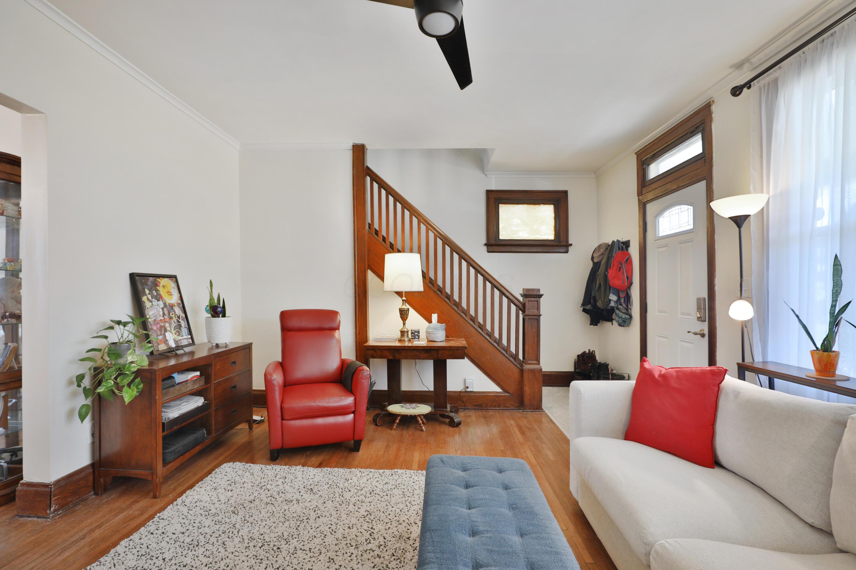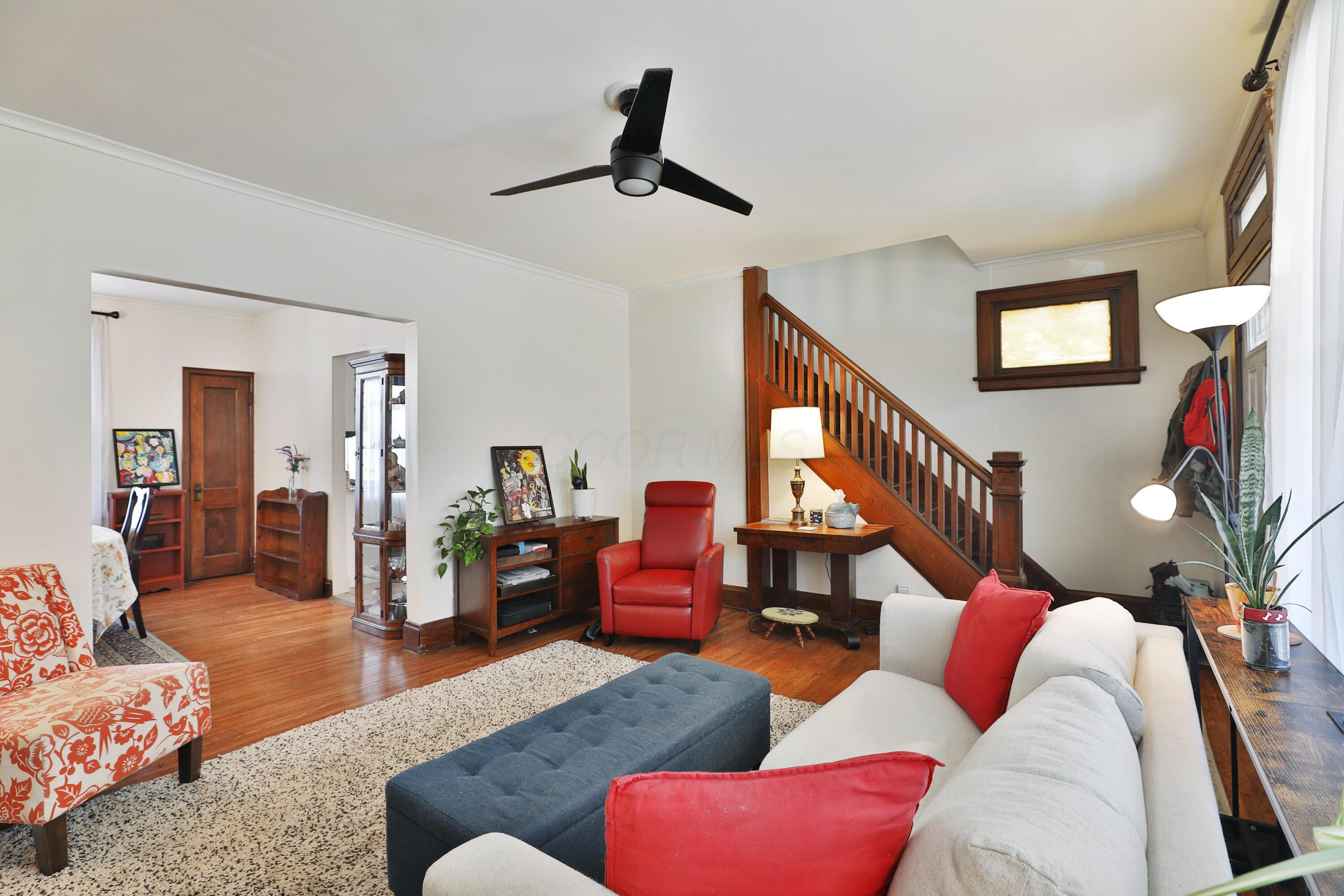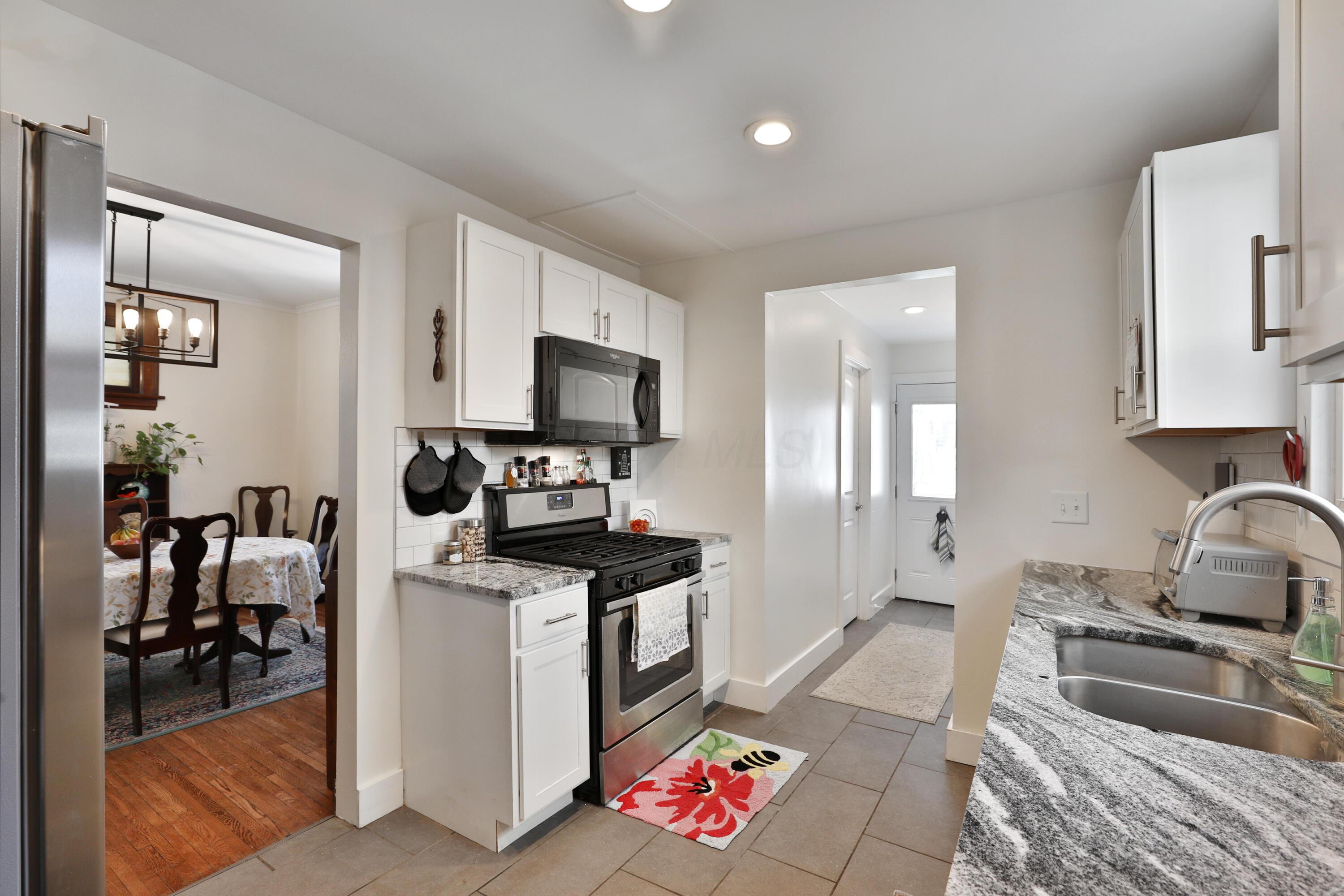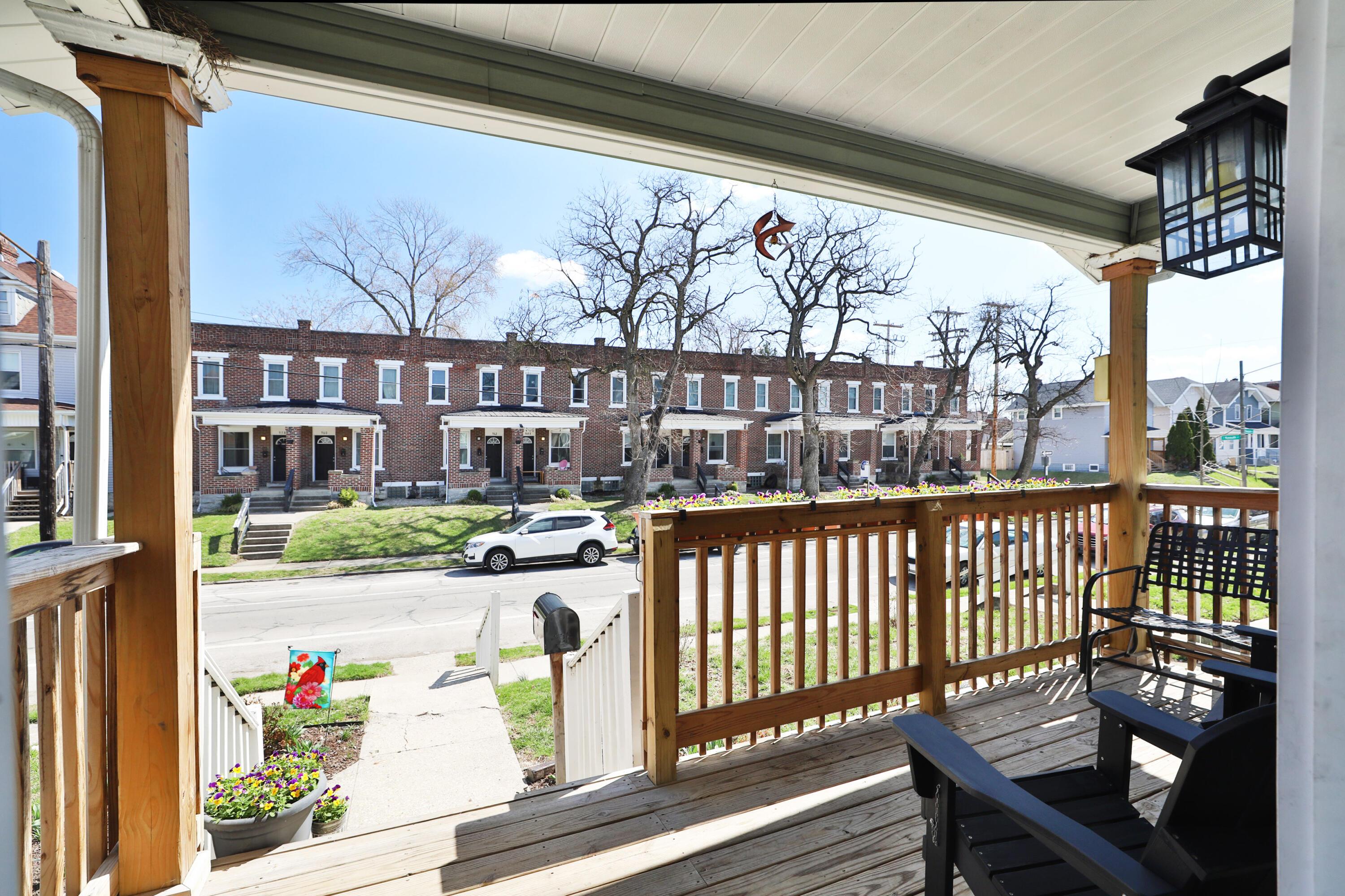 Relax and enjoy the neighborhood from the large front porch of this fantastic 3BR! Light & bright living room with beautiful HW floors, crown molding, and a decorative fireplace. The HW and natural light continue through the dining room! Updated kitchen with granite counters and plenty of cabinet space. Huge pantry can also be converted to a laundry area complete with a washer/dryer hookup. Convenient entry level full bath! Upstairs offers generous sized bedrooms with roomy closets and refreshed full bath. Fully fenced deep backyard with deck and 2 car detached garage! Highlights include: water heater '25, roof '20, windows '20, HVAC '19, new concrete back walk '22, new basement floor poured '22, basement drain and sump pump '20, foam insulation '21.