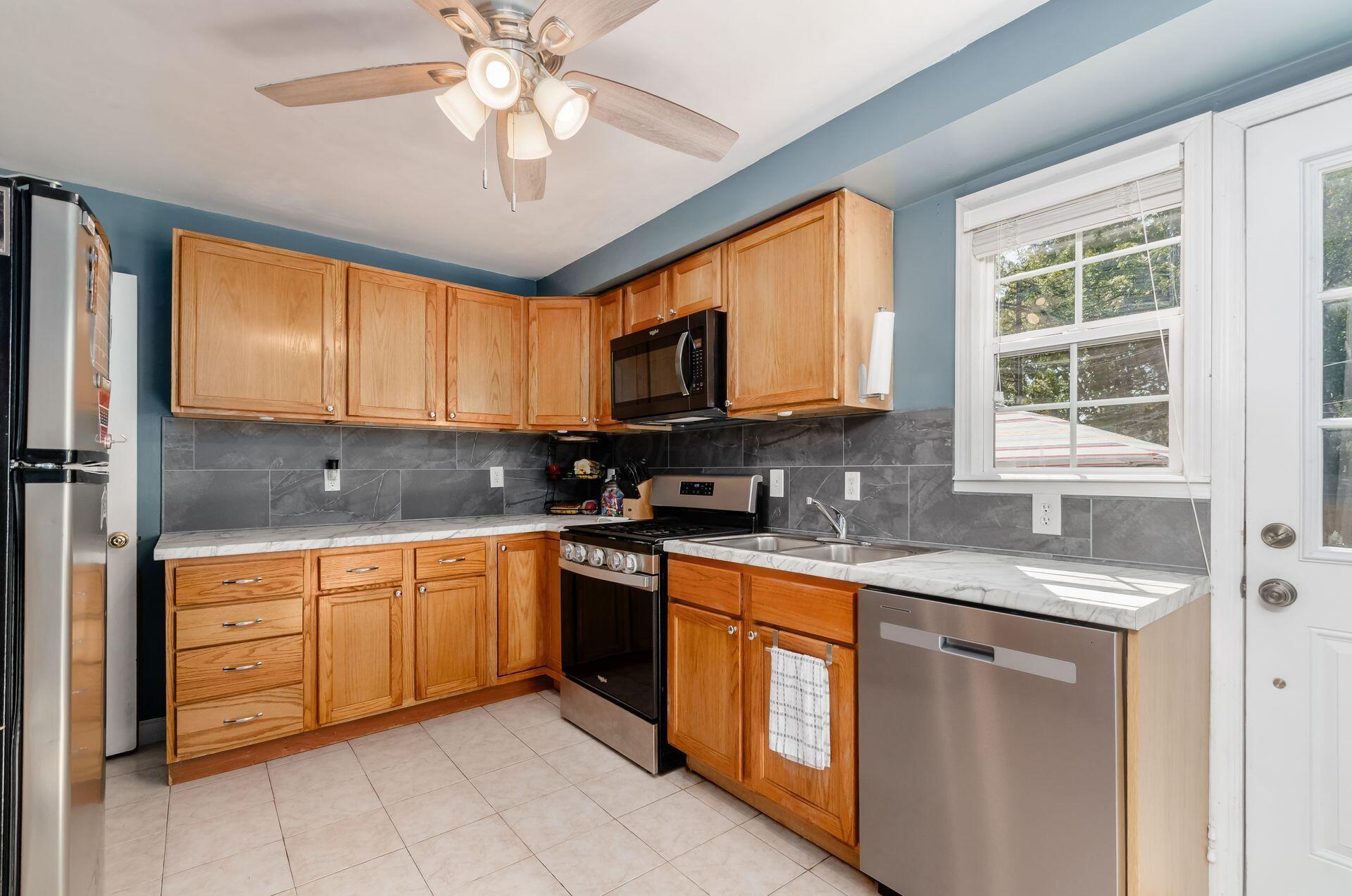 Out back, a spacious fenced-in yard provides endless possibilities. Host friends for game-day gatherings, plant the garden you've always wanted, or simply relax in your own private retreat.